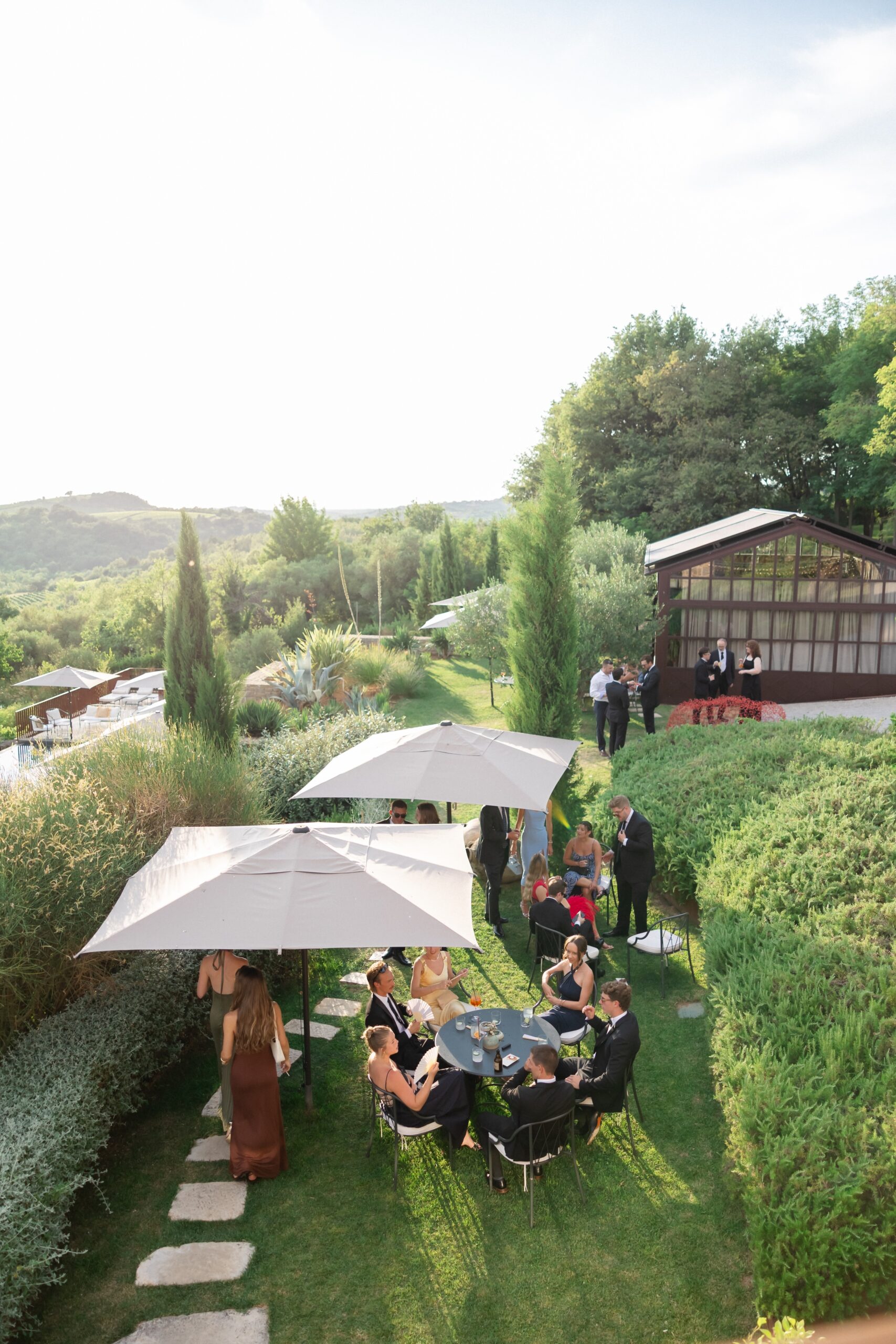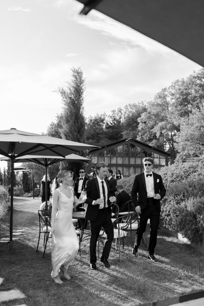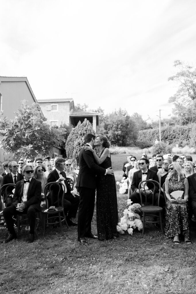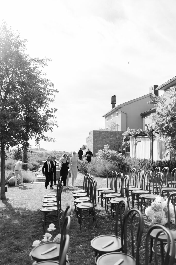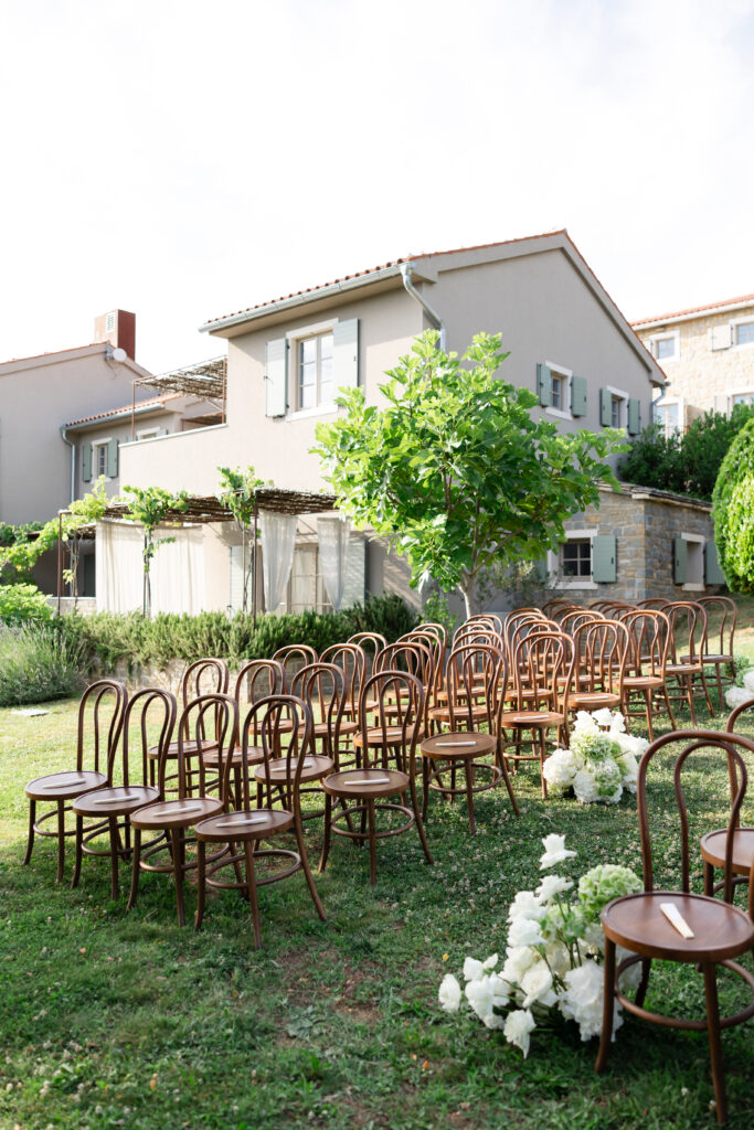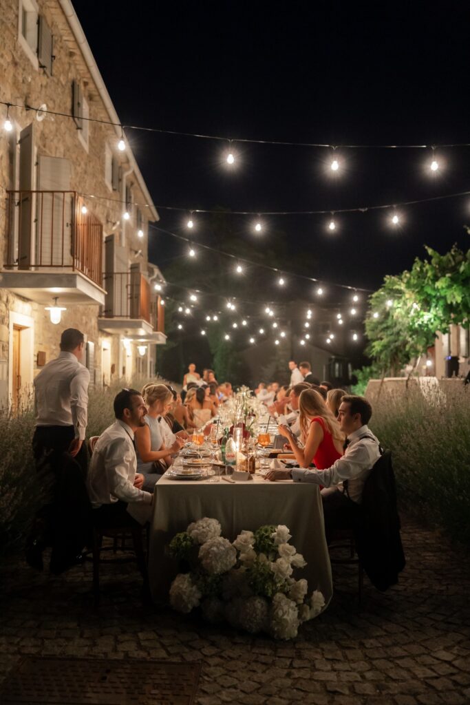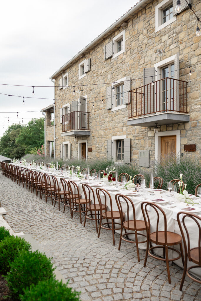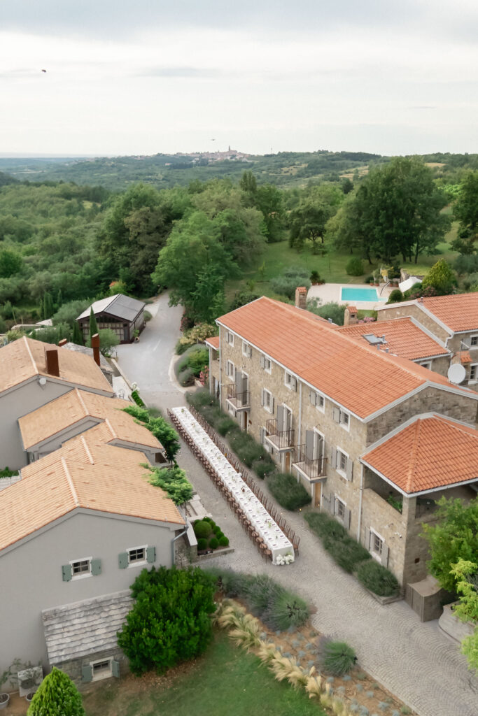 Following the ceremony, guests were welcomed to the pool area for cocktails under the Istrian sun. The atmosphere was relaxed yet elevated — a perfect blend of countryside charm and modern refinement.