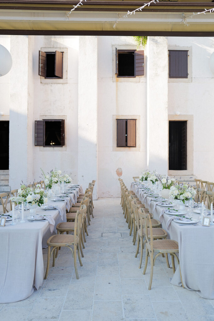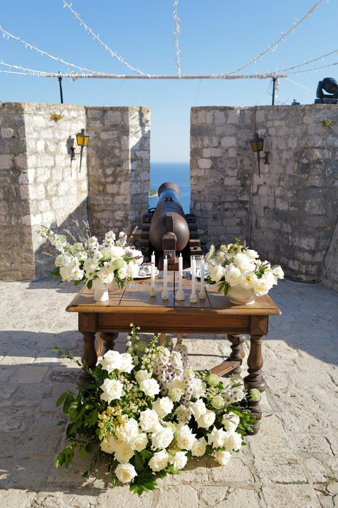 The historic Hvar Fortress offered the perfect setting. Overlooking the sparkling Adriatic Sea and the charming old town of Hvar, it was a venue that matched their vision seamlessly. Furthermore, to enhance the already stunning location, we crafted a decoration plan focused on simplicity and sophistication, using elegant elements to highlight the fortress's timeless appeal.