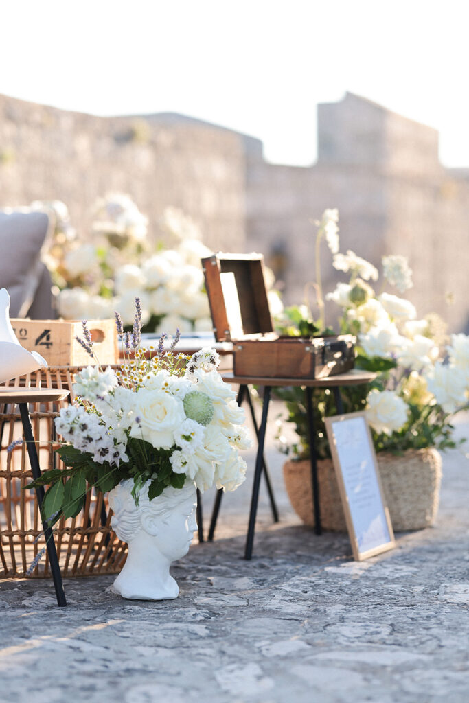The wedding day was nothing short of magical. Bianca and Justin exchanged vows under the warm glow of the Mediterranean sun, surrounded by family, friends, and the captivating views of the fortress.