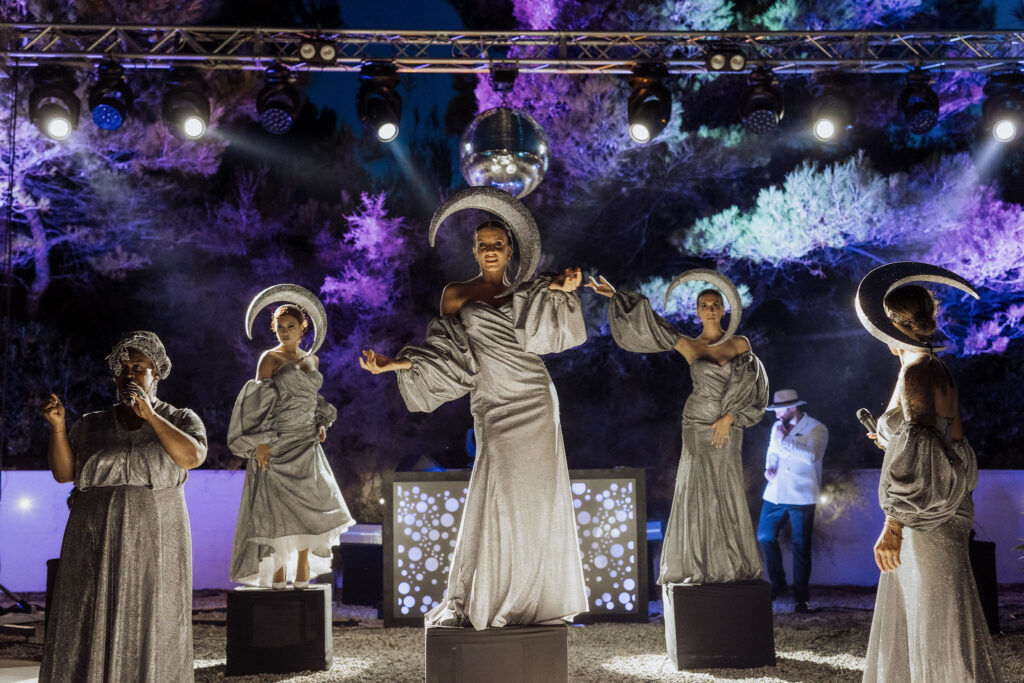 As the night progressed, the dance floor came alive under a canopy of twinkling lights. A playlist inspired by the cosmos filled the air, blending otherworldly beats with grounding rhythms. Guests laughed, danced, and celebrated, immersed in the magic of the night.