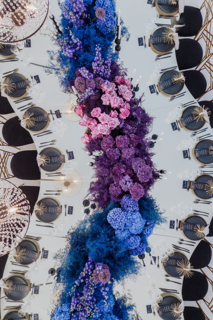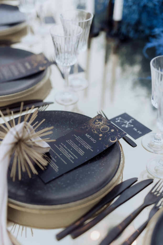 Upon arrival, guests were greeted by a breathtaking setup inspired by the Milky Way. The table arrangement swirled with celestial elegance, adorned with galaxy-themed plates, star-shaped glassware, and shimmering silver cutlery. The ethereal design immediately set the tone for an evening unlike any other.