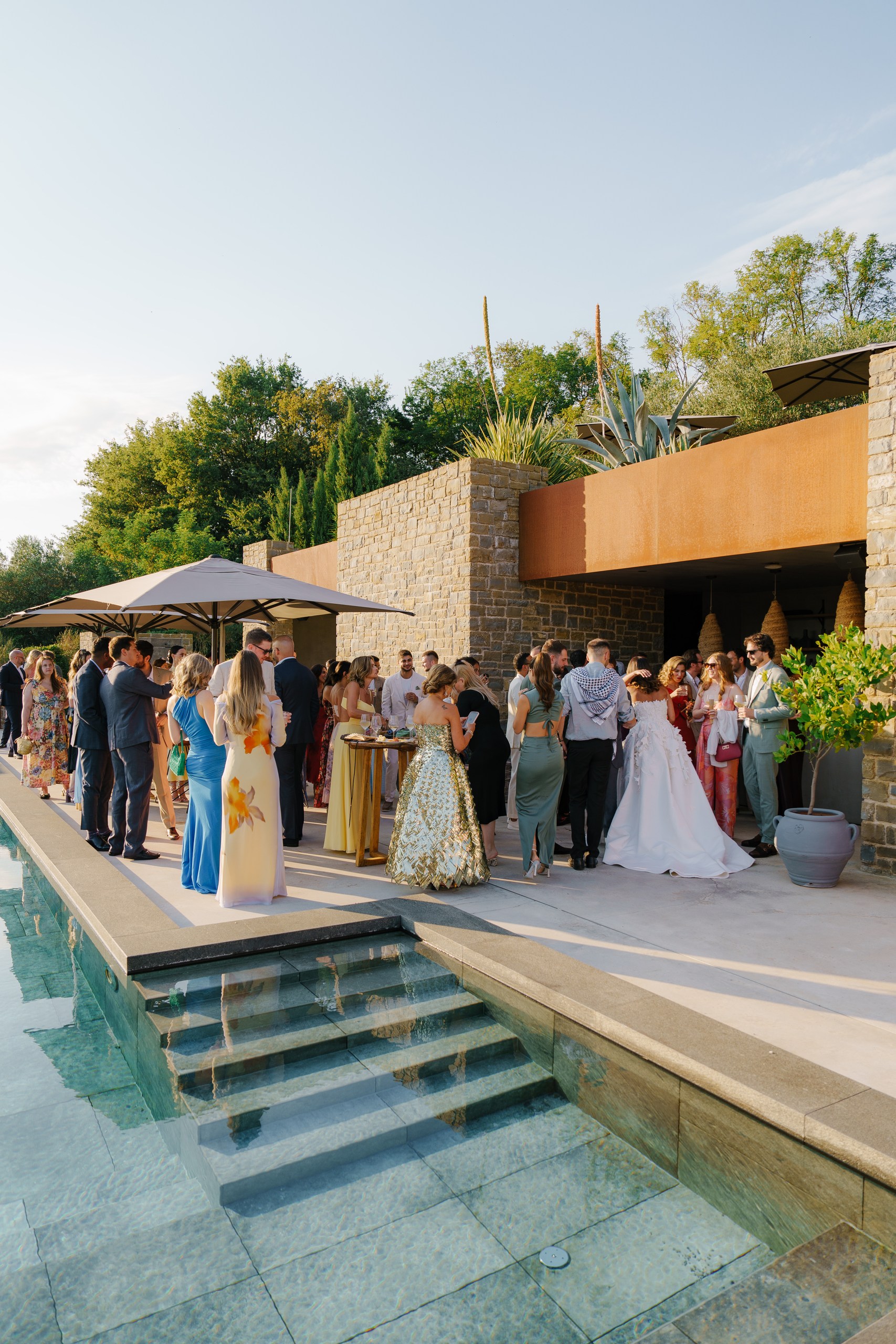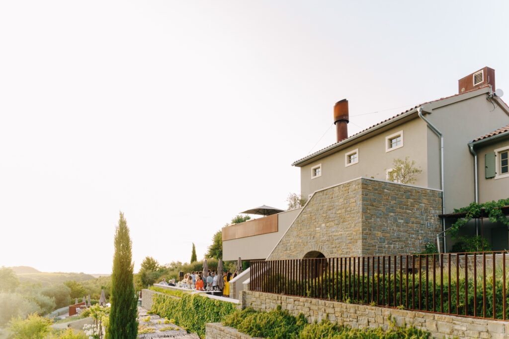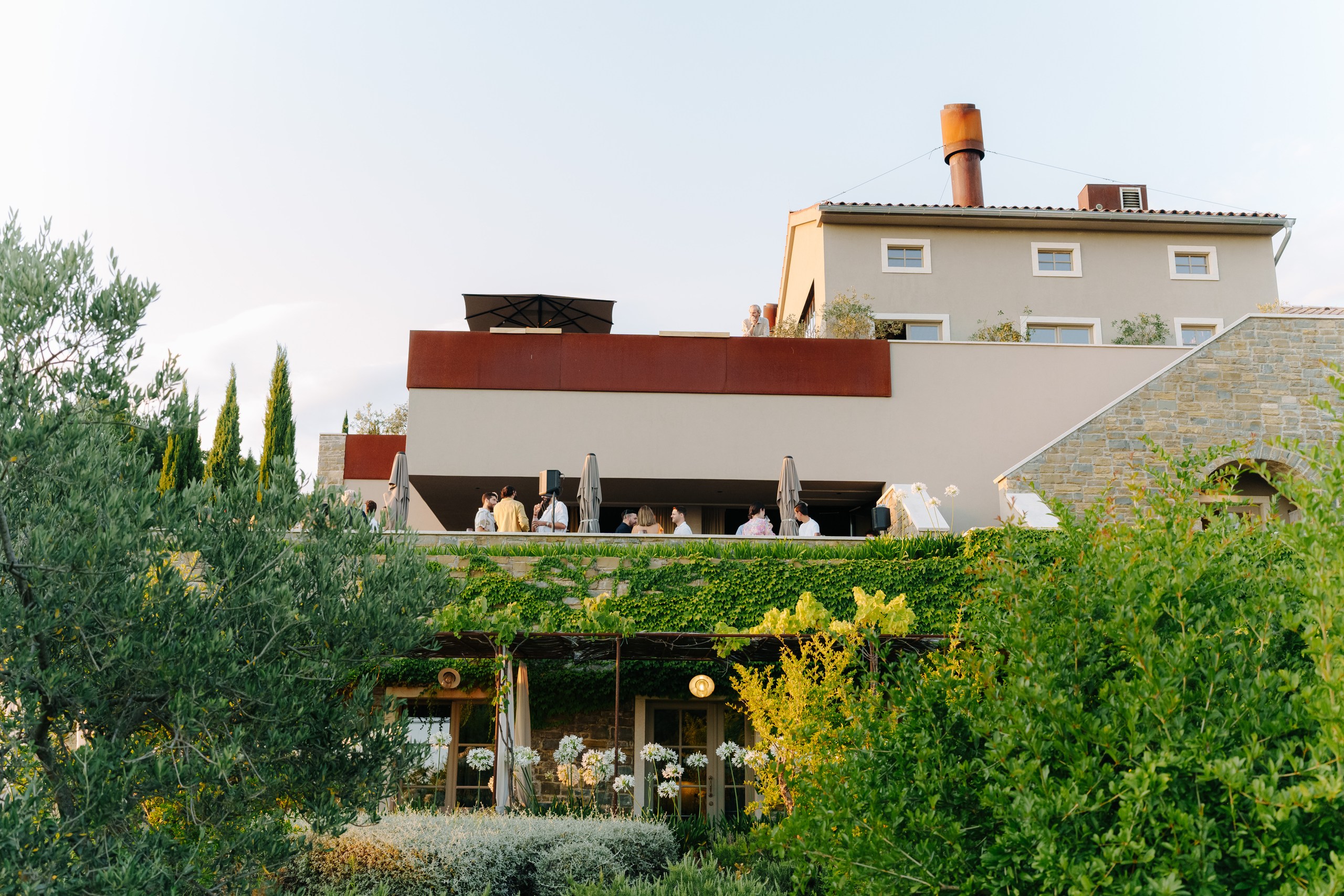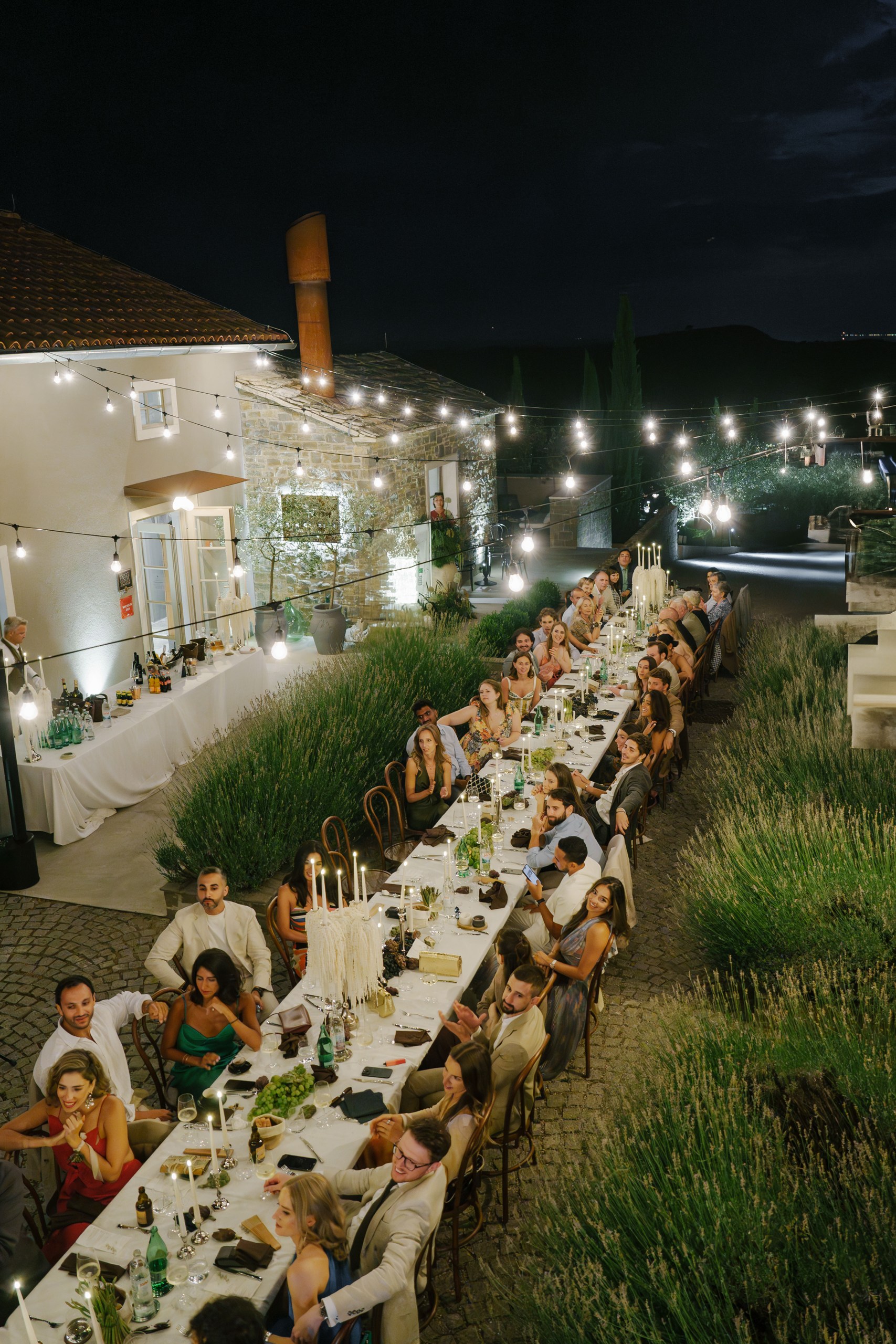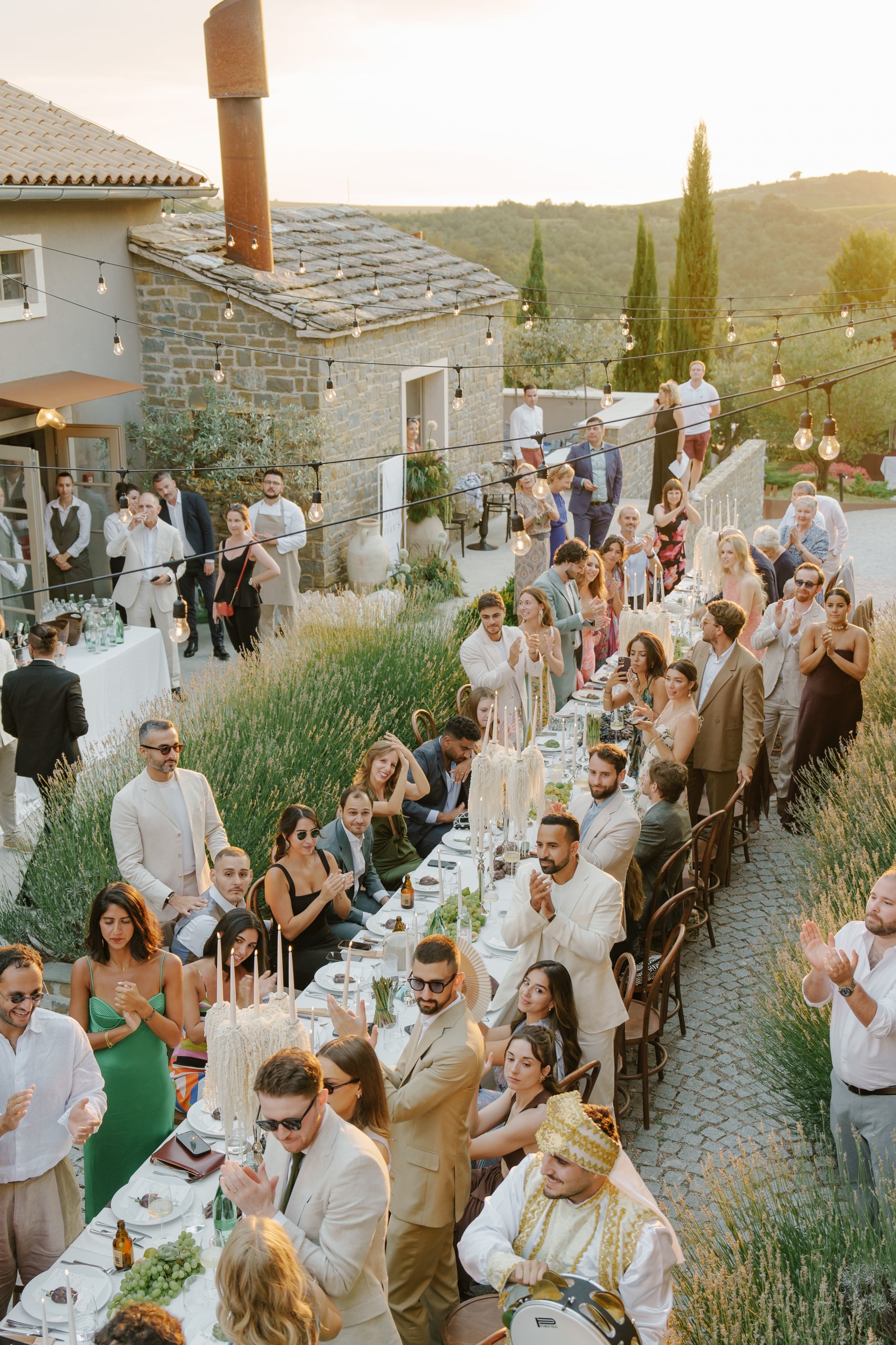 Welcome Night with Croatian Charm The festivities began with an intimate welcome event surrounded by lavender fields and rustic stone walls at San Canzian Istria . Guests gathered to enjoy Istrian delicacies and local wines as a traditional Klapa group performed under the summer sky — a heartfelt prelude to the days ahead, full of connection and joy.