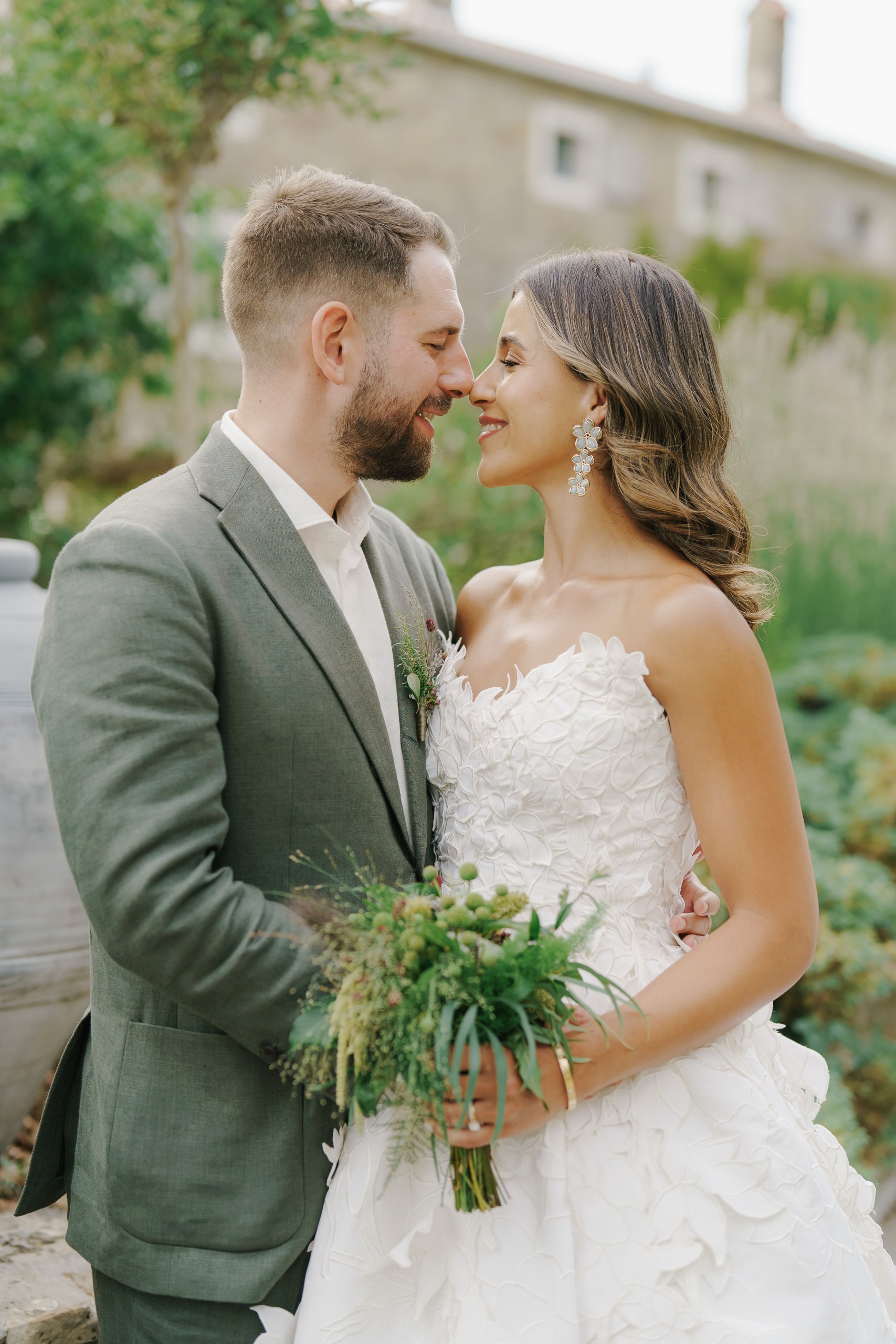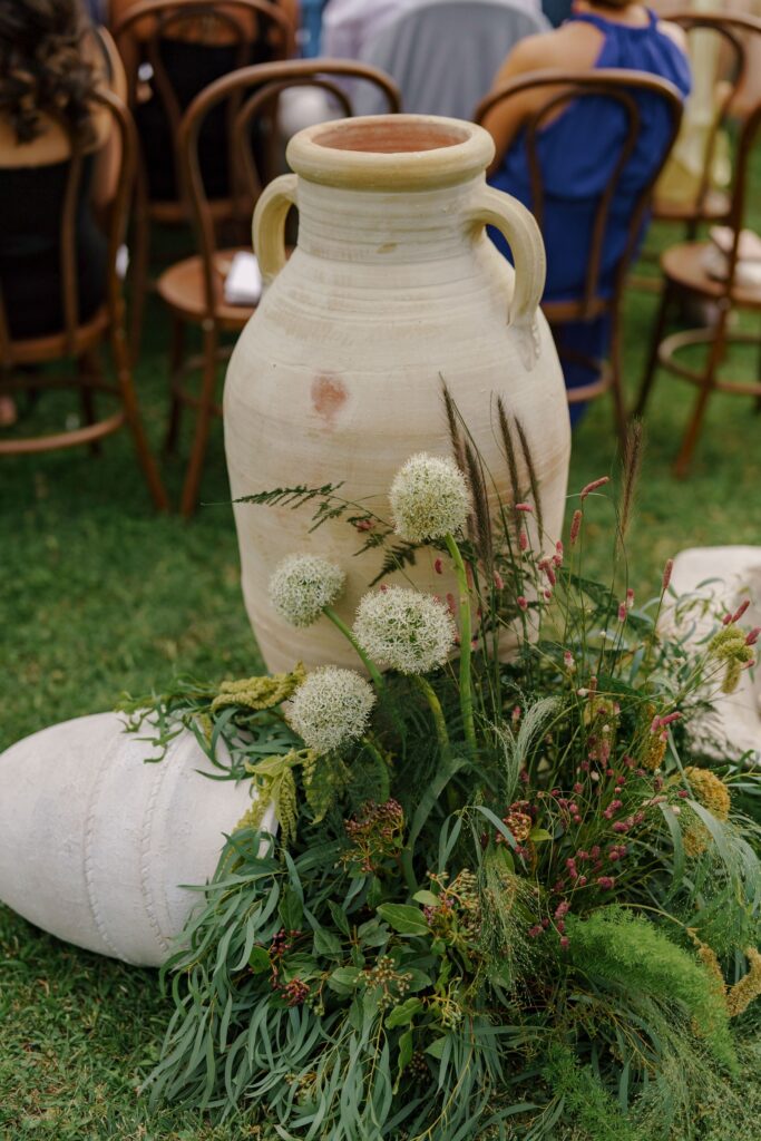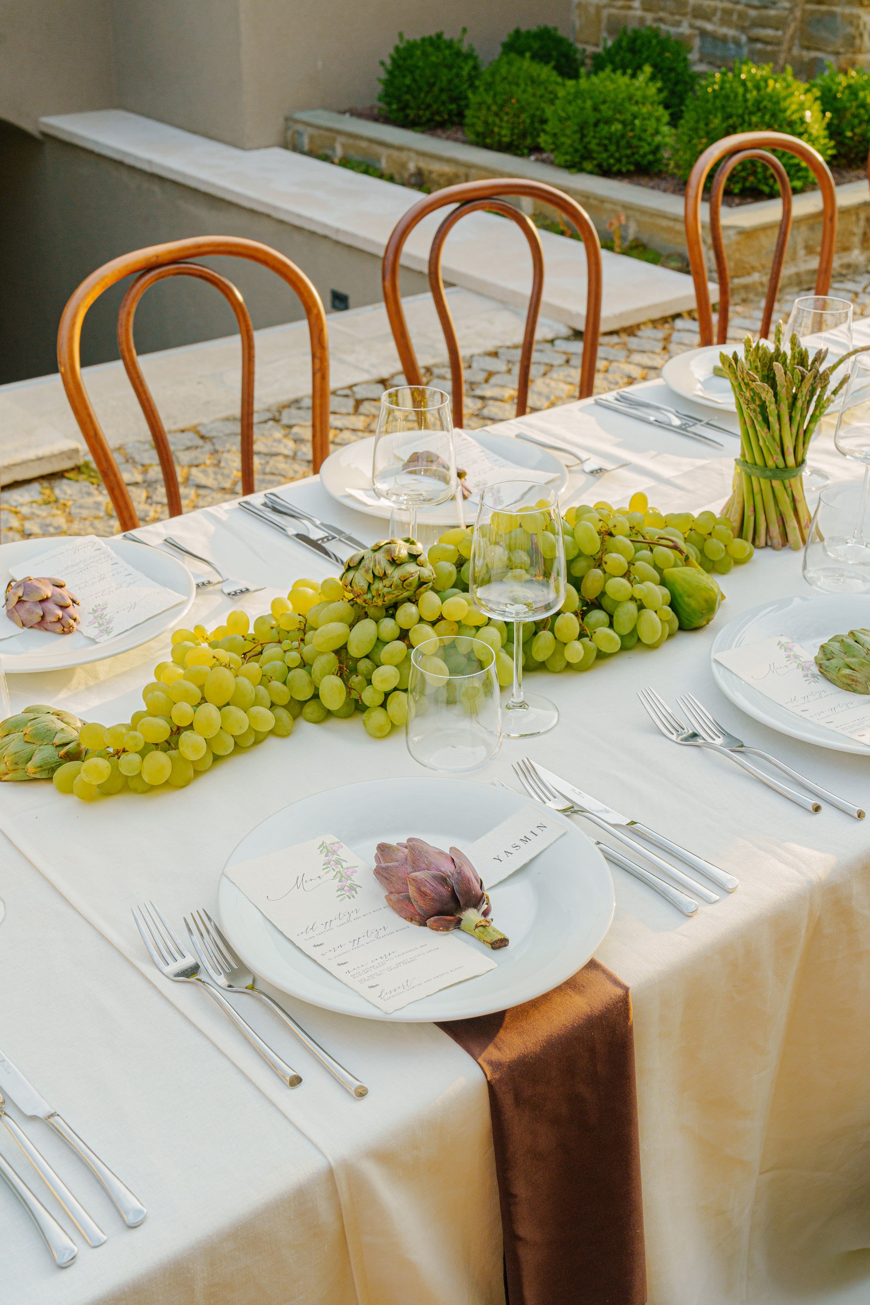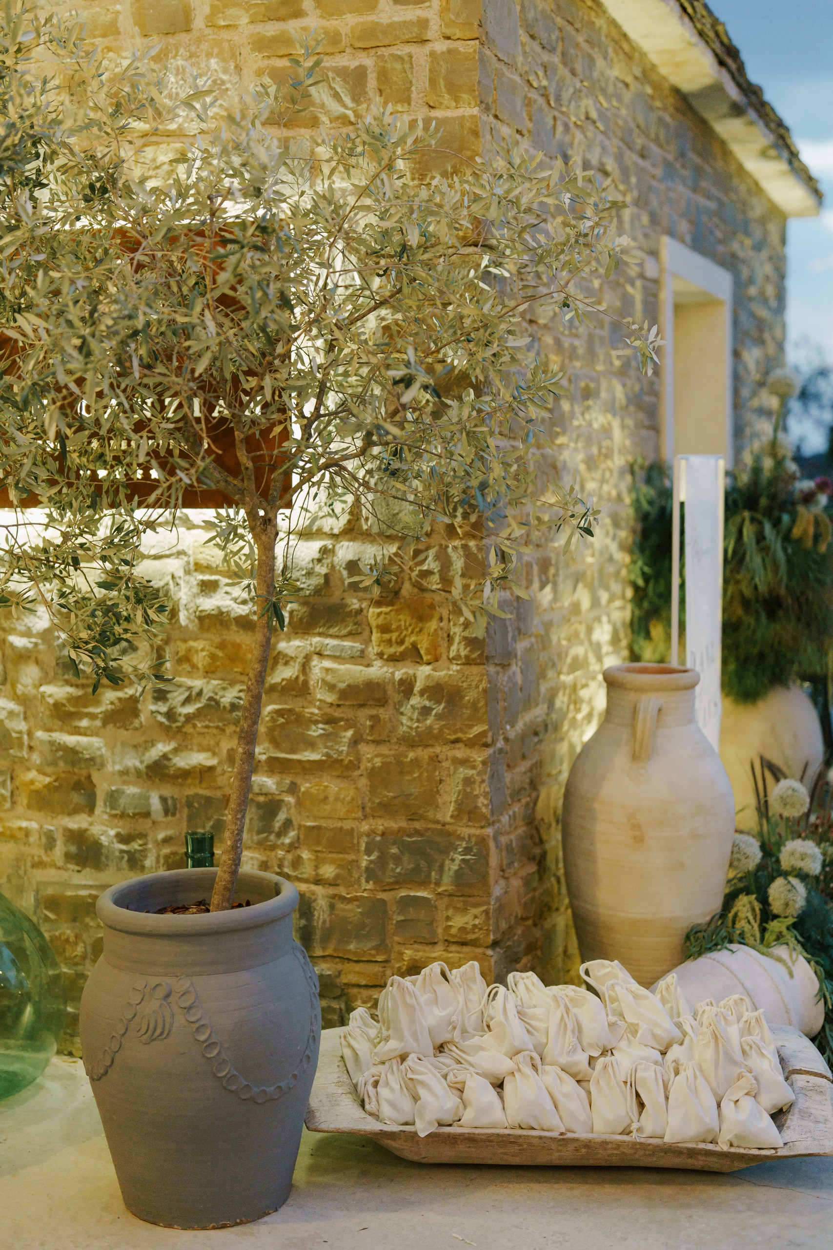 Rustic Elegance at San Canzian The wedding day at San Canzian in Istria was designed to feel earthy, natural, and refined — effortlessly blending rustic elements with chic sophistication. The aesthetic was understated yet timeless, embracing a palette of warm, tonal hues that echoed the surrounding landscape. The tablescape became the centerpiece of the design — a vision of artisanal beauty with textured linens, seasonal fruits, and sculptural florals in muted tones. Long wooden chairs, natural stone, and candlelight created a warm and intimate atmosphere that evoked community, harmony, and connection to nature. Every detail felt intentional and organic, balancing elegance with authenticity.
