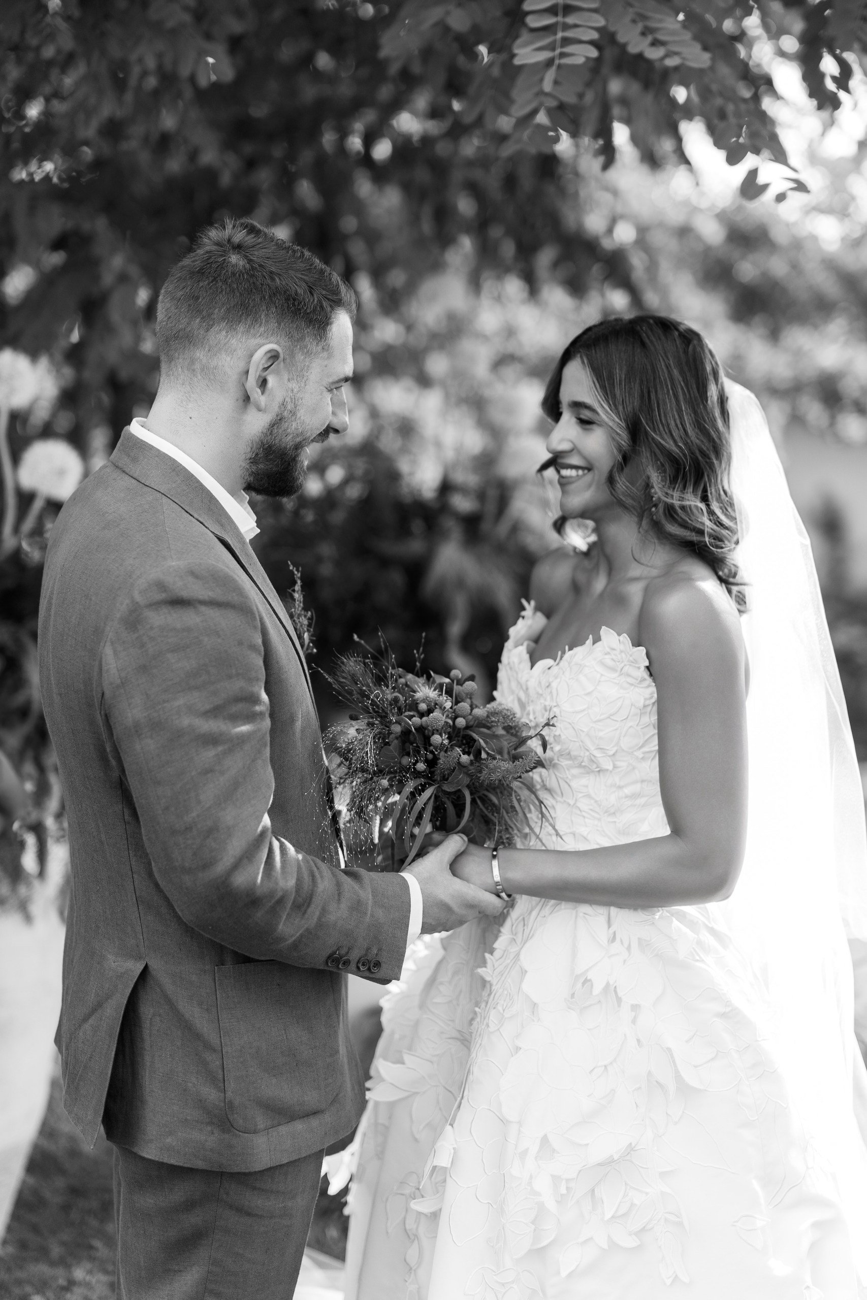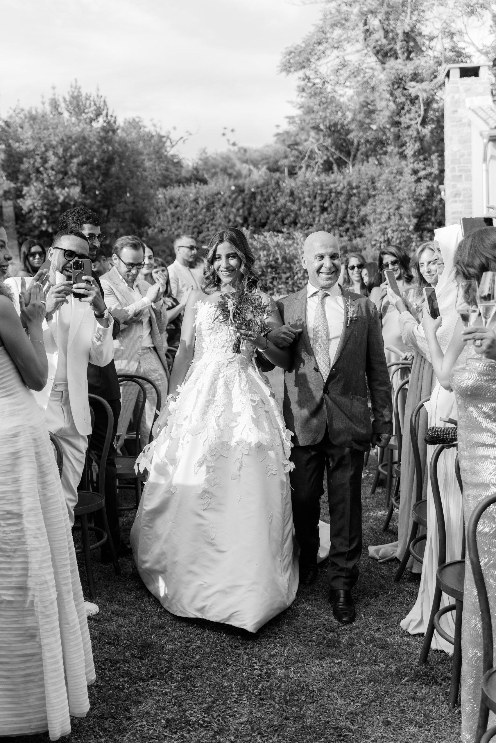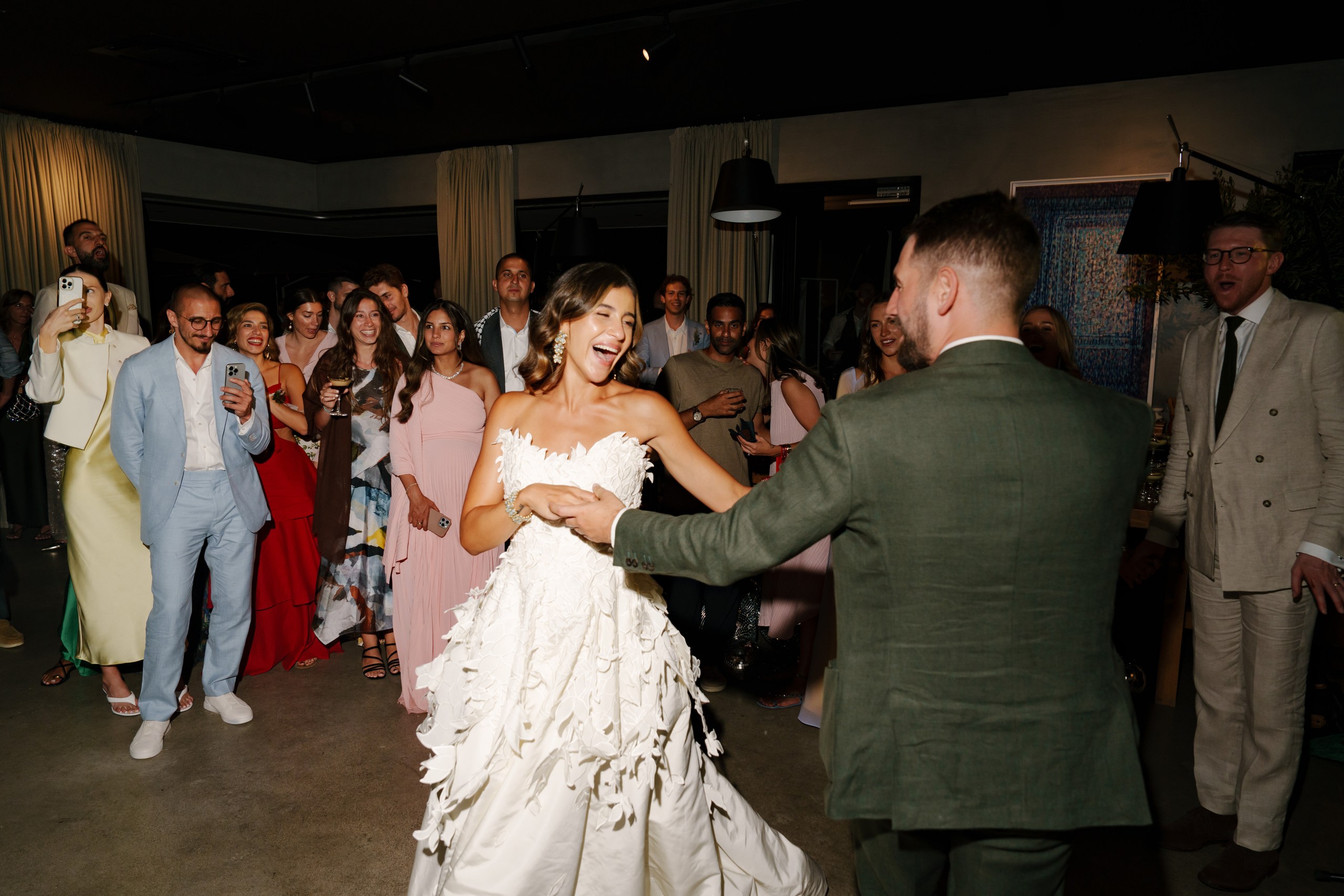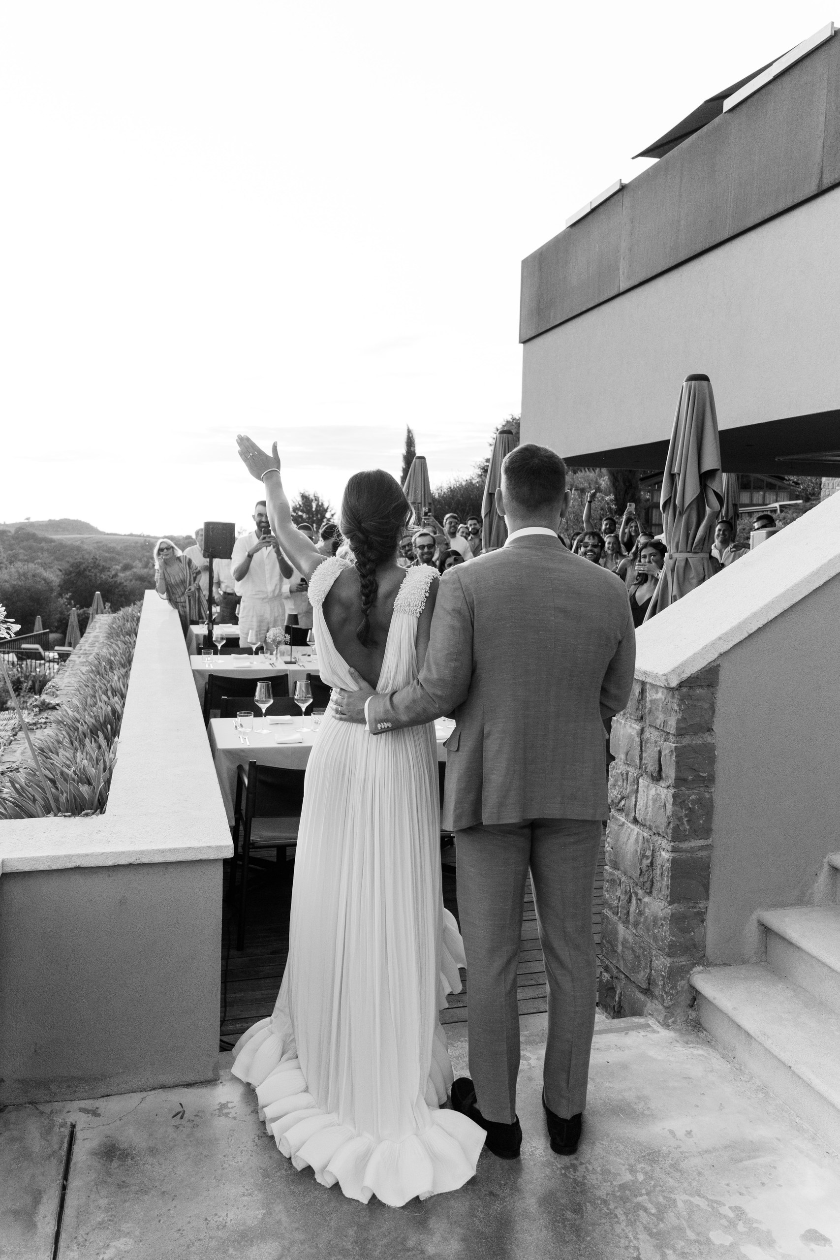 A Multicultural Celebration As the sun dipped behind the hills, the energy of the day shifted with Palestinian drums and dancers leading a spirited entrance. Croatian and Palestinian flags waved side by side, symbolizing unity and shared joy. Dinner unfolded beneath string lights, followed by heartfelt speeches, laughter, and dancing late into the night. Instead of a traditional cake, guests were treated to a tiramisu tower — a playful and delicious nod to Italian influence and a perfect finale to a weekend that felt both deeply personal and joyfully international.
