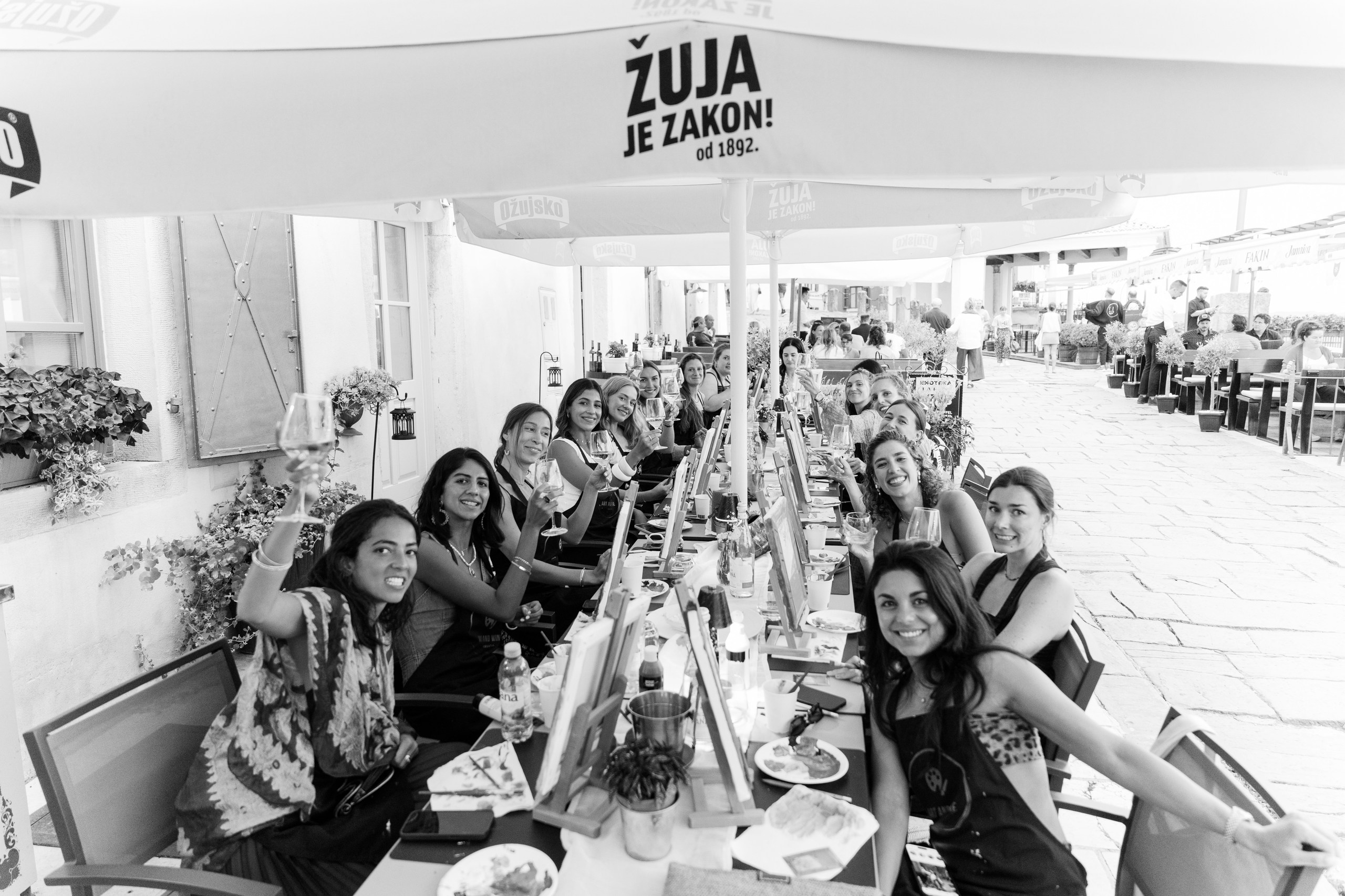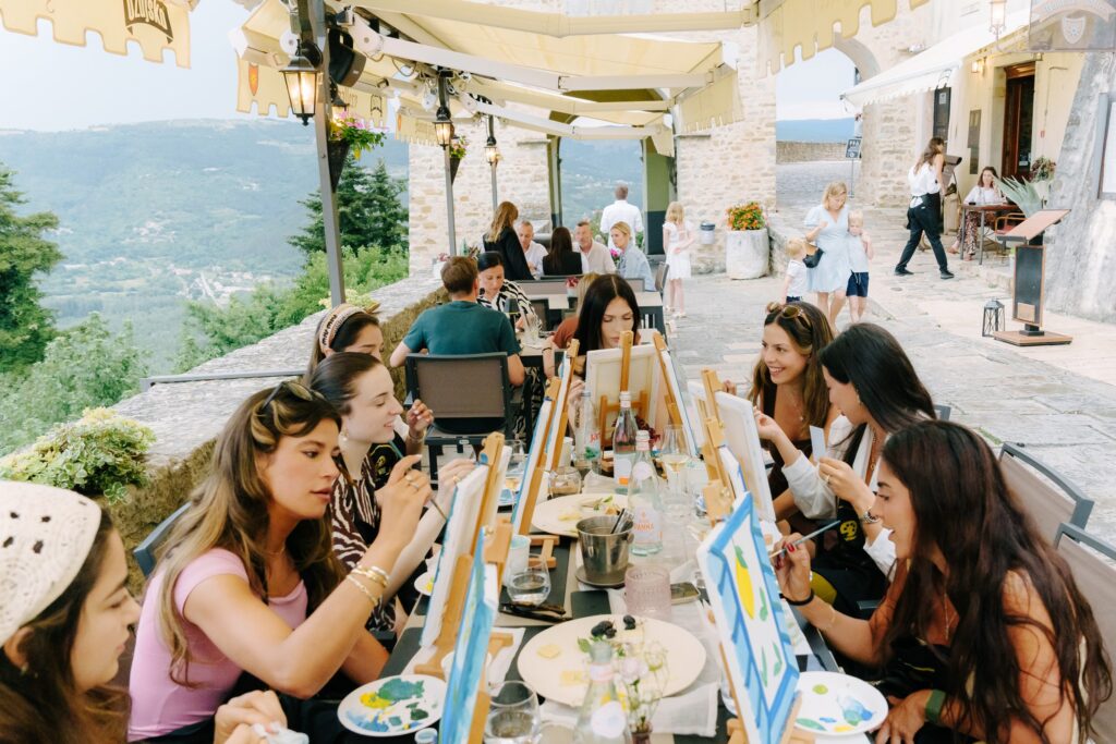 Art, Wine, and Connection The second day embraced creativity and community. While the ladies indulged in a wine and paint experience at the Montona Gallery in Motovun, painting the rolling Istrian hills, the gentlemen shared laughs and friendly competition during a football match — a perfect reflection of balance between play and artistry.