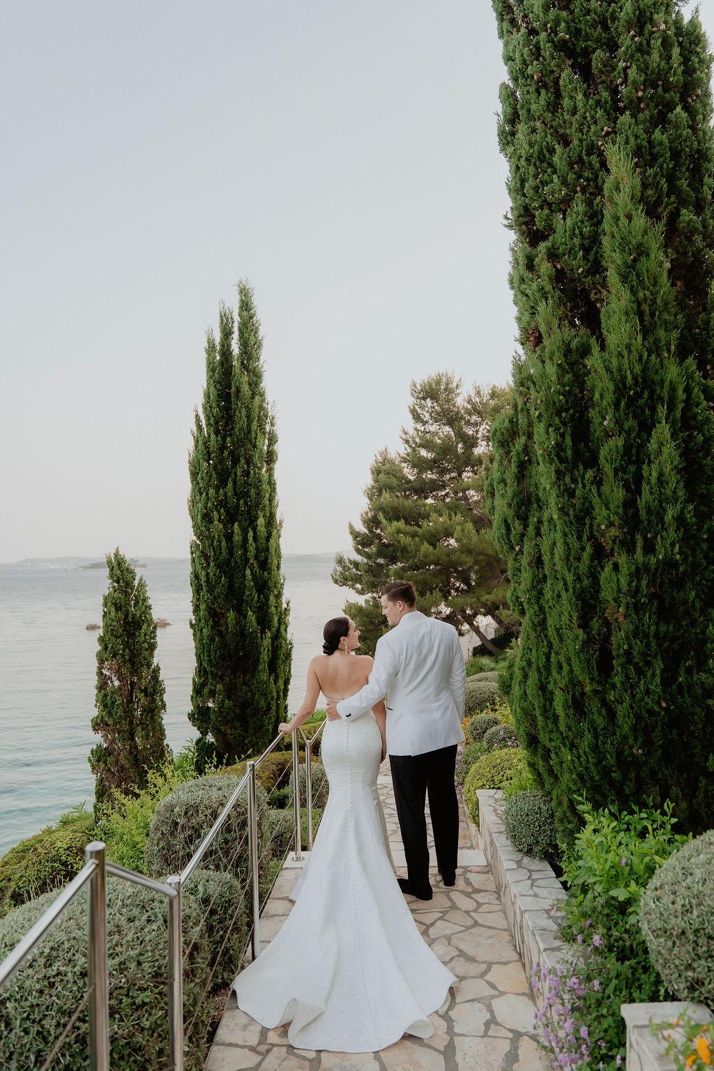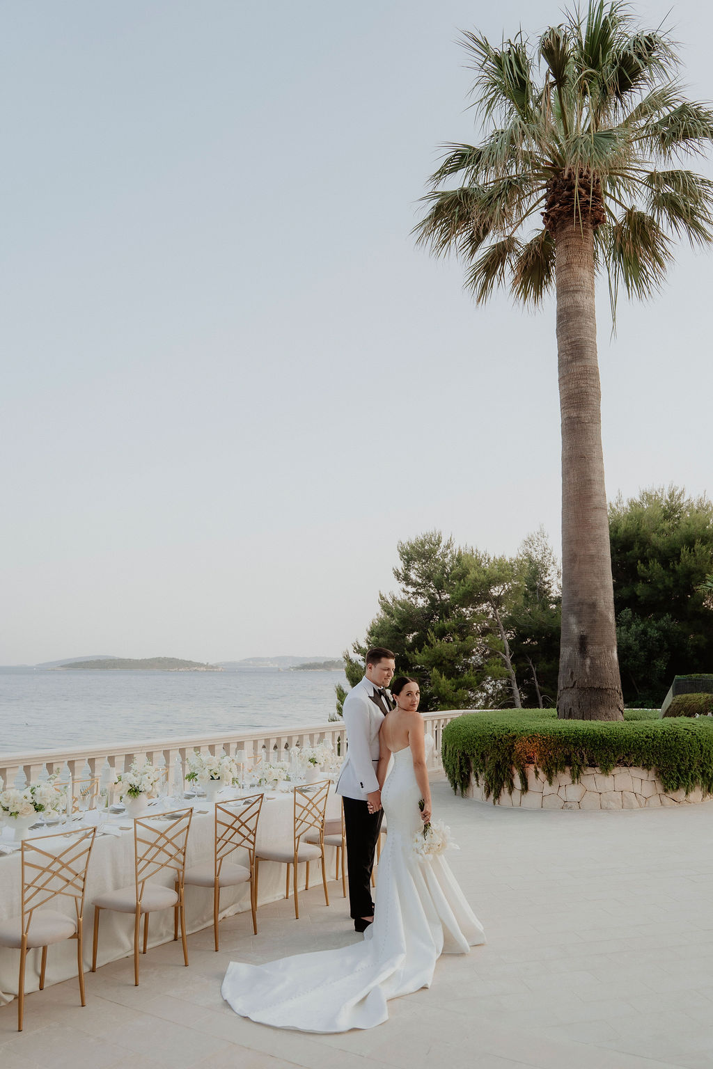 Perched above the Adriatic, Villa Korta Katarina in Orebic near Dubrovnik hosted a celebration that felt intimate and effortless. Sidonia and Jonathan envisioned their wedding as a relaxed gathering — a weekend that felt like home. They wanted everyone to feel comfortable, surrounded by good friends, beautiful views, and delicious local food and wine. The atmosphere was elegant but never formal. It was a heartfelt ode to the beauty of the sea, the villa, and the joy of being together.