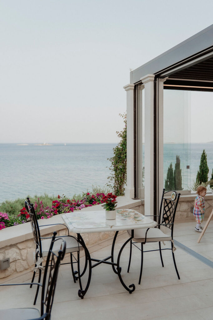 The weekend began with a welcome dinner on the villa’s winery terrace. As the sun dipped into the sea, guests enjoyed Korta Katarina’s signature wines paired with fresh local dishes. Soft music and candlelight created a cozy and inviting mood. Conversations flowed easily. The evening felt warm and unhurried — the perfect start to their celebration.