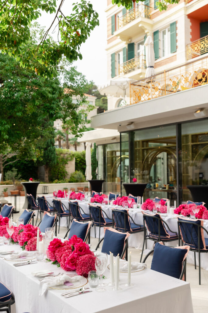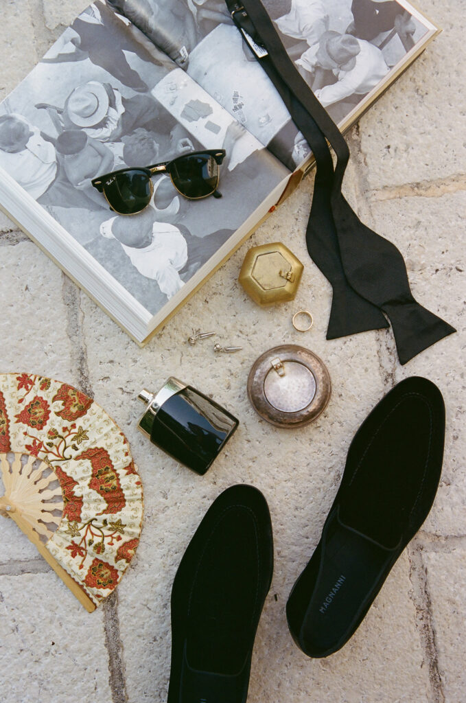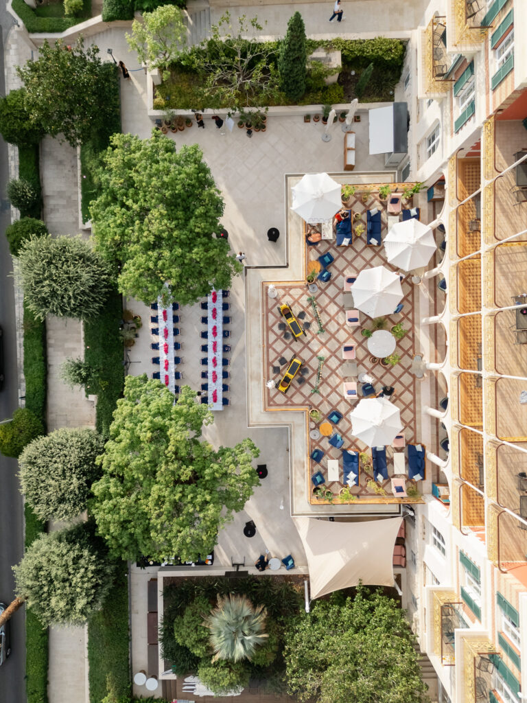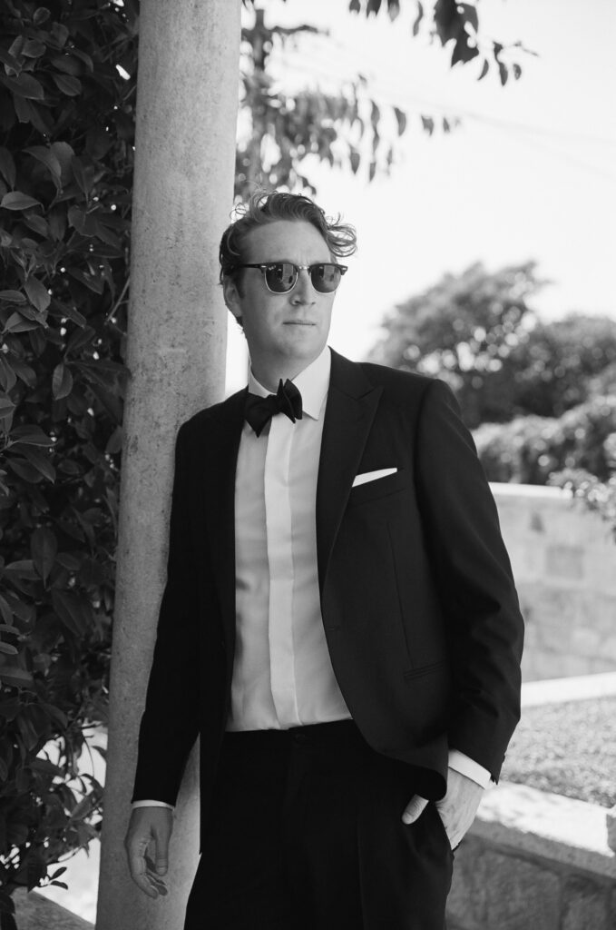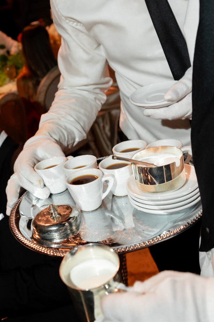 As night fell, the celebration moved into the vaulted chambers of the fortress. A glittering espresso martini tower welcomed guests, while a French band brought the dance floor to life. Overhead, a projection of classic movie dance scenes spun dreams into motion—cinematic, soulful, and unforgettable.