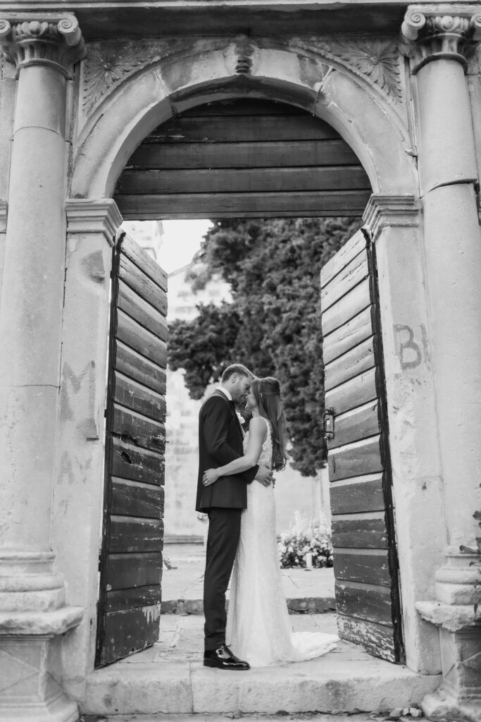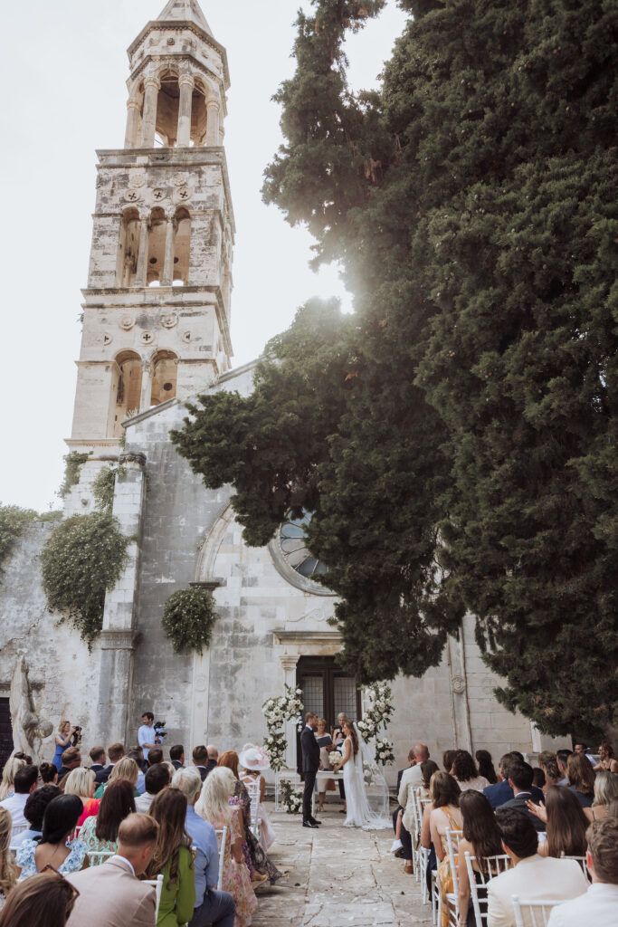 Saying “I do” at one of Hvar's most iconic locations, Sveti Marak, elevated their wedding experience. The venue, known for its stunning 19th-century tower and tranquil garden, provided the perfect setting for a St. Mark Croatia wedding. The atmosphere was magical, enhanced by the joy and emotion shared by their family and friends.