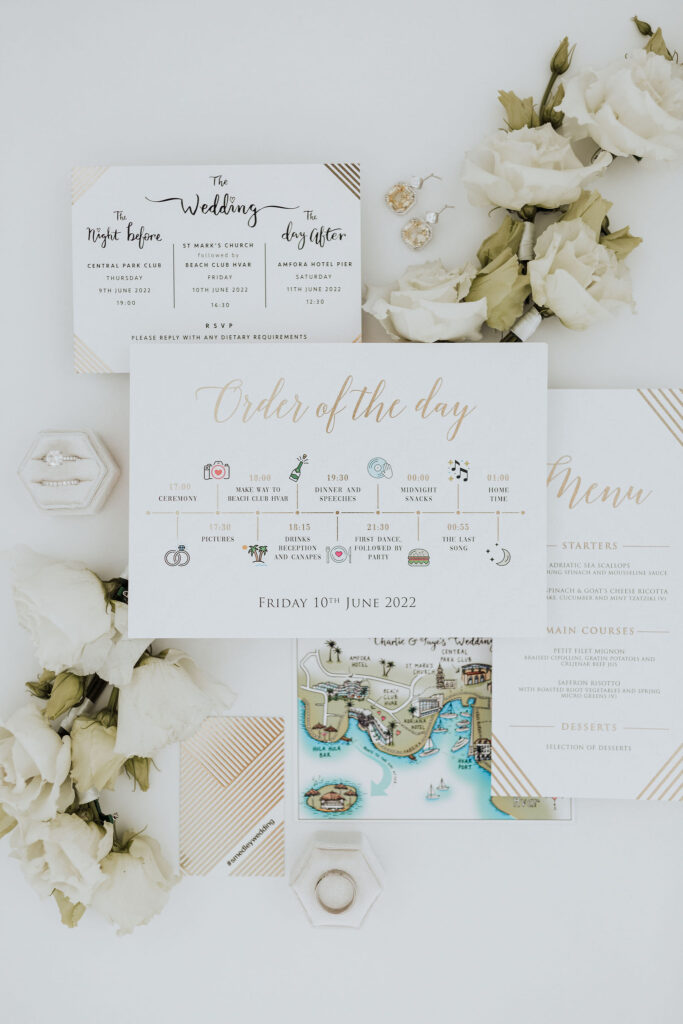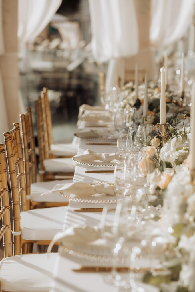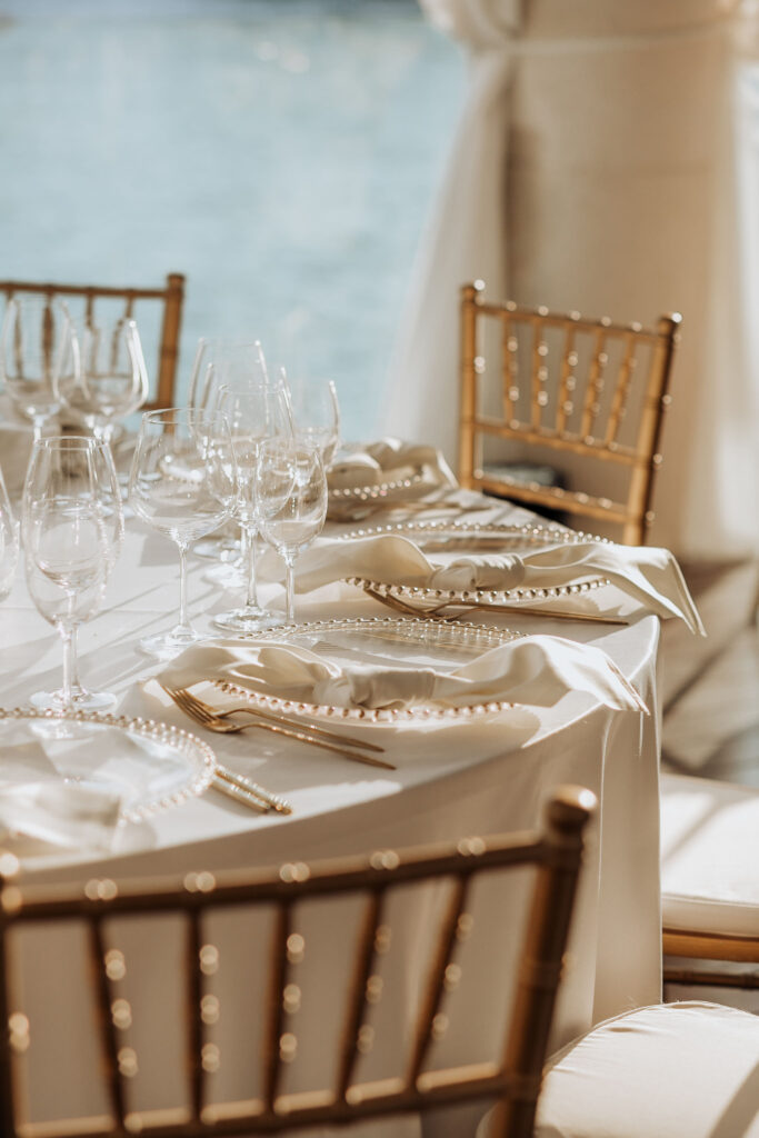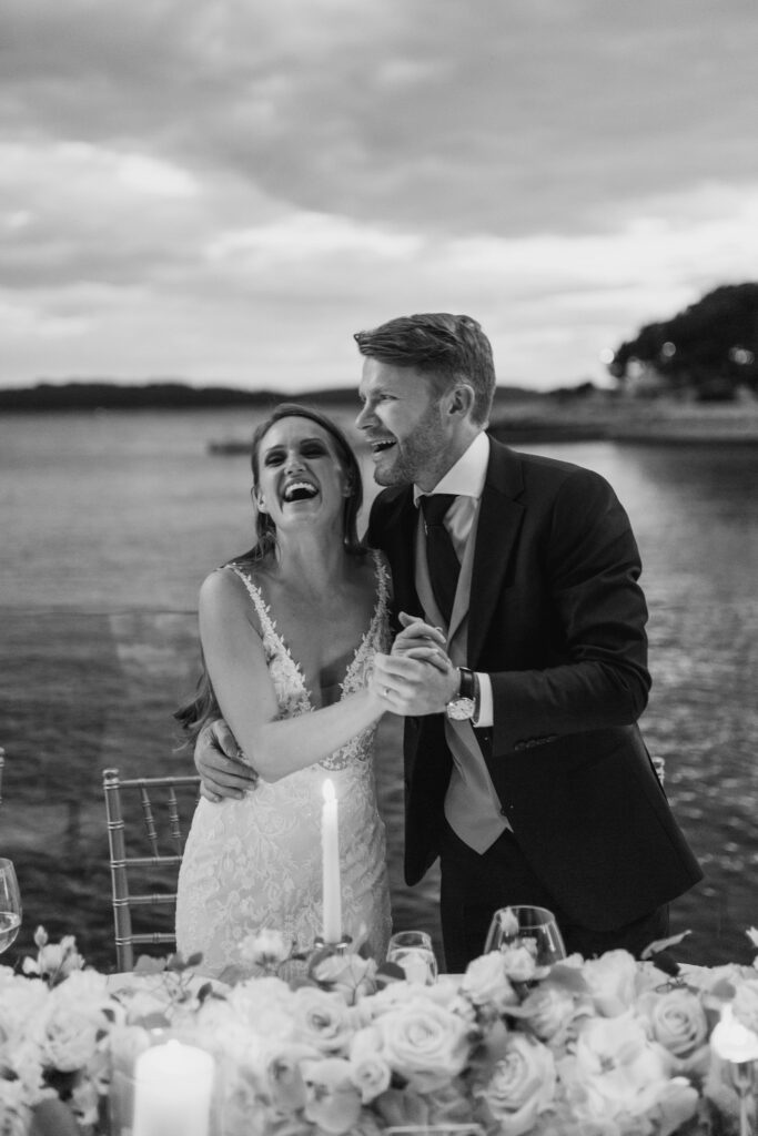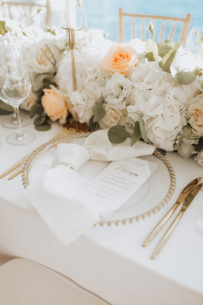 Every detail of the reception was designed to reflect ultimate elegance. White roses and delicate table arrangements were the dominant features, adding sophistication to the atmosphere. Thanks to their thoughtful choices, Faye and Charlie’s wedding was one of the most elegant Hvar Beach Club weddings we have had the pleasure of planning.