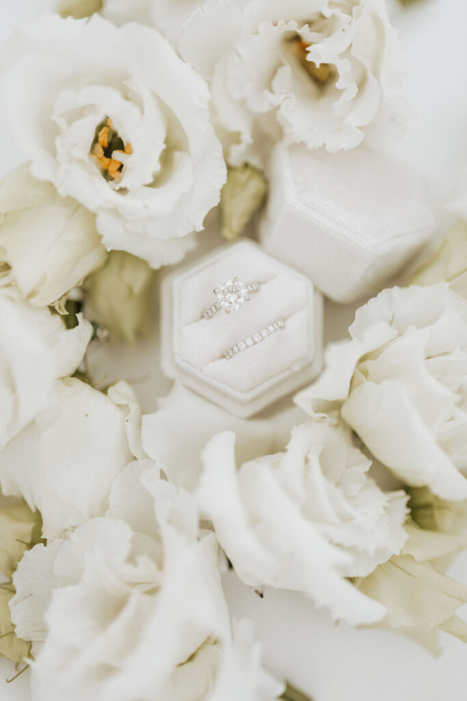 The beauty of the church required minimal decoration. Faye and Charlie chose an elegant arch made of white roses and eucalyptus, which made a stunning first impression without overpowering the natural charm of the venue.