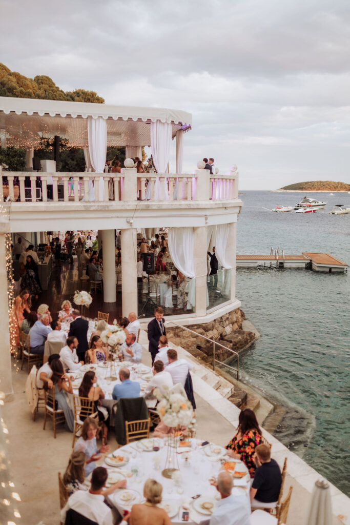 Following the ceremony, the reception was held at Beach Club Hvar, offering a breathtaking setting for the celebration. Known for its magnificent beachfront terraces, the club provided an unforgettable experience. Picture exchanging vows with the turquoise Adriatic waters in the background—it was truly a magical setting for their Hvar Beach Club wedding.