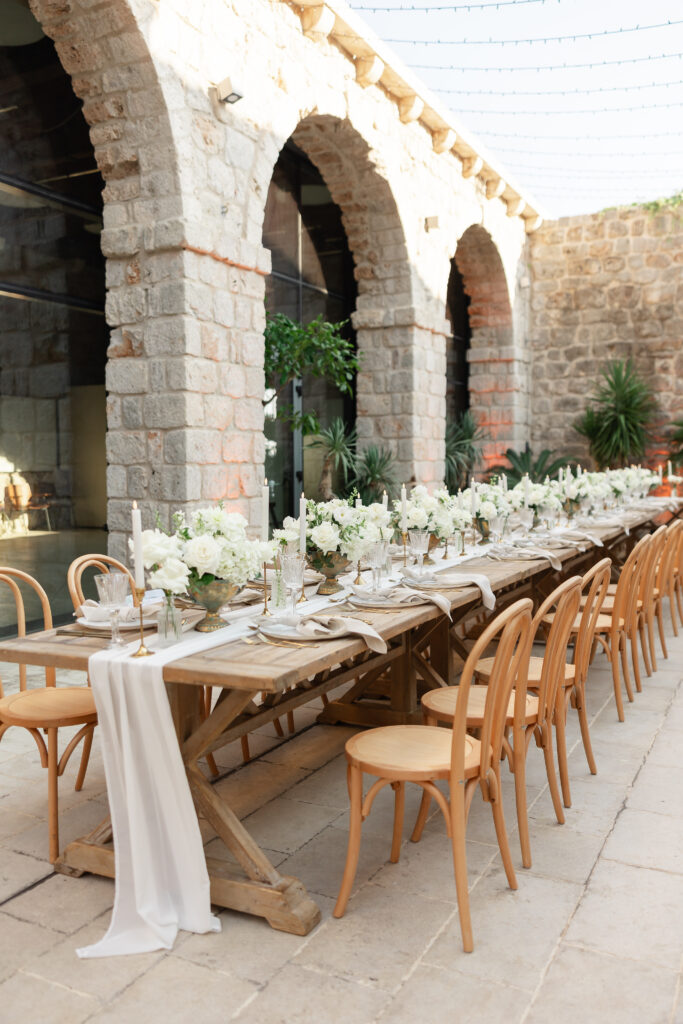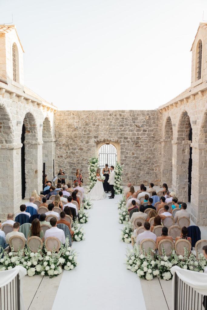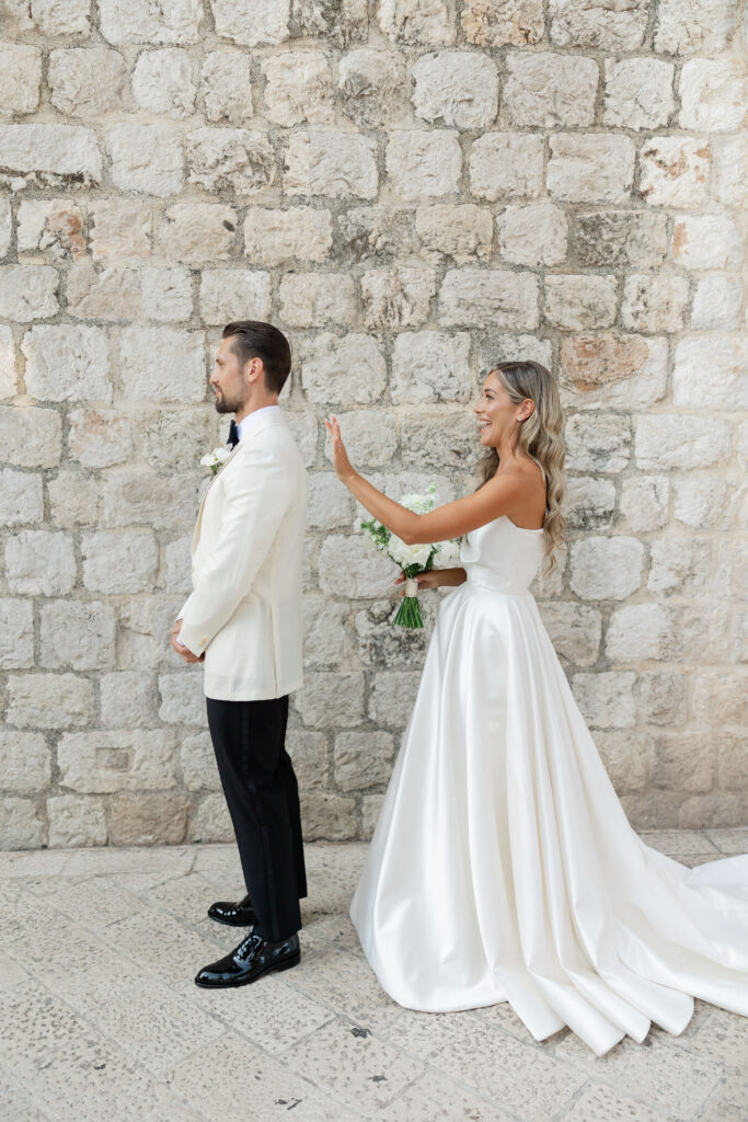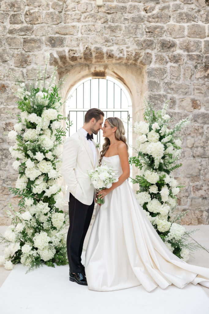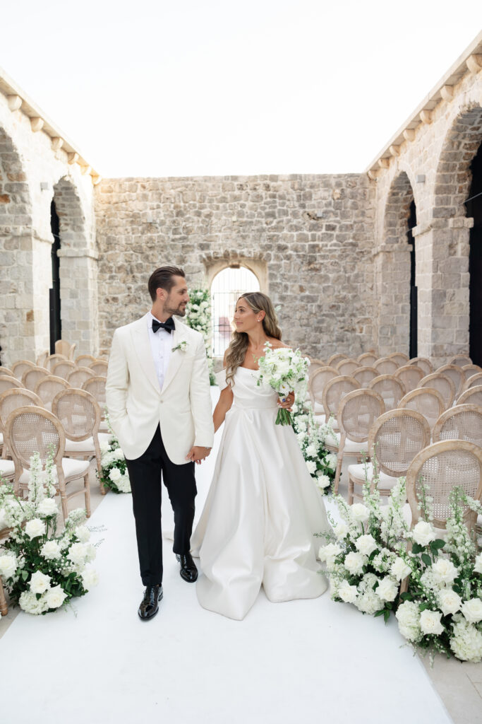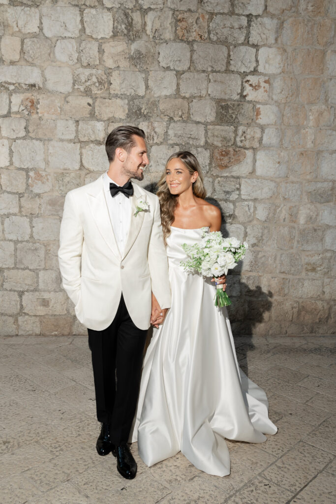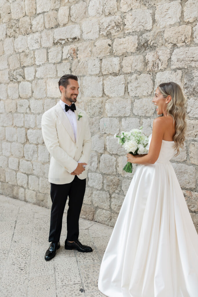 Hailing from New York, Bobby's Croatian heritage made Dubrovnik a meaningful choice for their destination wedding. Moreover, Kristina envisioned an elegant white fairytale set in this historic gem. She ensured that guests enjoyed high-quality food and beverages amidst an atmosphere of joy and celebration