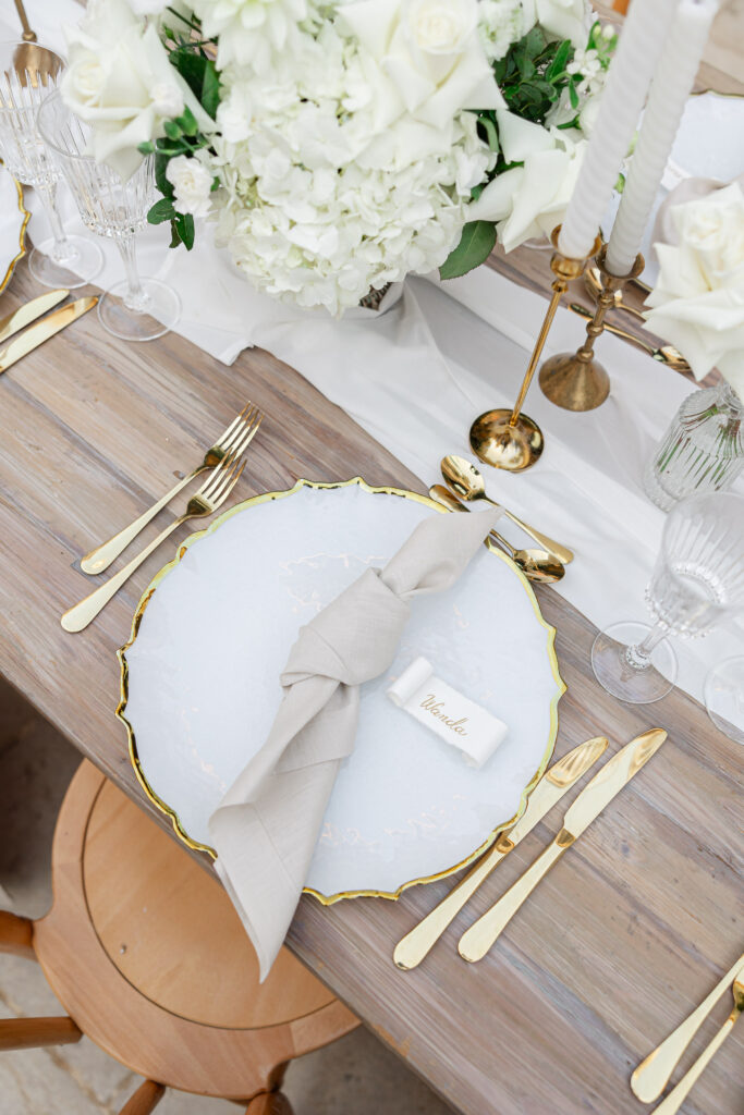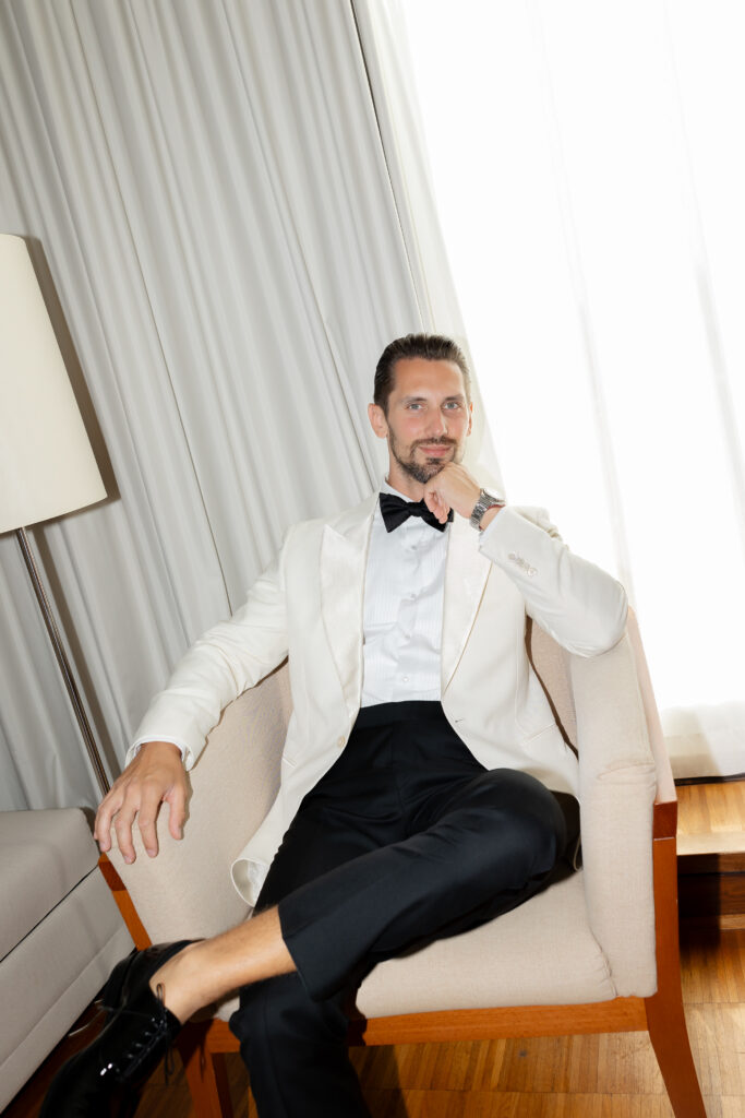 The couple invited 70 guests, with handcrafted stationery designed by Valnea Design, adding a personal and elegant touch to their wedding correspondence. The celebration spanned two days, featuring live music by Luca Goya, who curated a blend of classic tunes and modern hits, creating an unforgettable atmosphere. Kristina's wedding dress was a vision of elegance, perfectly complementing the "White Elegance" theme and the historic backdrop of Lazareti.