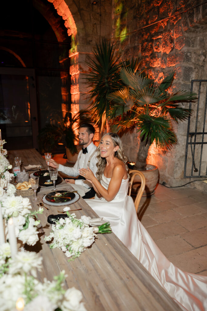 Catering was provided by Atento, offering a menu that delighted the senses. The bride and groom enjoyed octopus salad, grilled seabass, and a berry cheesecake. A pizza station added a fun and interactive element for guests, ensuring a memorable dining experience. Kristina and Bobby's wedding at Lazareti Dubrovnik was a harmonious blend of elegance, history, and personal significance. The "White Elegance" theme, combined with the historic charm of the venue, created an unforgettable experience for all in attendance.