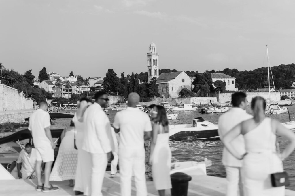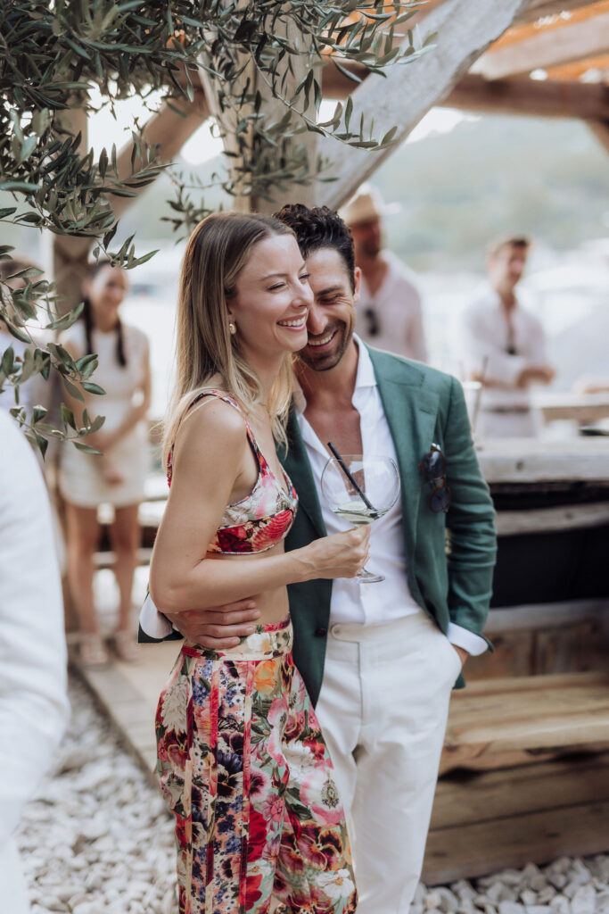 The festivities kicked off at the picturesque Laganini Beach Bar on Palmizana Island. Guests were greeted with refreshing welcome drinks as they soaked in the serene atmosphere. The sunset over the Adriatic Sea set the mood, blending natural beauty with the excitement of the occasion.