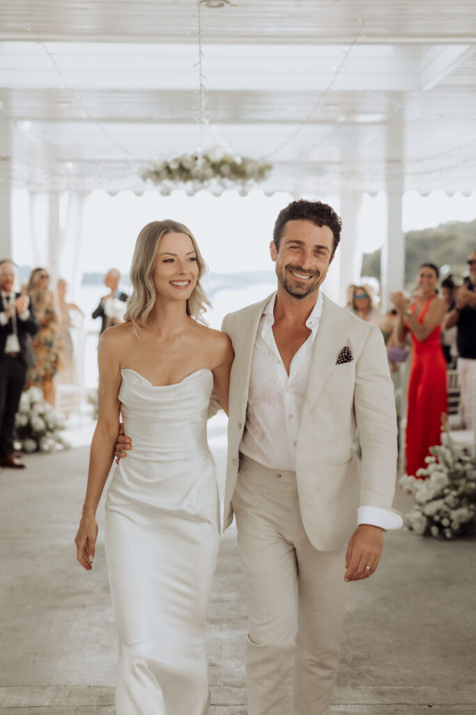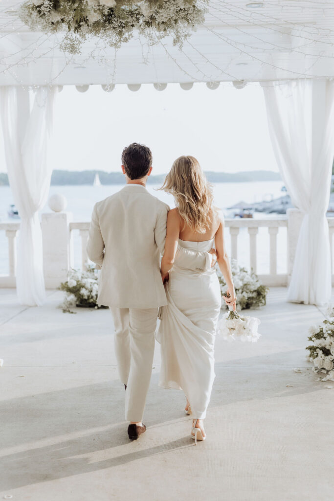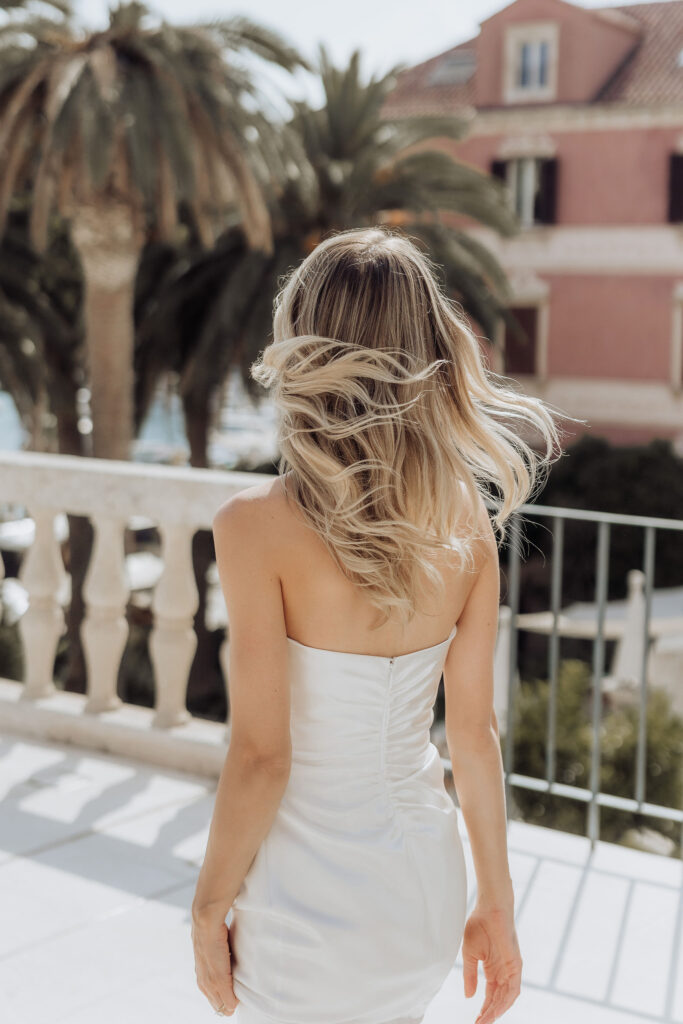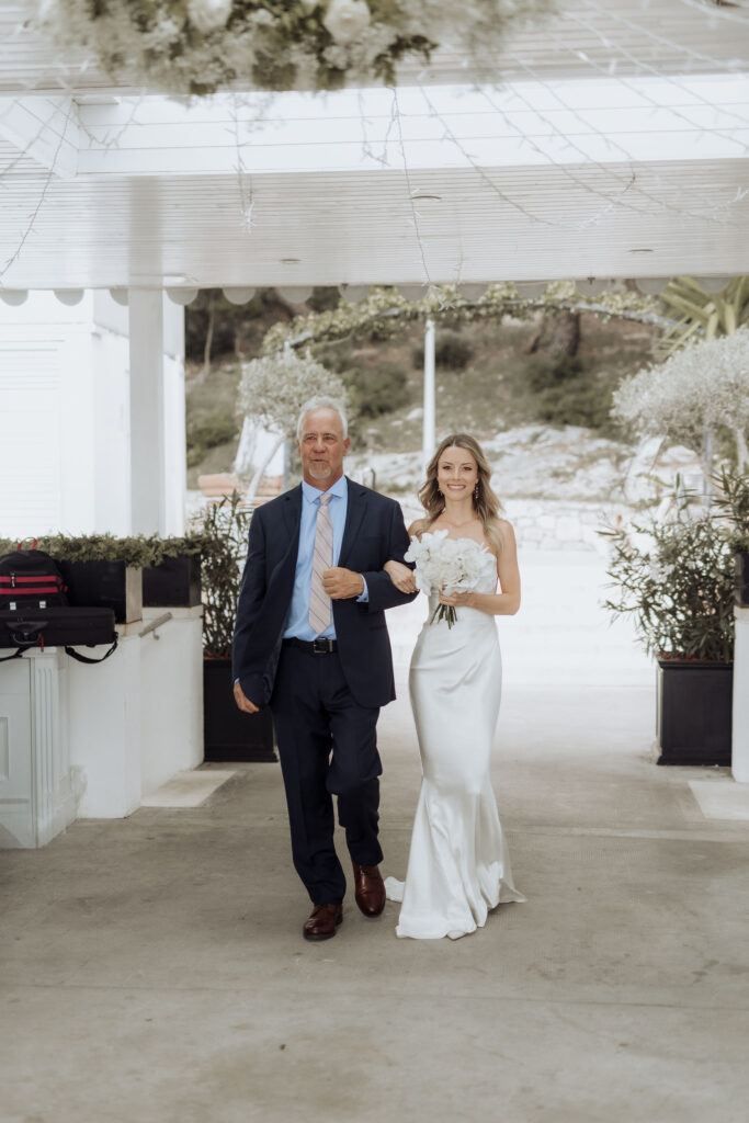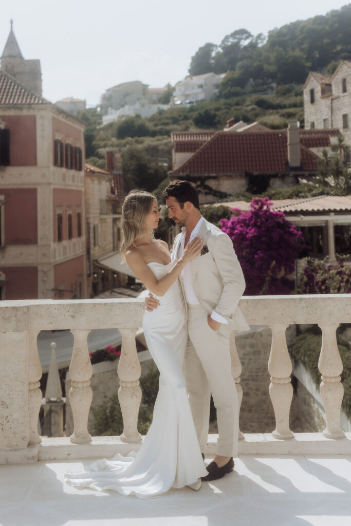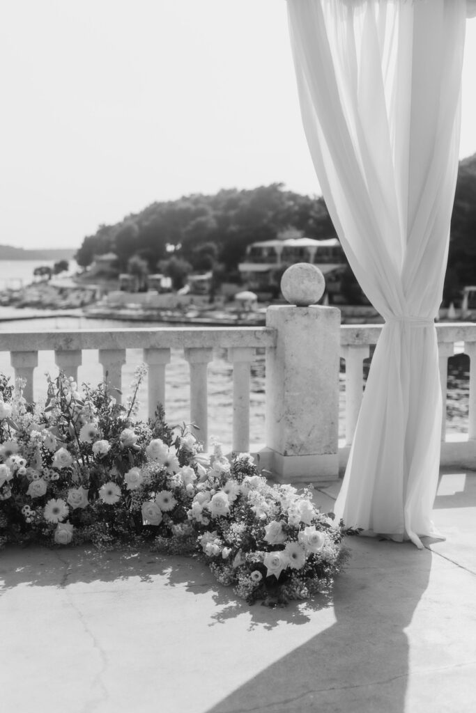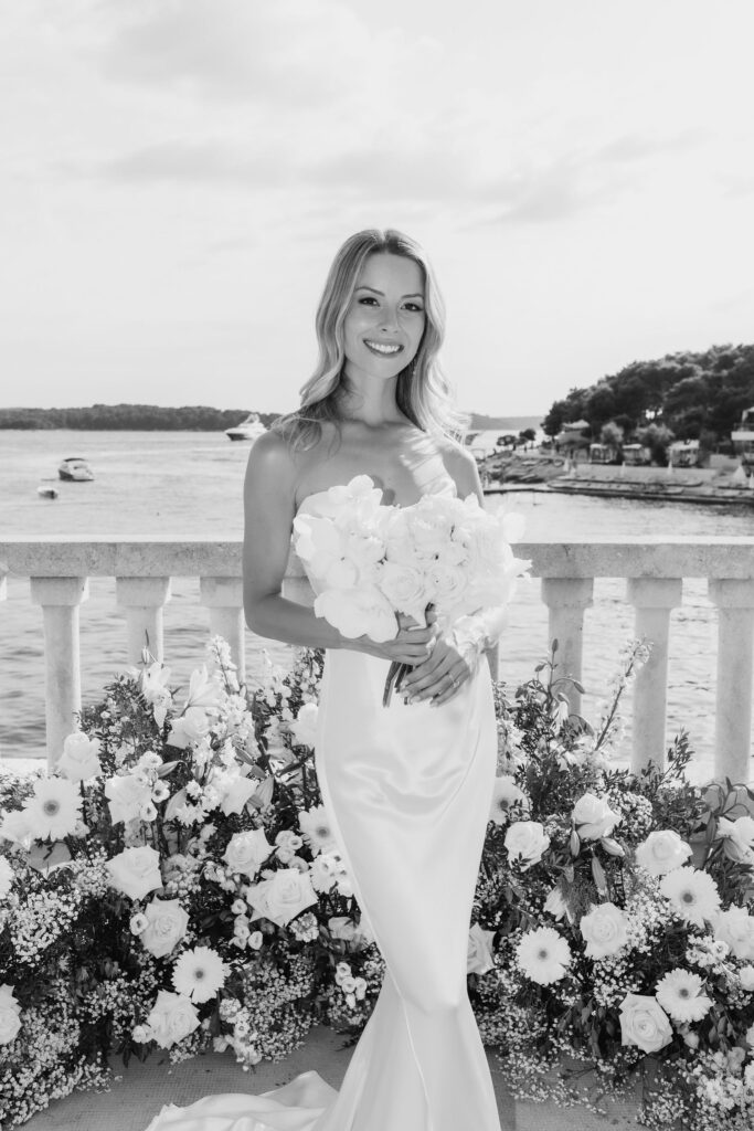 The next day, Susan and Aaron exchanged heartfelt vows at the magnificent Beach Club Hvar. Nestled along the Adriatic coastline, this venue provided a breathtaking setting for their ceremony. A floral arch framed the couple as they pledged their love, with the sparkling sea and gentle breeze adding to the romantic atmosphere.