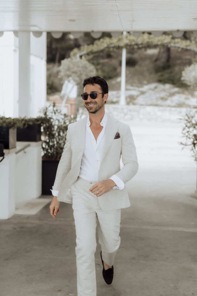 Susan and Aaron, exuding effortless elegance, mingled with their loved ones against the stunning coastal backdrop. The calming sound of the waves and the tranquil vibe of Laganini created an idyllic prelude to the weekend’s celebrations.