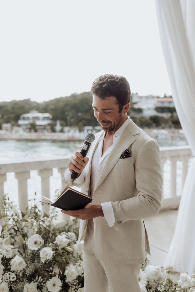 Surrounded by their closest family and friends, the intimate ambiance enhanced the emotional depth of the moment. The natural beauty of Beach Club Hvar made the ceremony unforgettable, leaving everyone in awe.