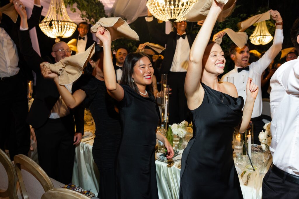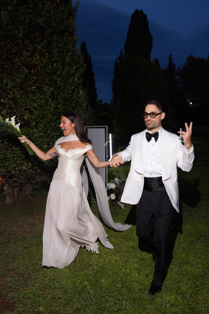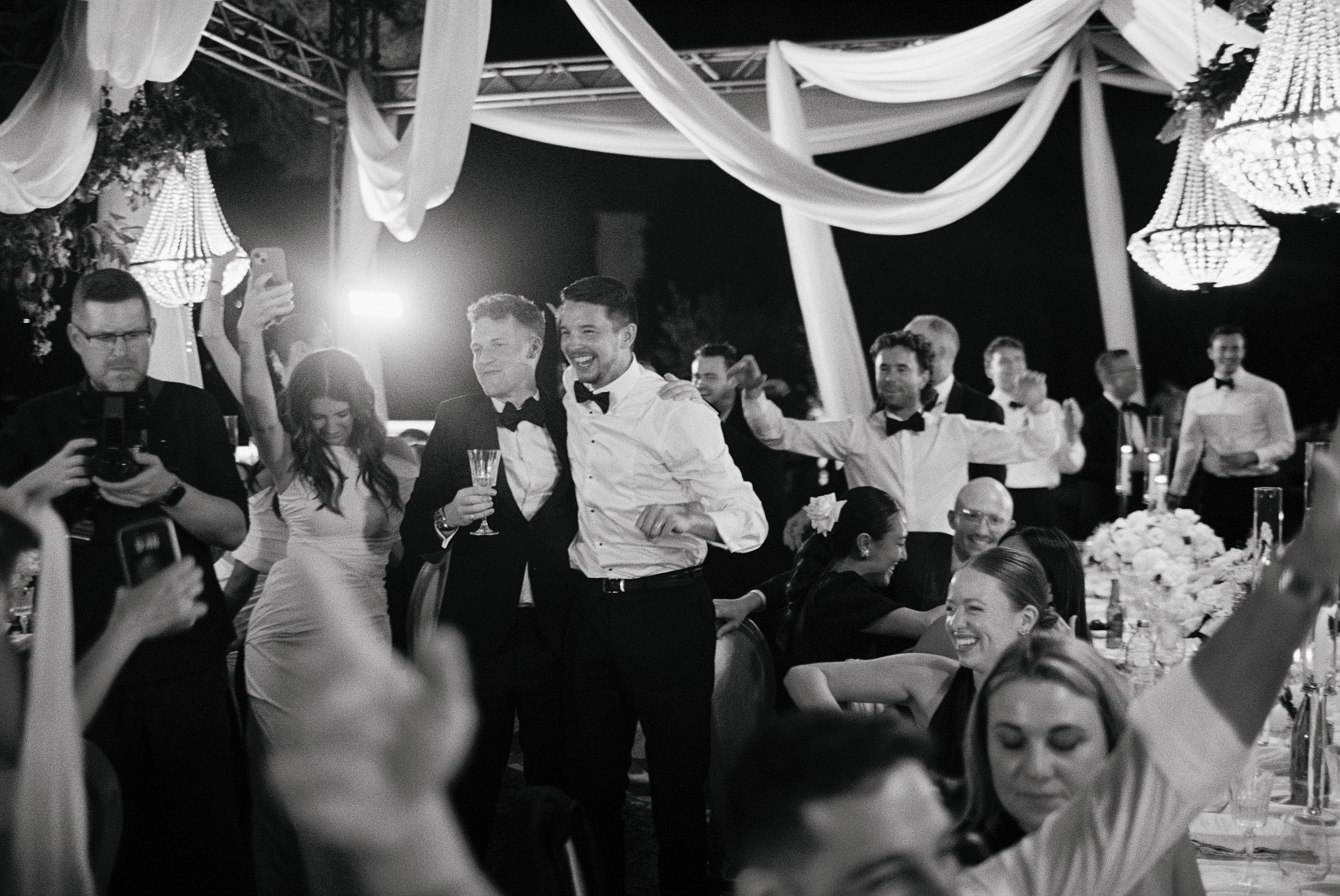 From the bride leaning effortlessly beside the wedding cake, to Lauren and Dillon walking hand in hand under the night sky, the celebration unfolded naturally — stylish but never forced. It was joyful, elegant, and real. Every frame felt worthy of its place in Vogue Australia, not because it tried to impress, but because it stayed true to the couple’s vision: timeless luxury, meaningful details, and genuine emotion. One of the most memorable moments came later in the evening, when music took over and guests sang together, glasses raised, completely present. It was joyful, emotional, and unplanned — the kind of moment that cannot be designed, only allowed.