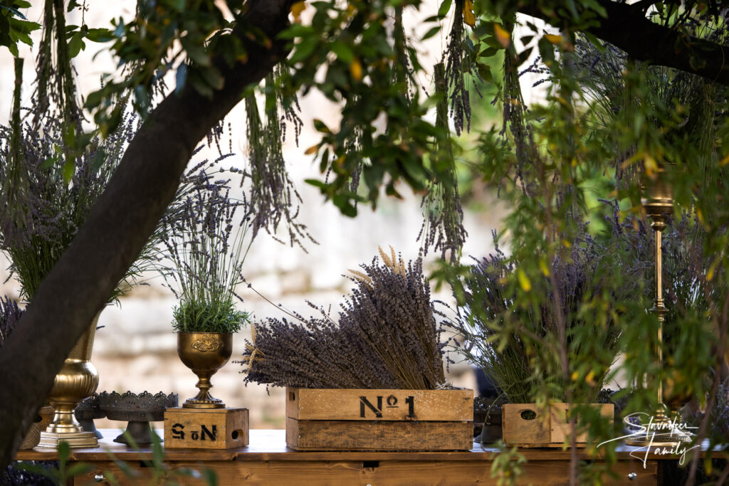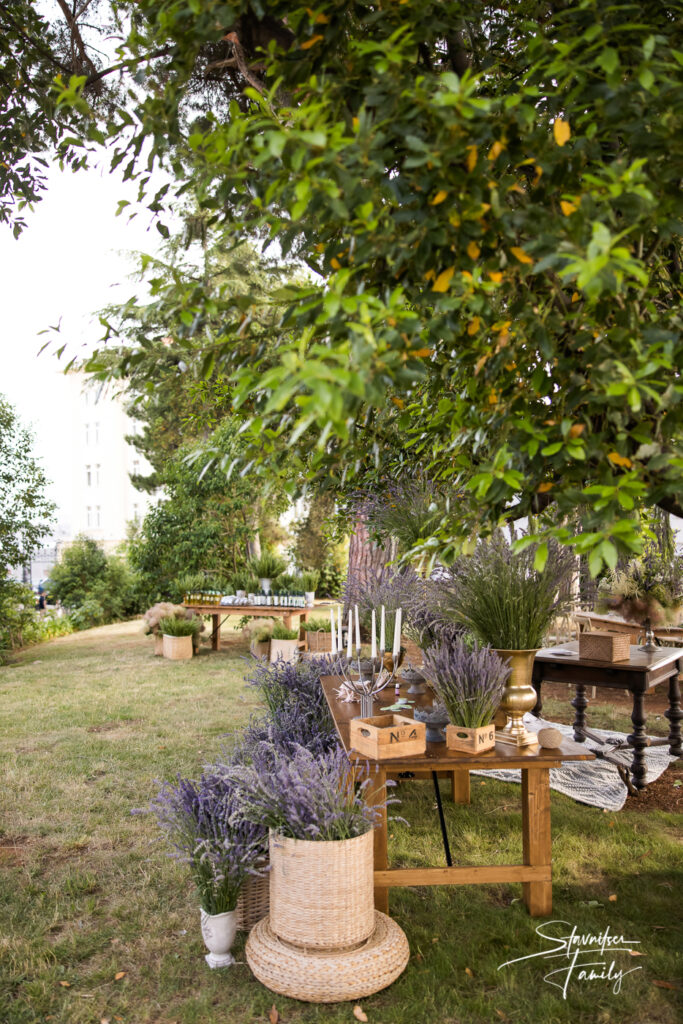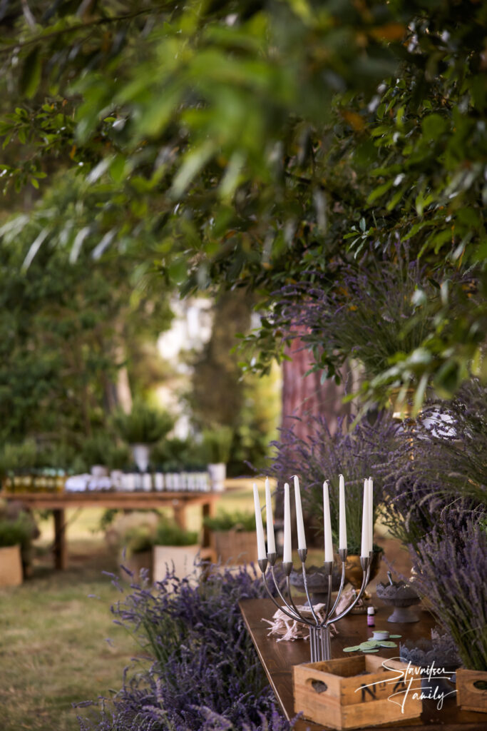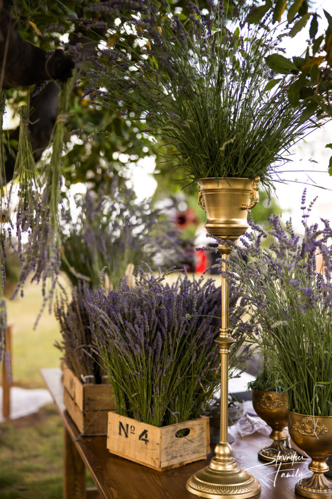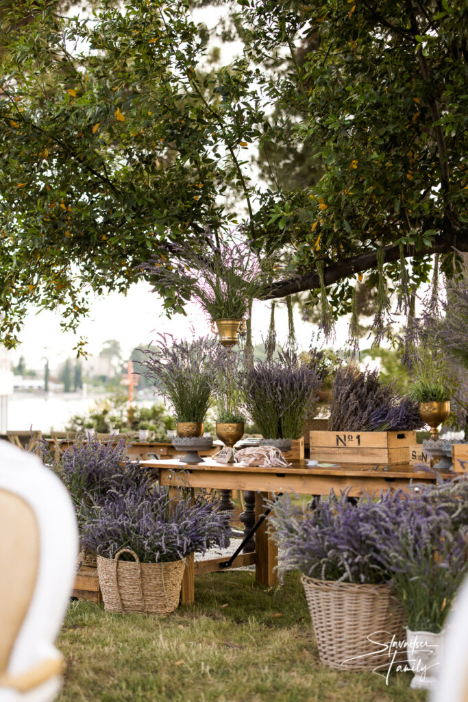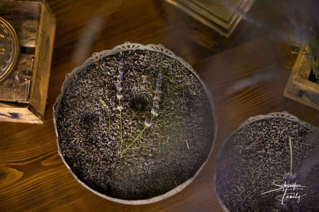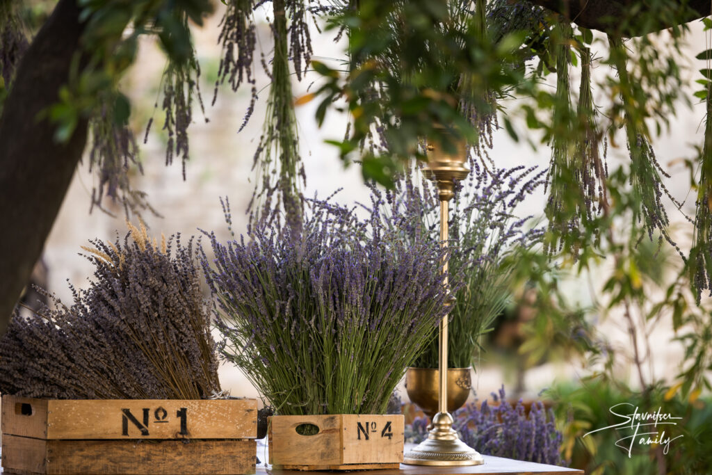 The event’s design focused on combining rustic elements with luxurious touches. Sturdy wooden tables adorned with local greenery and accents of lavender set the tone for an enchanting atmosphere. Lavender was a recurring motif—it hung from ceilings, filled pots and boxes, and infused the air with its sweet, calming scent.