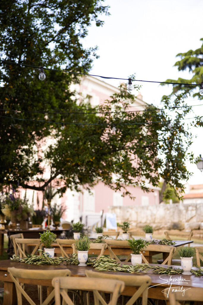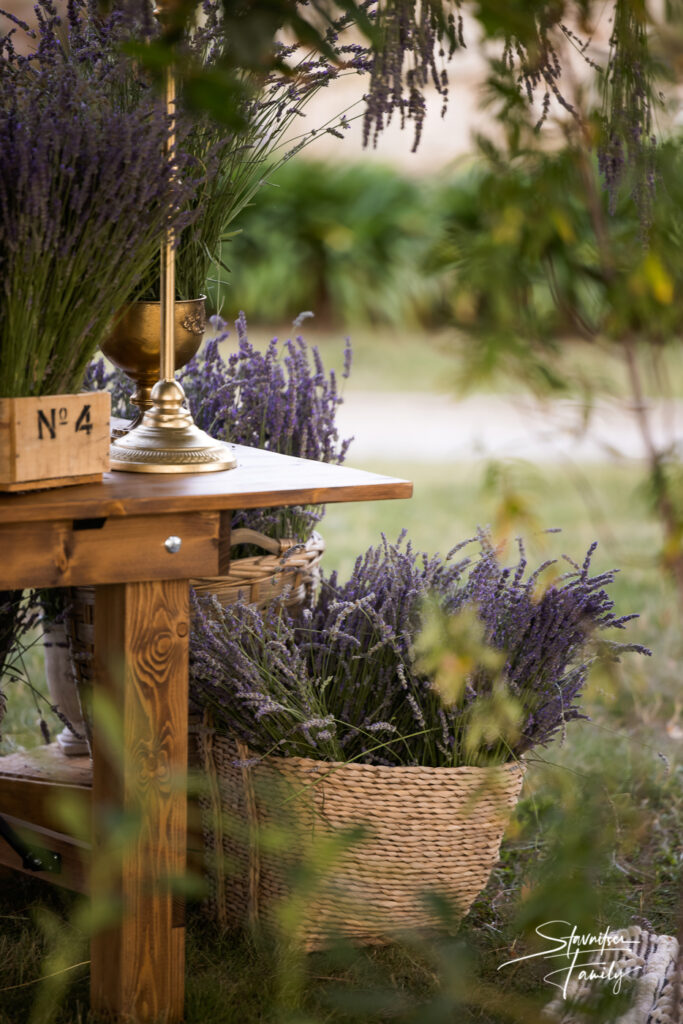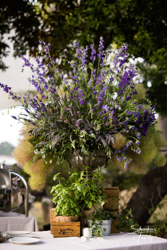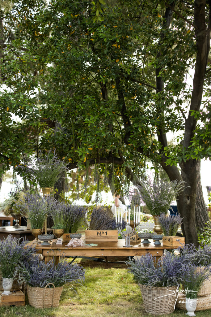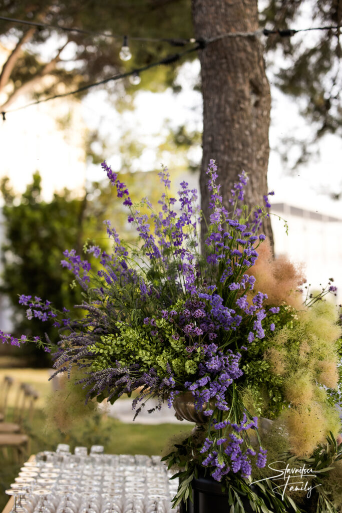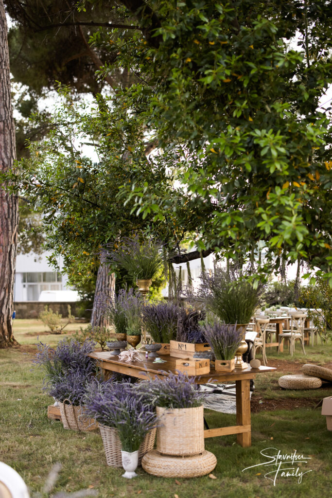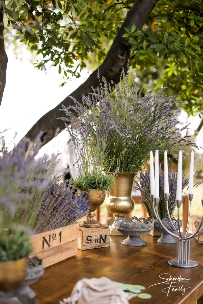 The event’s design focused on combining rustic elements with luxurious touches. Sturdy wooden tables adorned with local greenery and accents of lavender set the tone for an enchanting atmosphere. Lavender was a recurring motif—it hung from ceilings, filled pots and boxes, and infused the air with its sweet, calming scent.