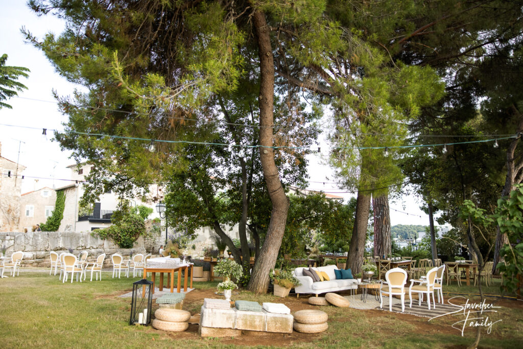 Nestled in the heart of Poreč, Villa Polesini is an iconic location that exudes timeless elegance. Surrounded by lush greenery and overlooking the sparkling Adriatic Sea, the venue offered the perfect blend of natural beauty and sophisticated charm. The villa’s expansive gardens provided ample space for dining, lounging, and celebrating under the stars. This exciting event was planned together with SOVA events.