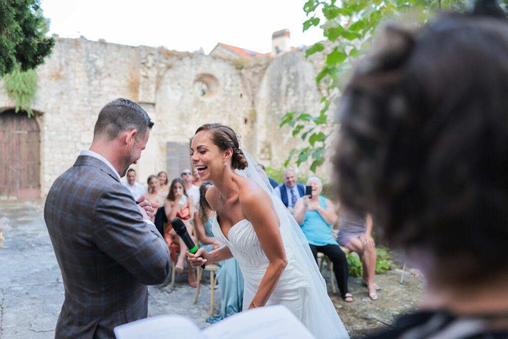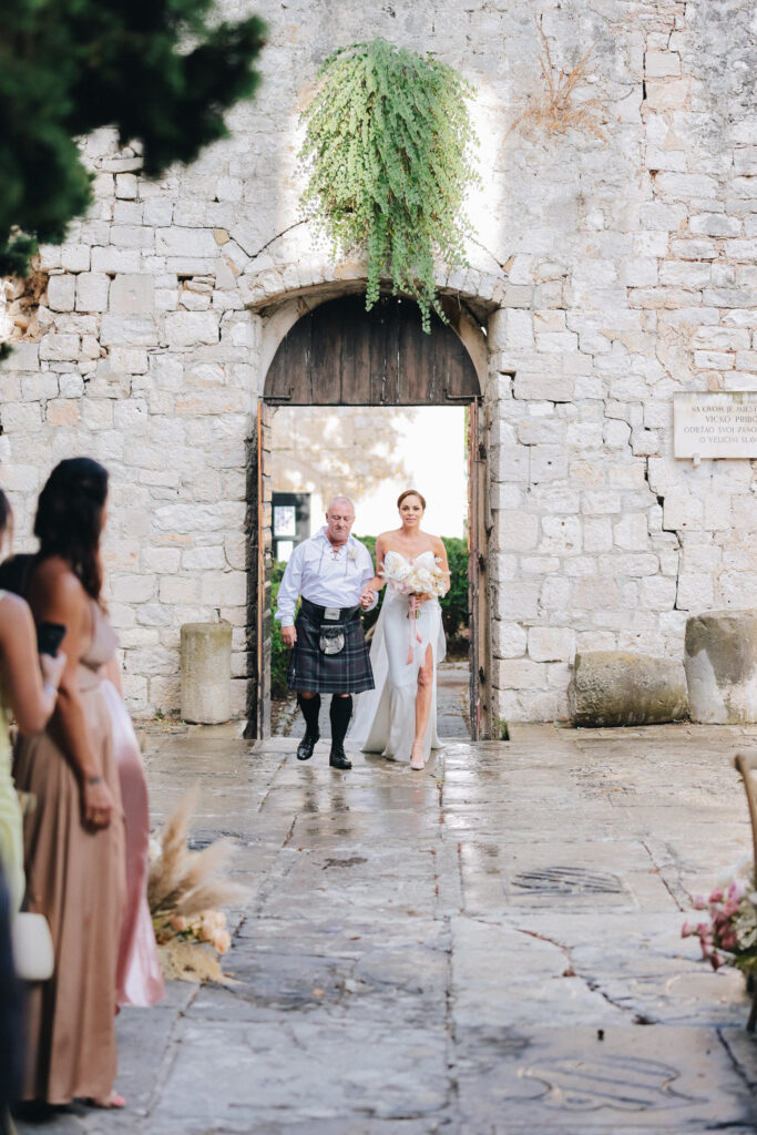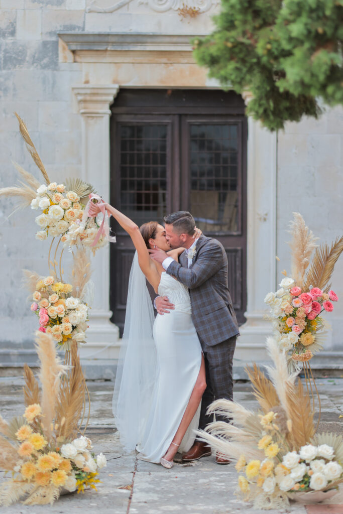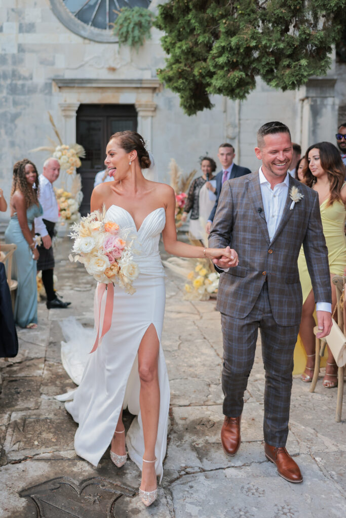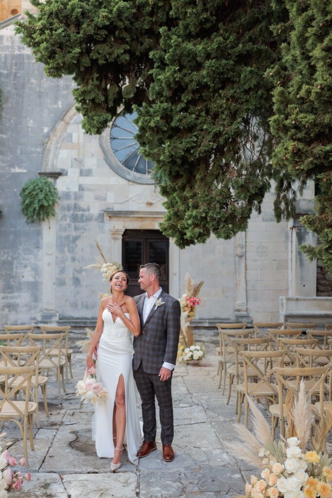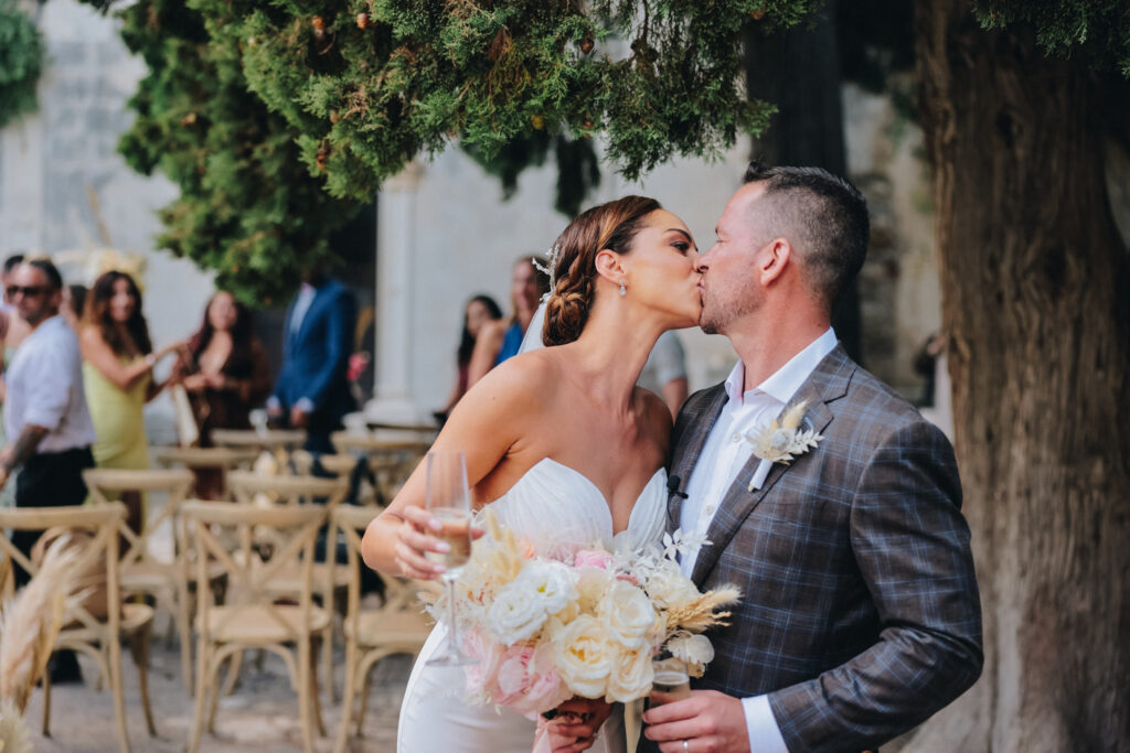 Khyla and Daniel's ceremony took place at St. Mark’s Church, also known as Sveti Marak Monastery. Quiet locations like this make intimate luxury weddings in Hvar, Croatia, extra special. The church has a sophisticated ambiance, which blends seamlessly with the natural beauty around it. This stunning venue should definitely be on the list of luxury wedding venues in Croatia.