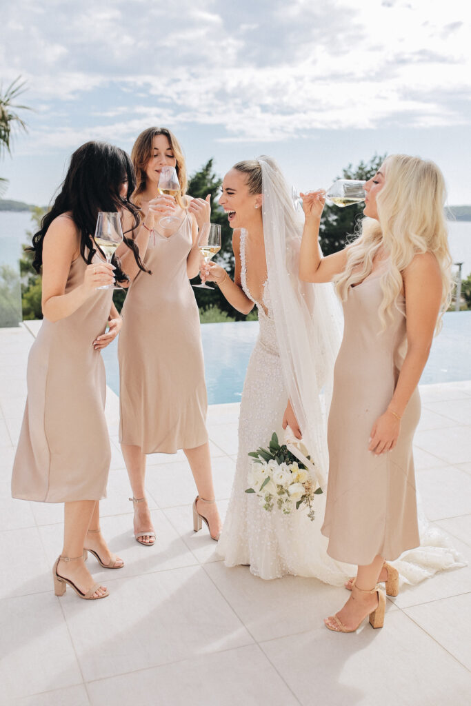 The celebrations began a day before the actual ceremony with a boat trip around Pakleni Island. This was a perfect way to help everyone relax before the big event at Fortress Hvar. The boat trip was followed by cocktails at the Topbar at Hotel Adrianna, where guests enjoyed canapés, a Gin & Vodka station, and live music, all while listening to heartfelt speeches.