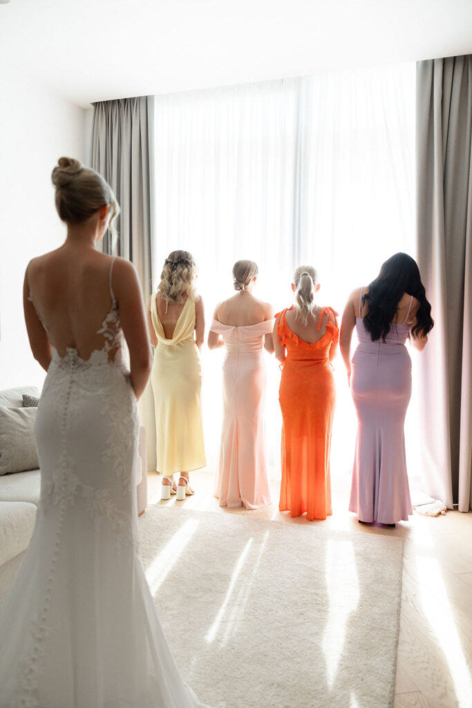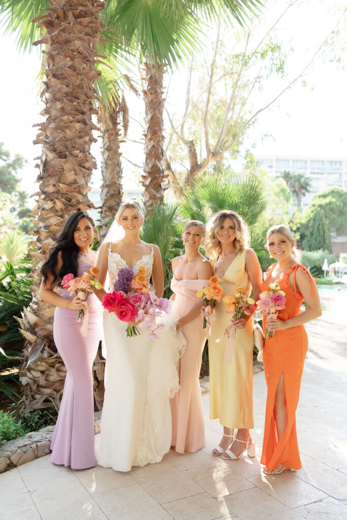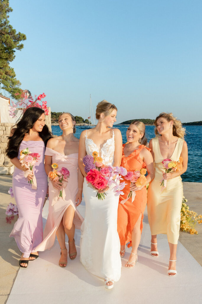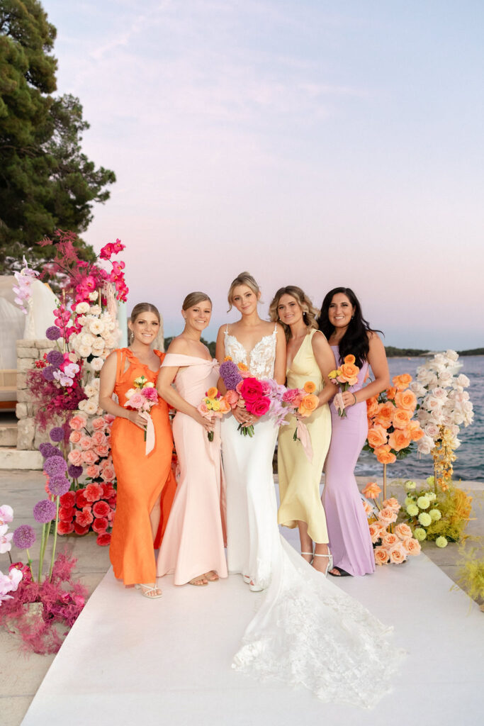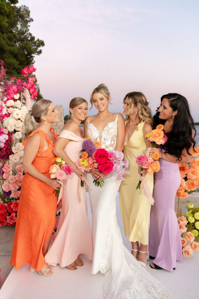 Anna’s bridesmaids wore dresses in varying hues, adding a fresh twist to the traditional matching attire. This creative approach perfectly complemented the cheerful energy of the day and brought their vibrant vision to life.