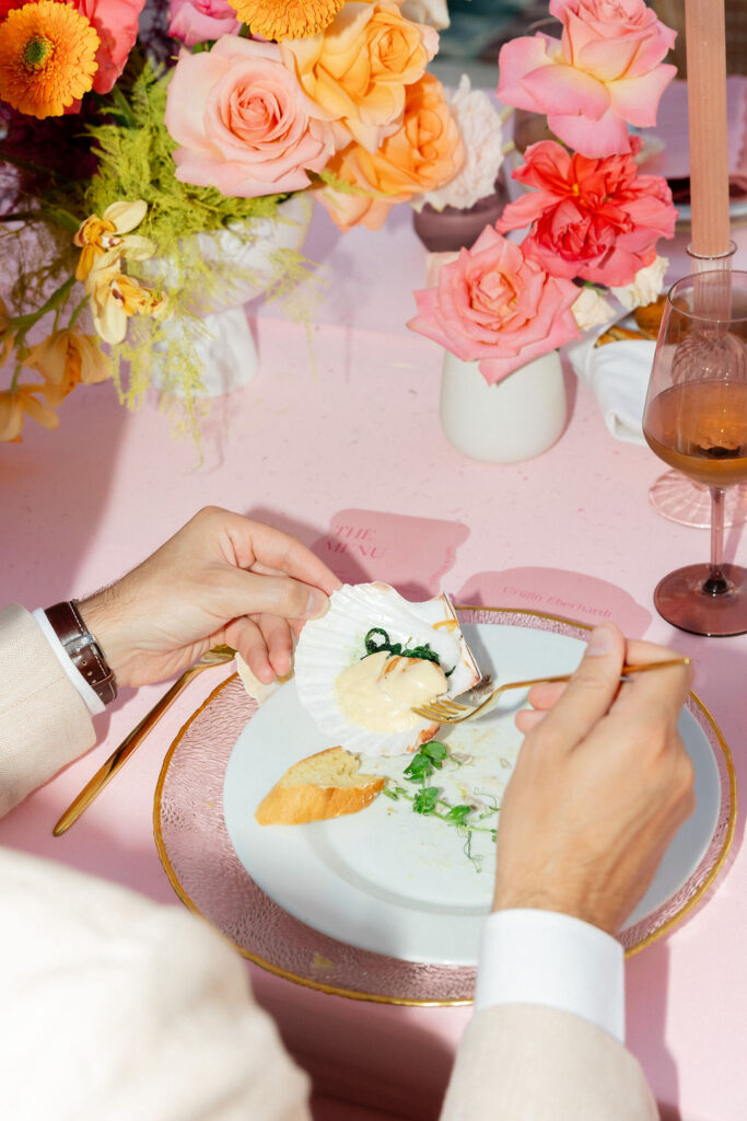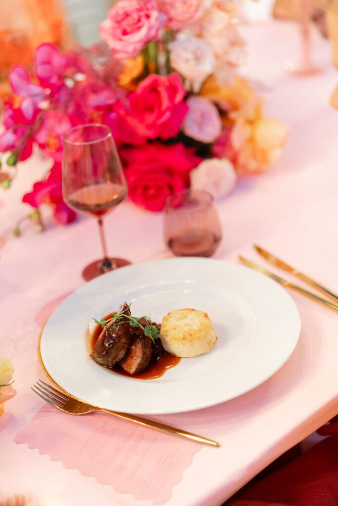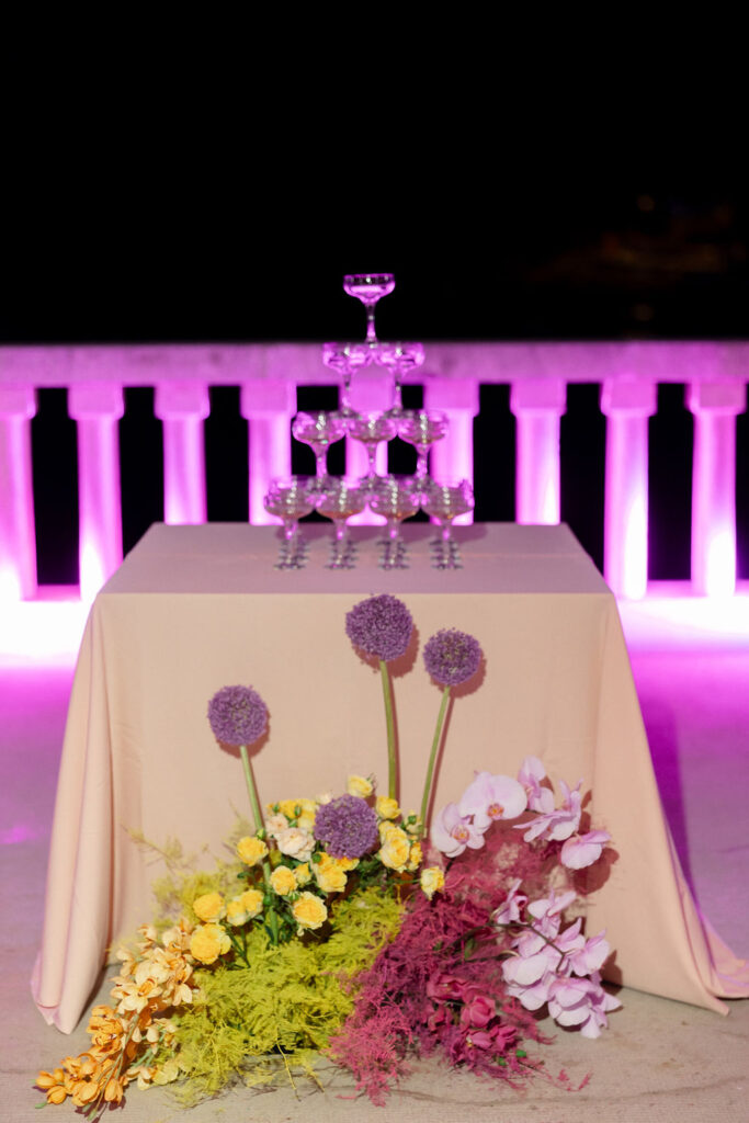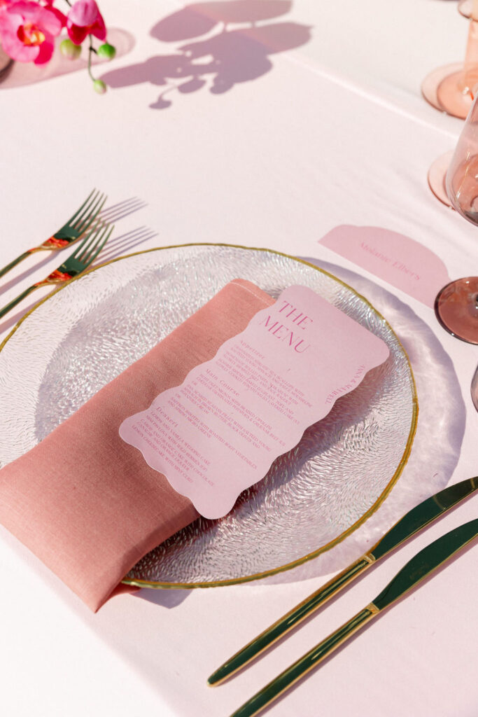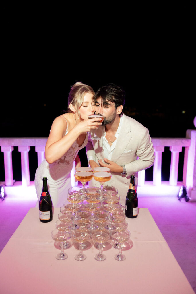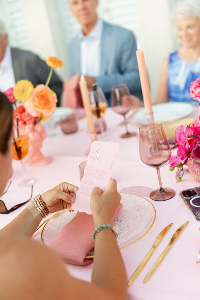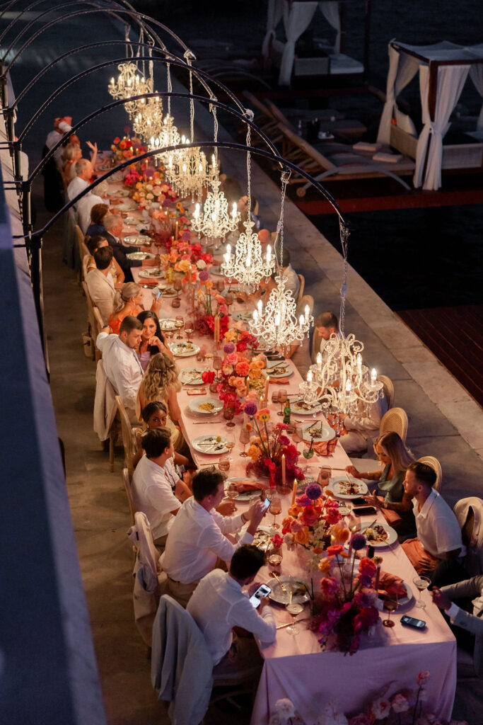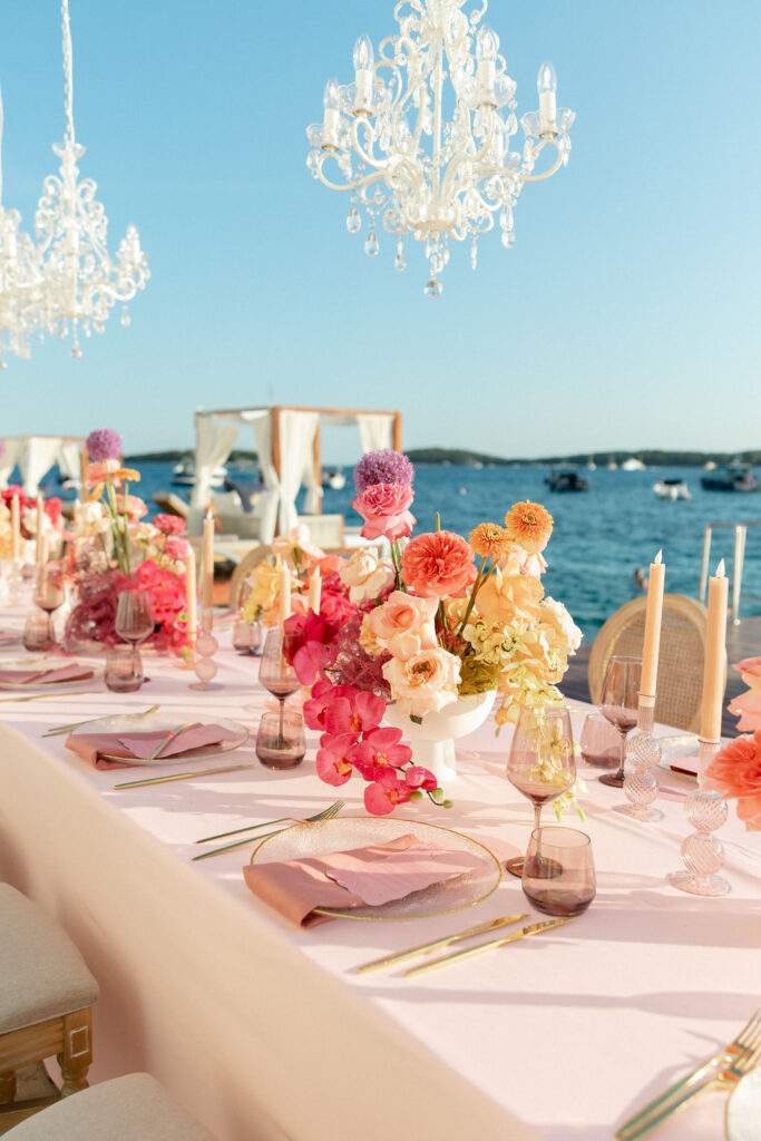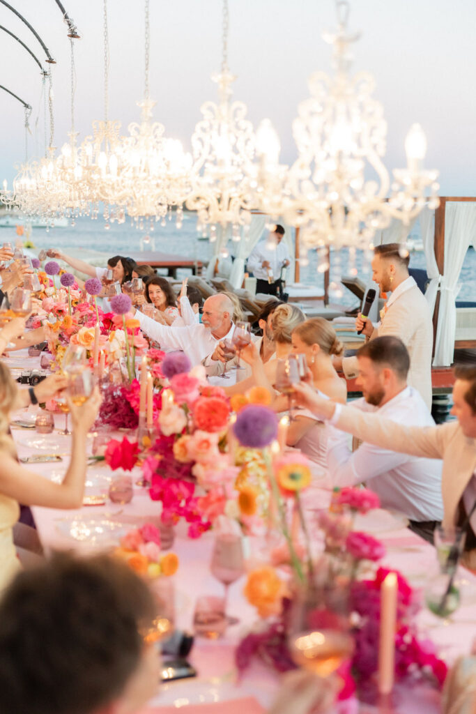 The pink theme was woven throughout—from the intricately designed floral centerpieces to the personalized menus. Each element reflected Anna and Max’s vision, creating an atmosphere that felt both glamorous and inviting. Dinner was a culinary delight, featuring local Croatian flavors with a modern twist. Guests savored their meals as the gentle sound of waves provided a soothing soundtrack to an unforgettable evening.