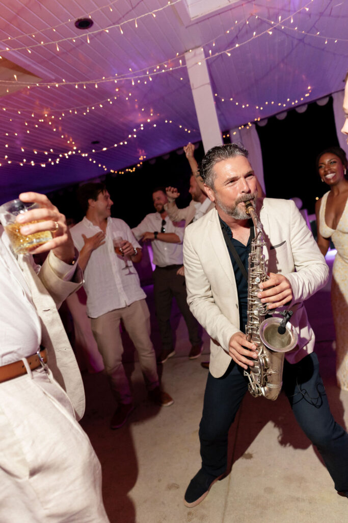 No wedding is complete without an epic party, and Anna and Max’s celebration did not disappoint. The highlight of the evening was a lively saxophonist who brought guests to their feet with infectious energy. Under a starlit sky, the dance floor became the heart of the celebration, with laughter and music filling the air.