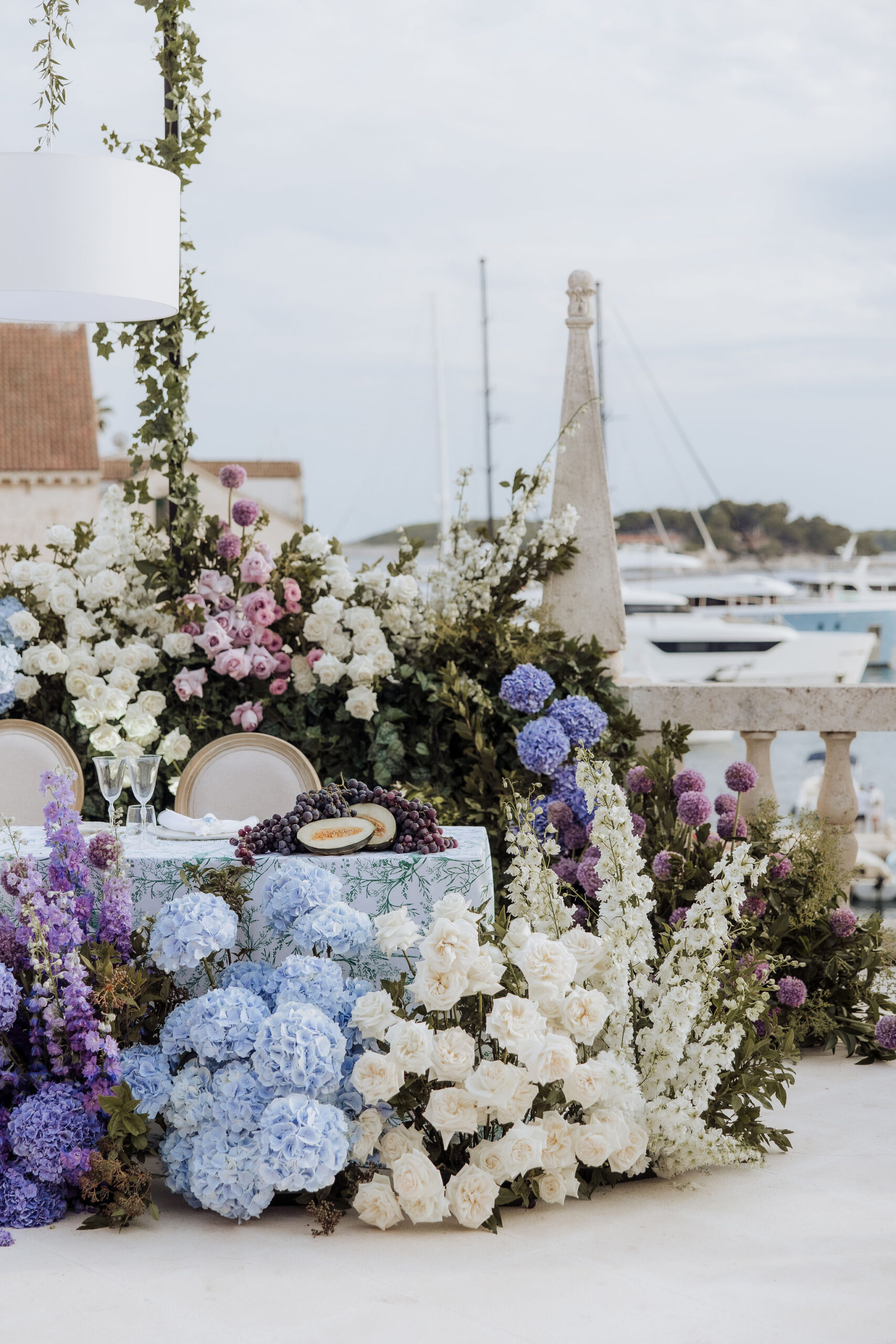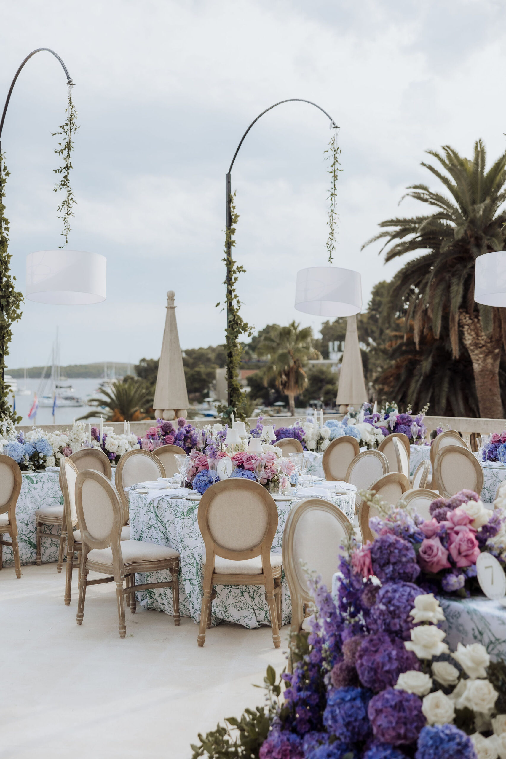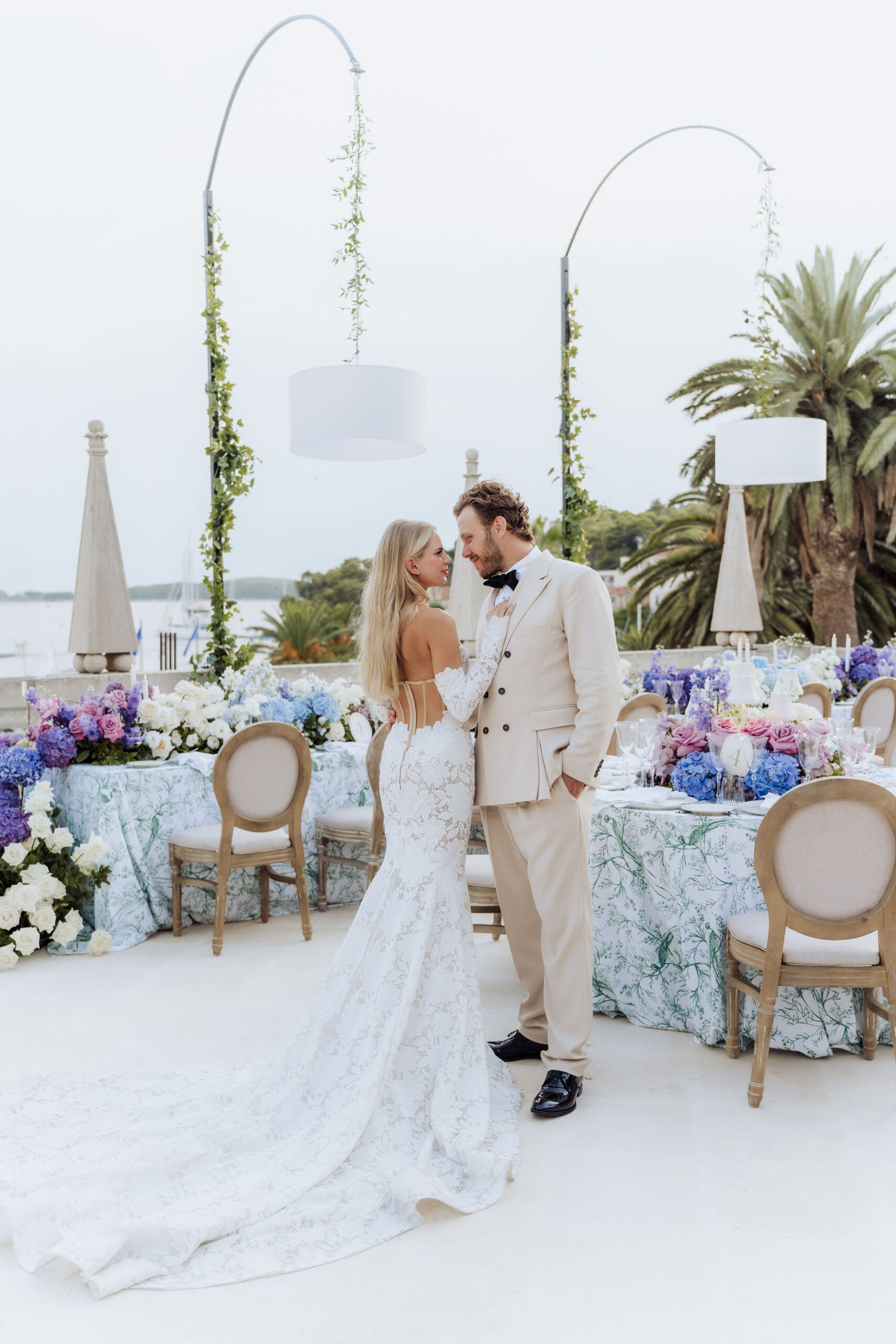 As rain gently fell over Hvar, the celebration seamlessly transitioned indoors — turning what could have been a challenge into one of the most memorable elements of the day. Soft lighting, romantic florals, and thoughtfully designed spaces transformed the hotel’s interiors into an intimate sanctuary. The rain outside only heightened the romance within, adding a cinematic quality that made every moment feel even more special.