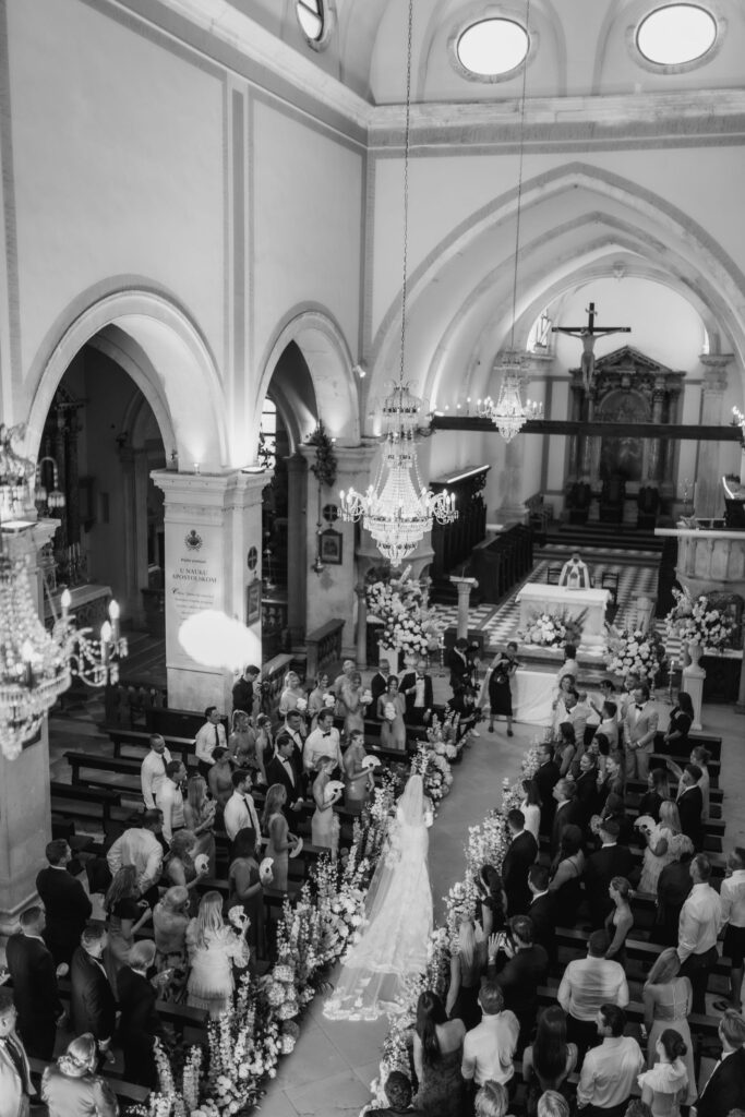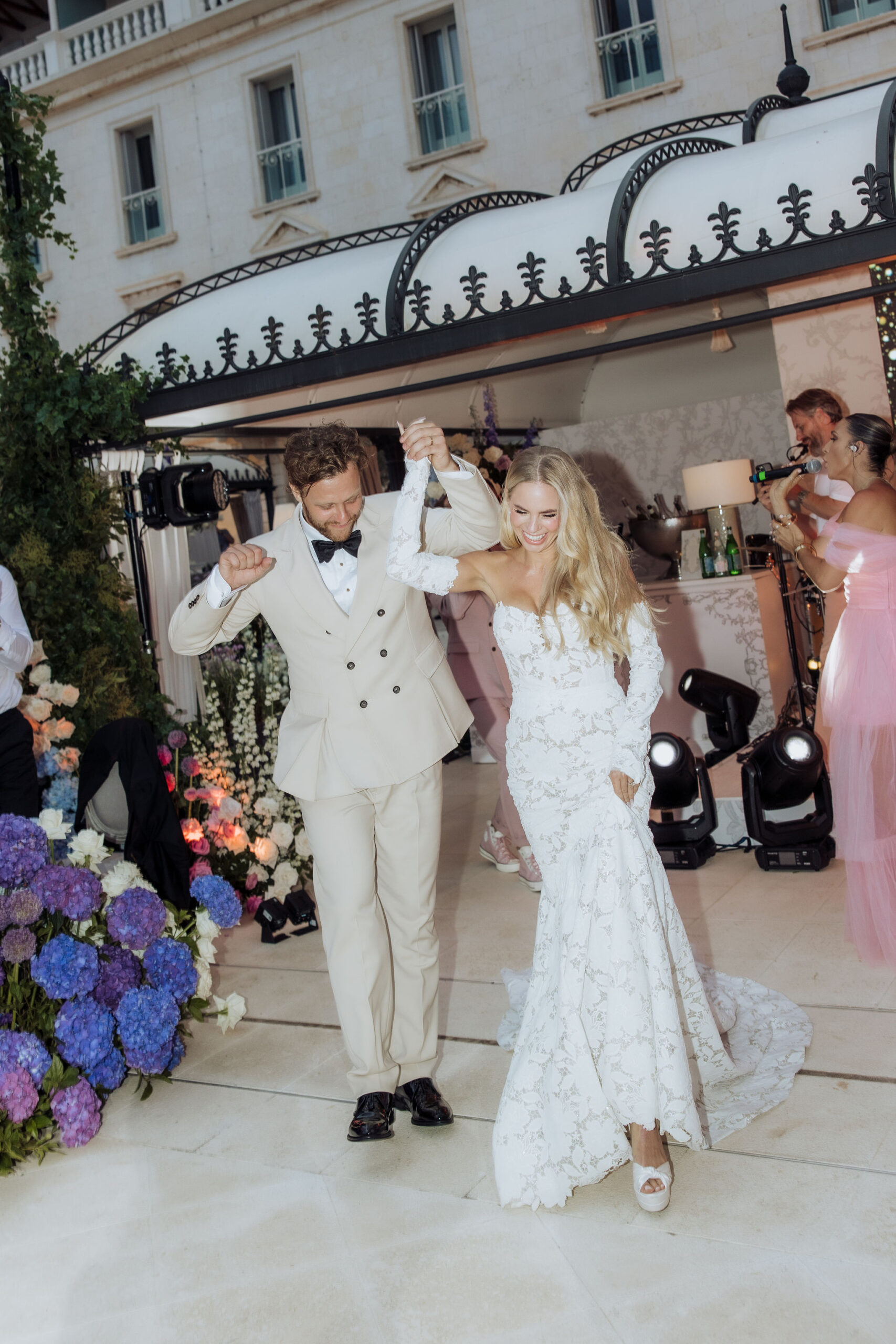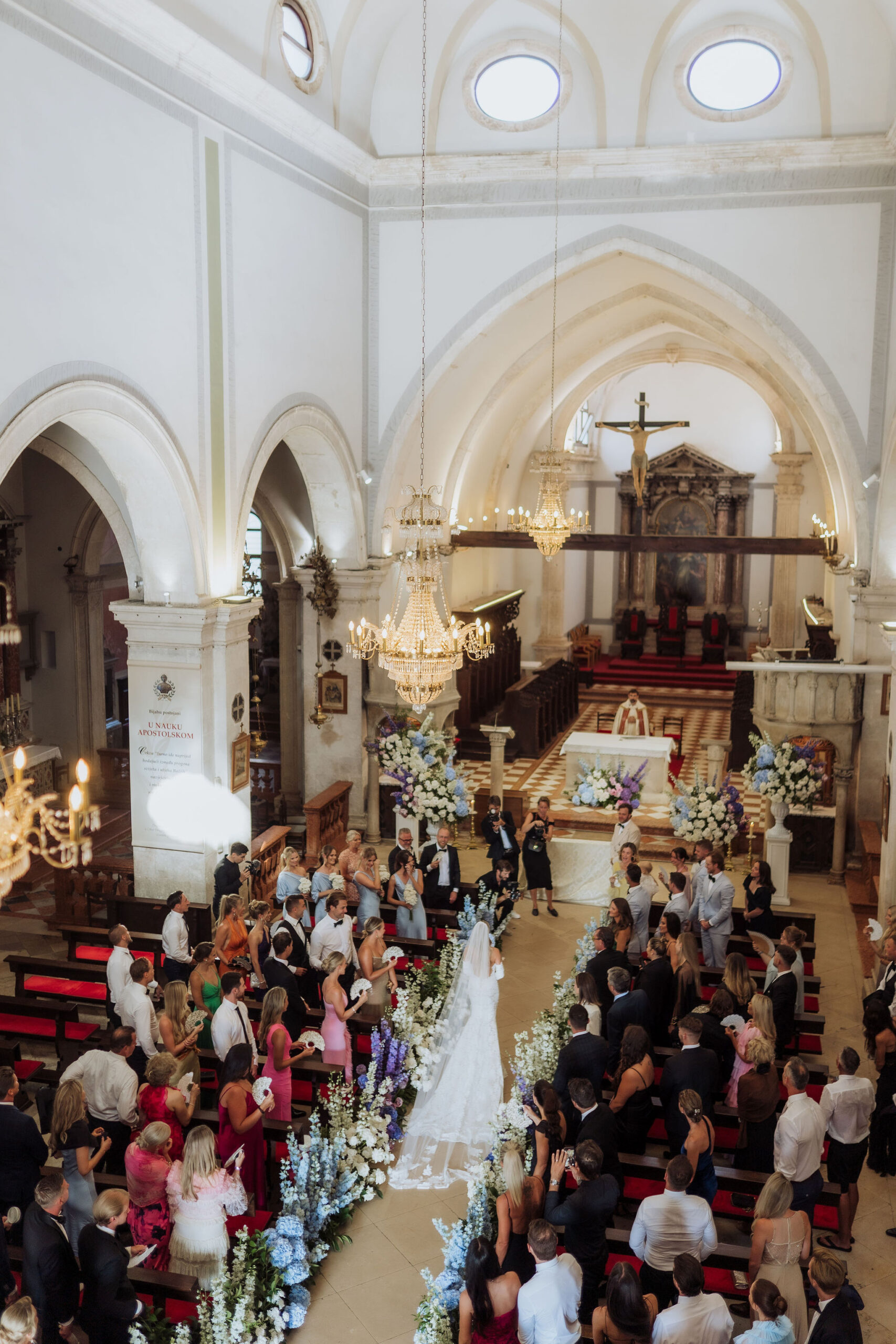 As rain gently fell over Hvar, the celebration seamlessly transitioned indoors — turning what could have been a challenge into one of the most memorable elements of the day. Soft lighting, romantic florals, and thoughtfully designed spaces transformed the hotel’s interiors into an intimate sanctuary. The rain outside only heightened the romance within, adding a cinematic quality that made every moment feel even more special.
