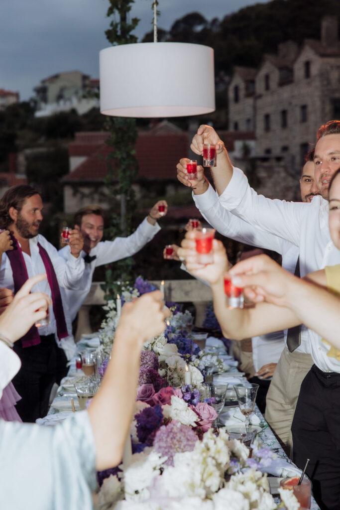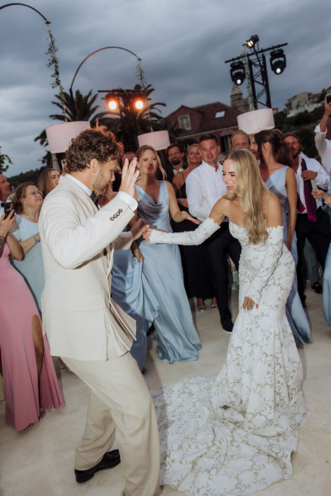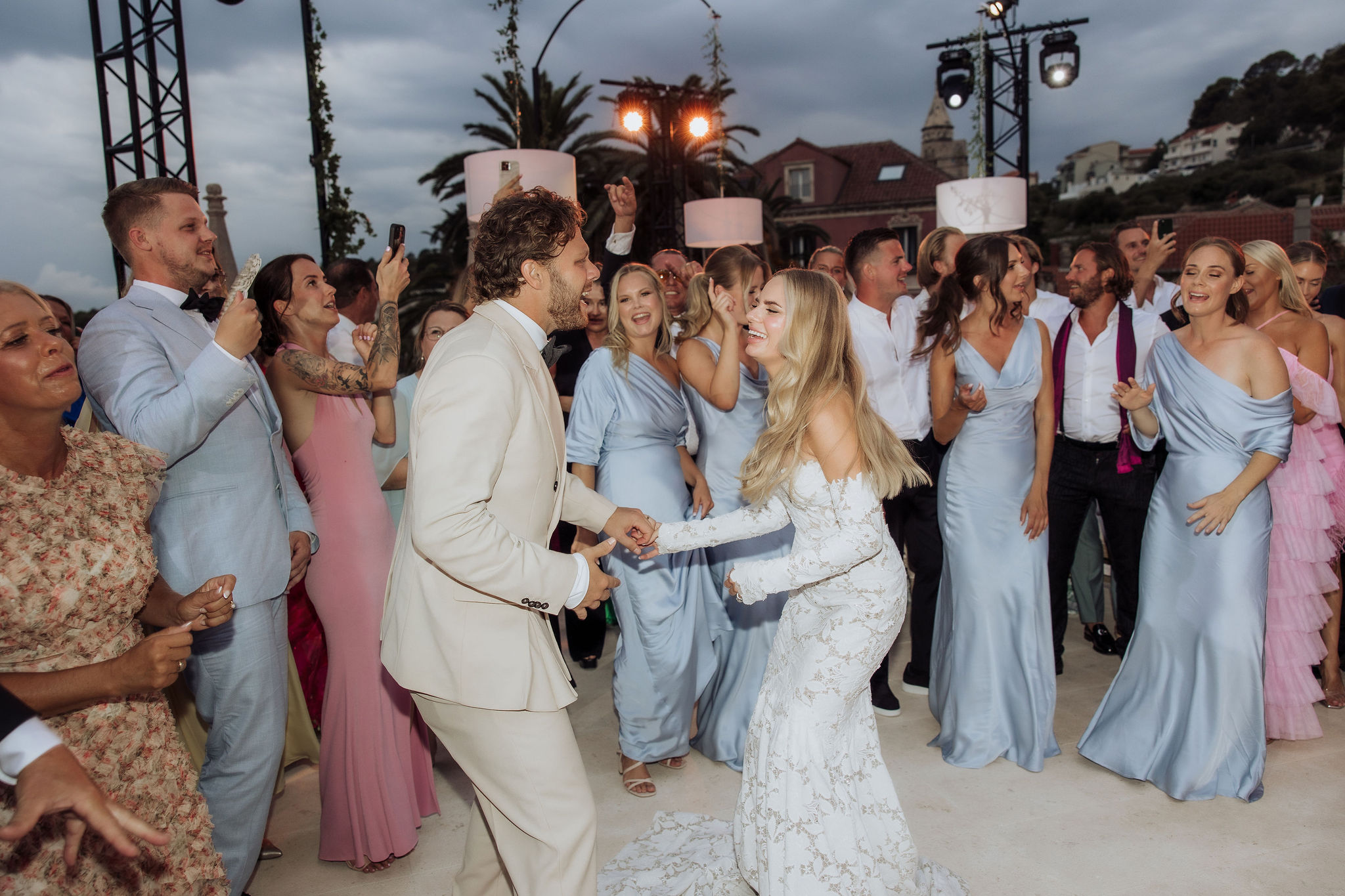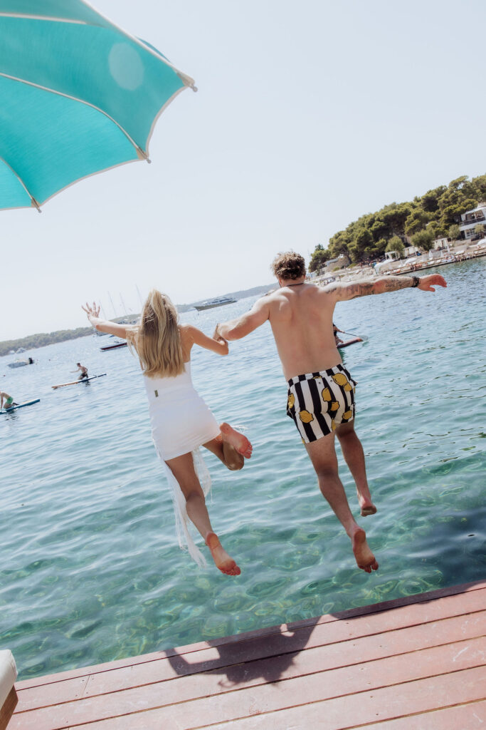 The celebrations concluded with a relaxed and joyful day at Beach Club Hvar, where guests gathered to unwind by the sea. Sun-drenched moments, refreshing cocktails, and carefree energy defined the final chapter of the wedding weekend. As the afternoon slowly turned into an impromptu beachside party, laughter and music carried the celebration into its final, unforgettable moments.