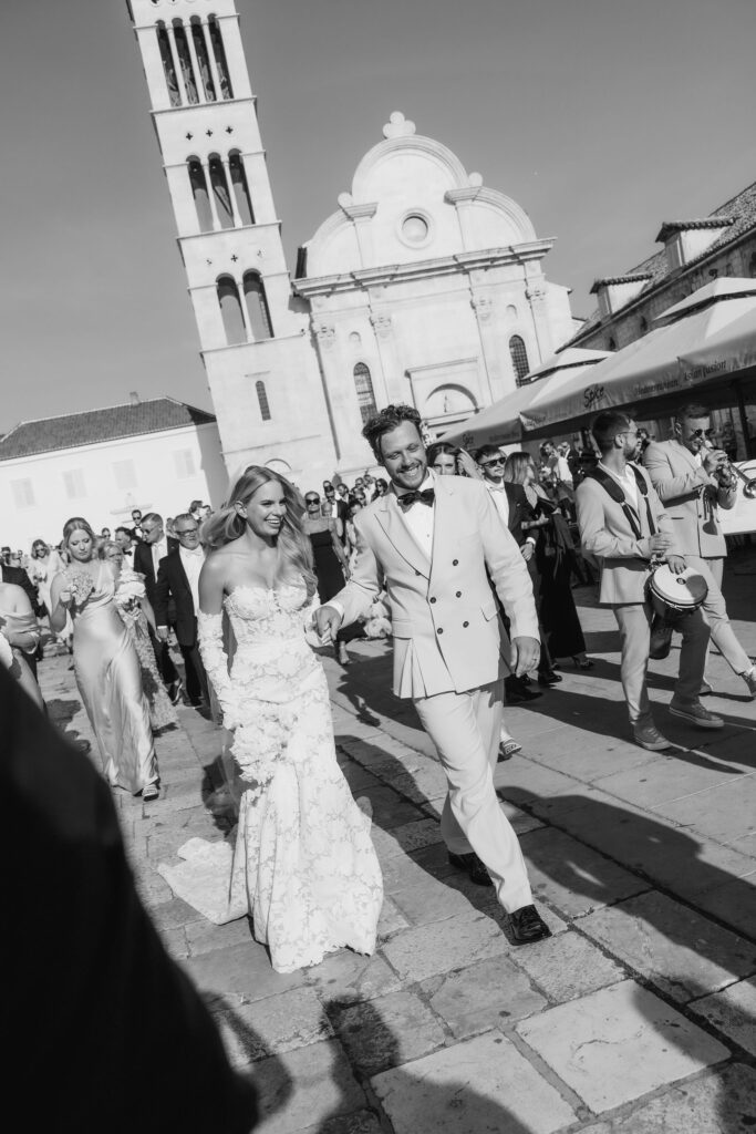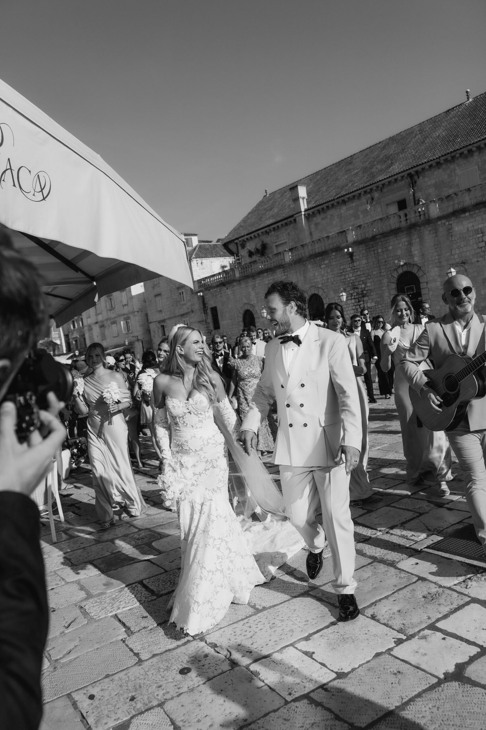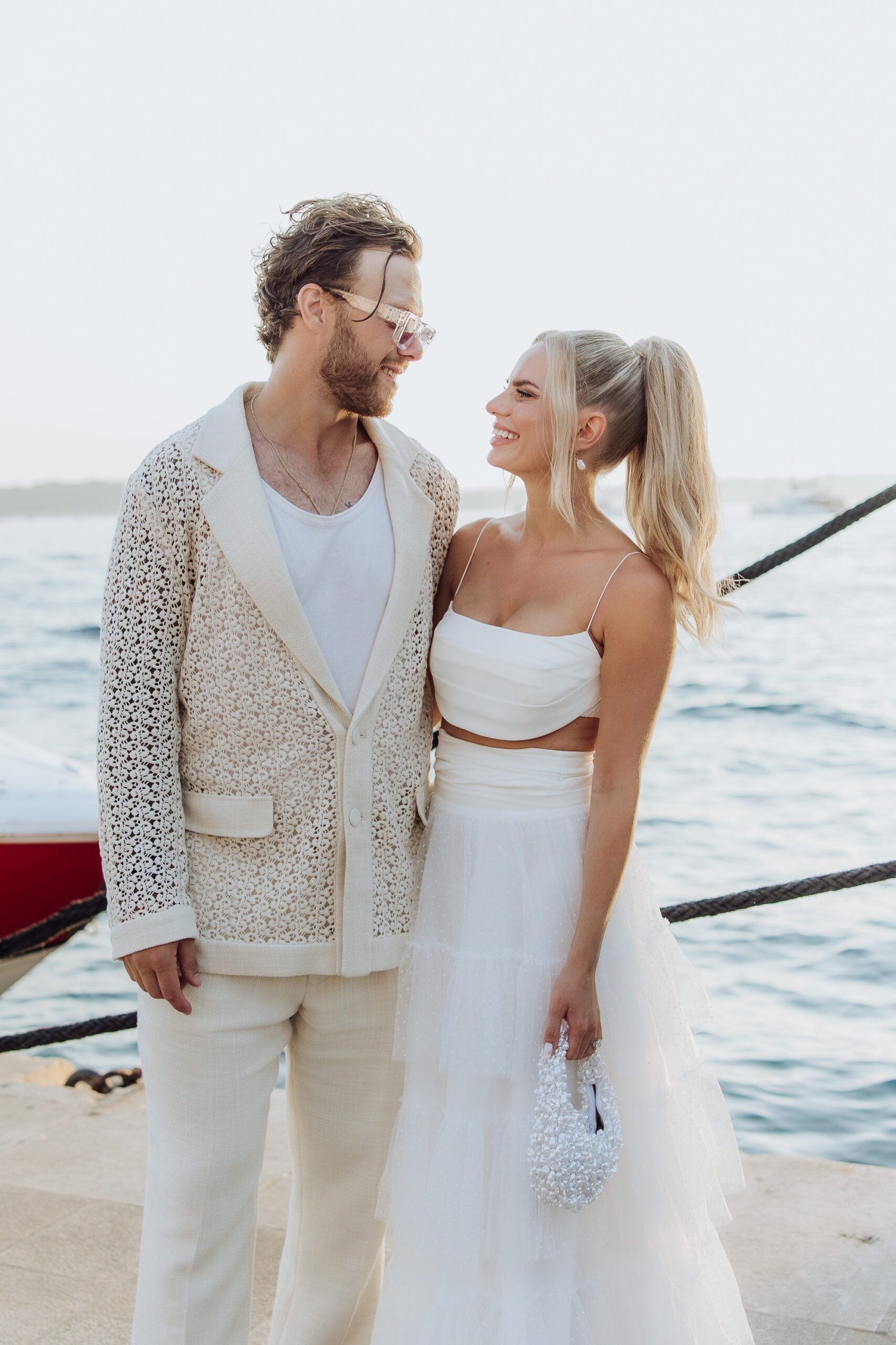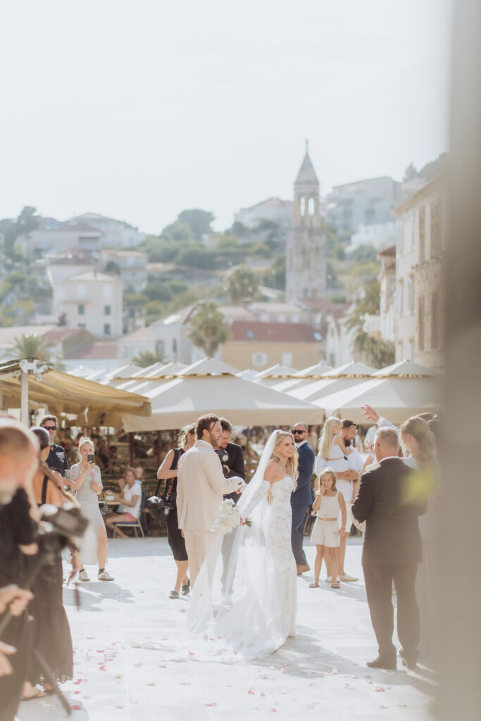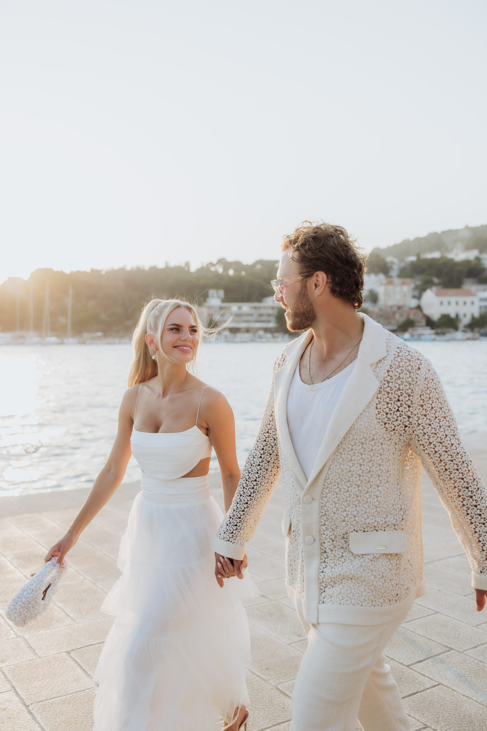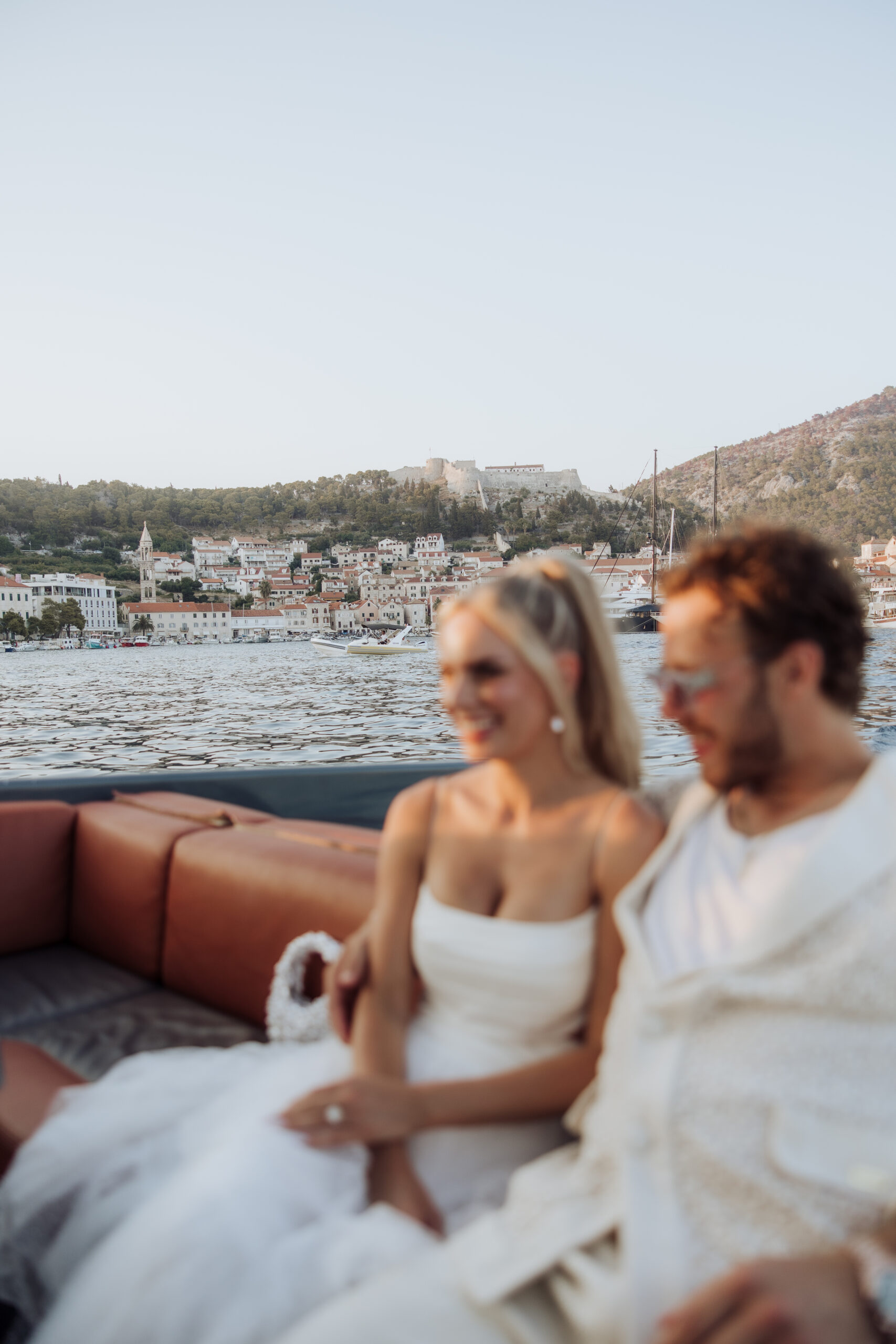 Rebecca and David’s wedding unfolded as a beautifully curated weekend in Hvar. A celebration shaped by emotion, atmosphere, and meaningful moments shared across some of the island’s most iconic settings. From sunset boat rides to rain-kissed vows and a carefree beachside finale, each chapter added depth to a story that felt effortless, intimate, and deeply personal.