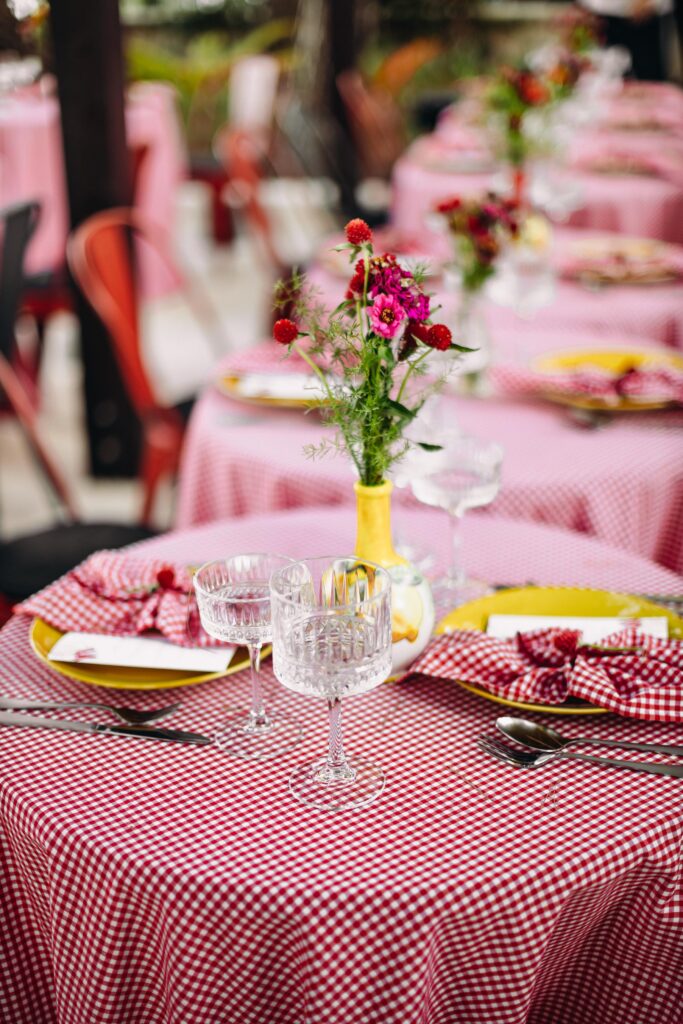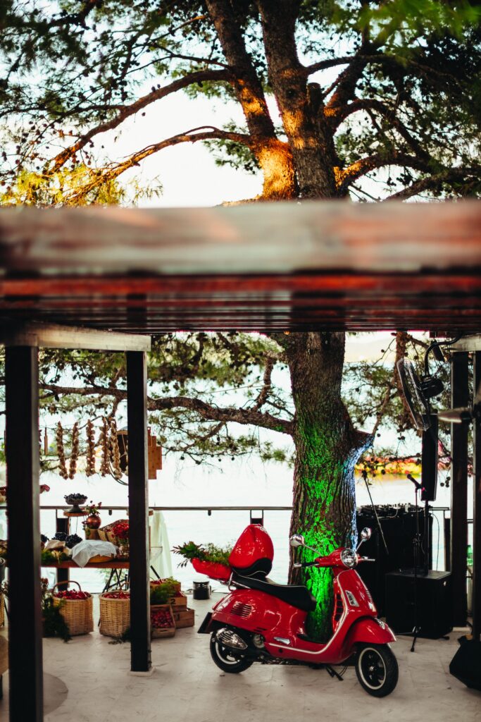 As guests arrived, they were immediately greeted by a vibrant red-themed atmosphere. The red checkered tablecloths added a vintage touch, while a classic red Vespa served as a stunning centerpiece. It perfectly complemented the retro aesthetic, making the venue feel like a trip back in time. Located on a private property, the venue exuded an intimate and exclusive vibe. It was the ideal backdrop for a night of timeless celebration.