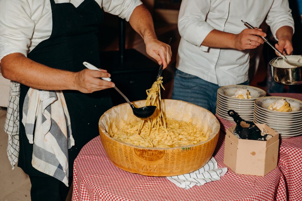 The evening began with a relaxed dinner. Guests were treated to a live pasta chef who skillfully crafted delicious pasta dishes. The aroma of melting cheese filled the air as guests enjoyed every bite. The retro-inspired feast was nothing short of decadent.