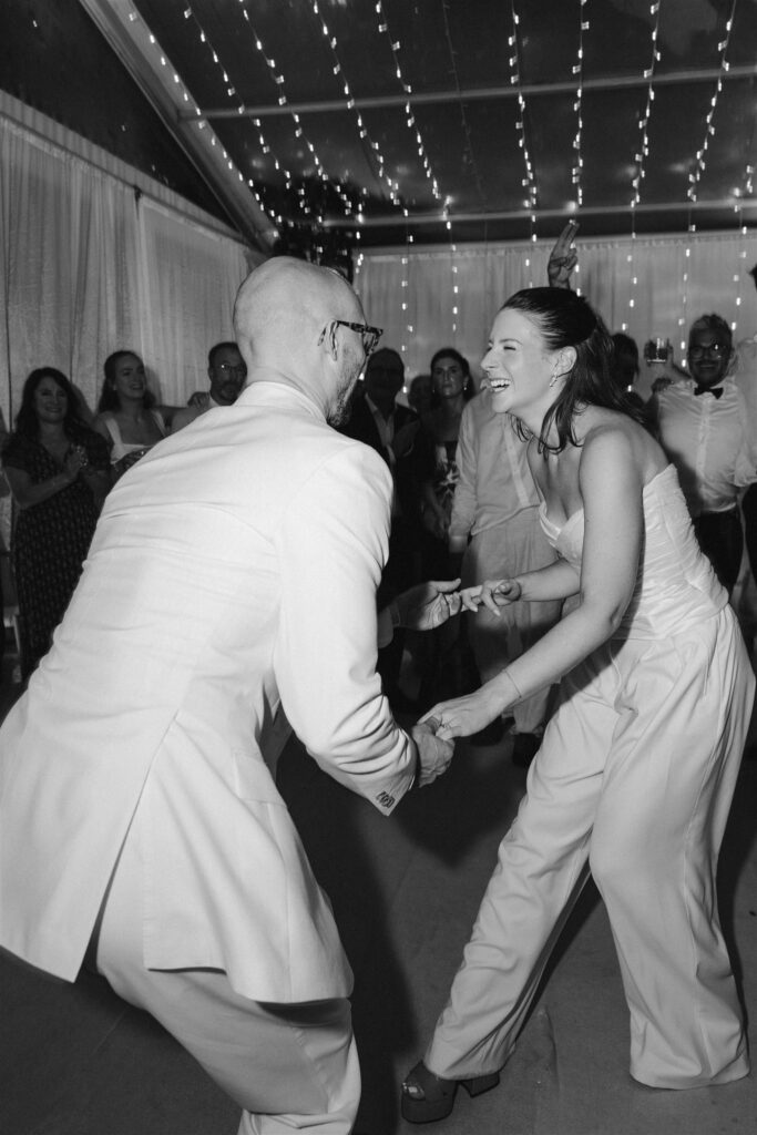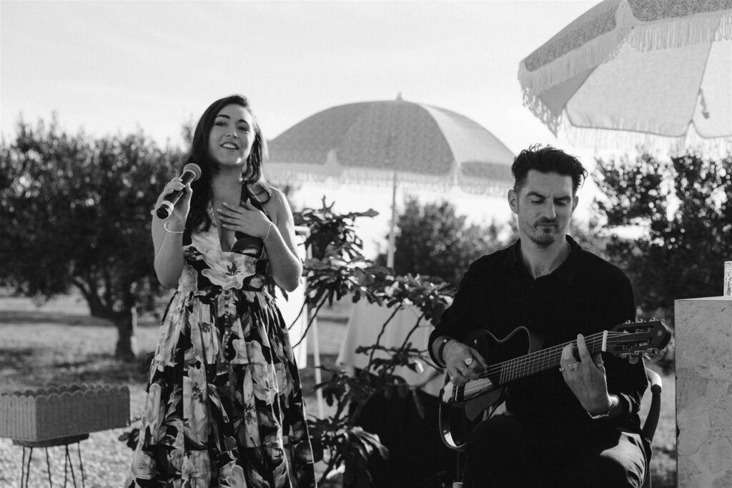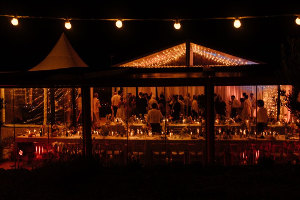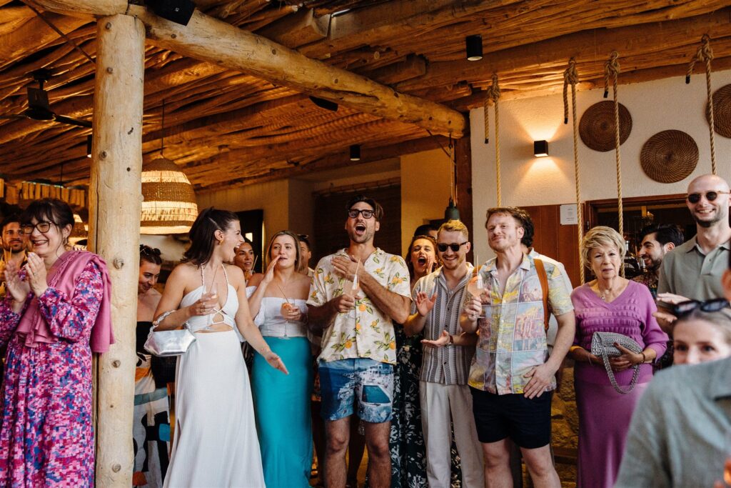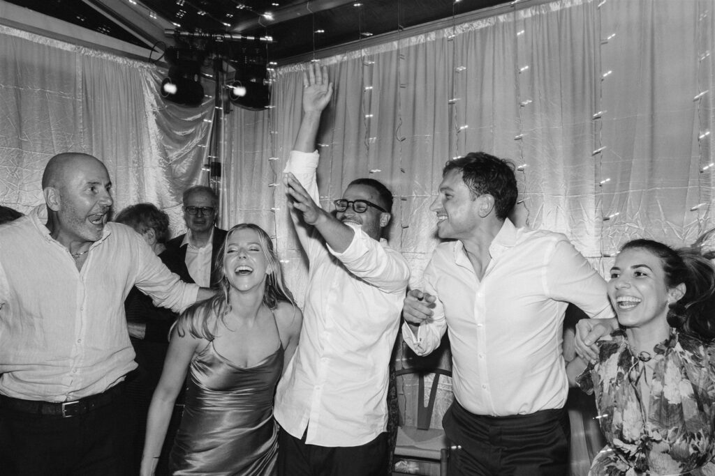 The festivities began with a stylish welcome reception at Notos Beach. Guests arrived by private boats, which immediately set the tone for an unforgettable experience. Meanwhile, as the sun dipped below the horizon, hues of orange and pink reflected across the Adriatic waters. This perfectly matched the wedding’s elegant color palette. In addition, a live band flown in from the UK created a magical ambiance.