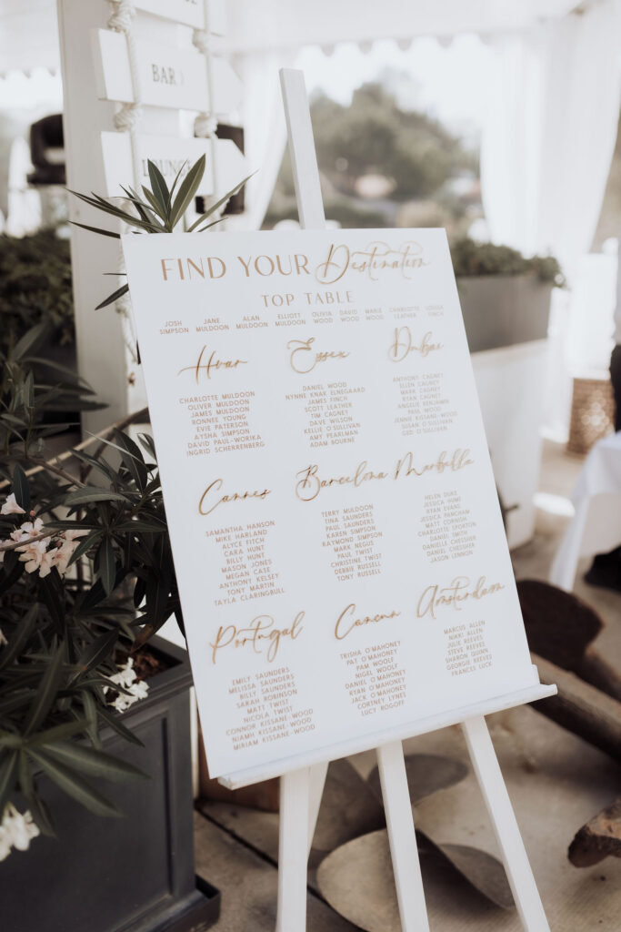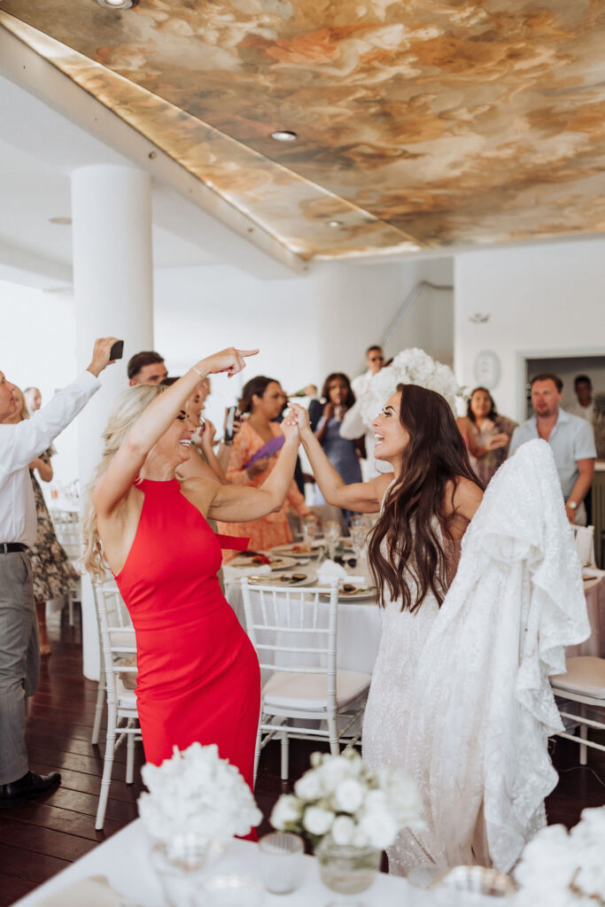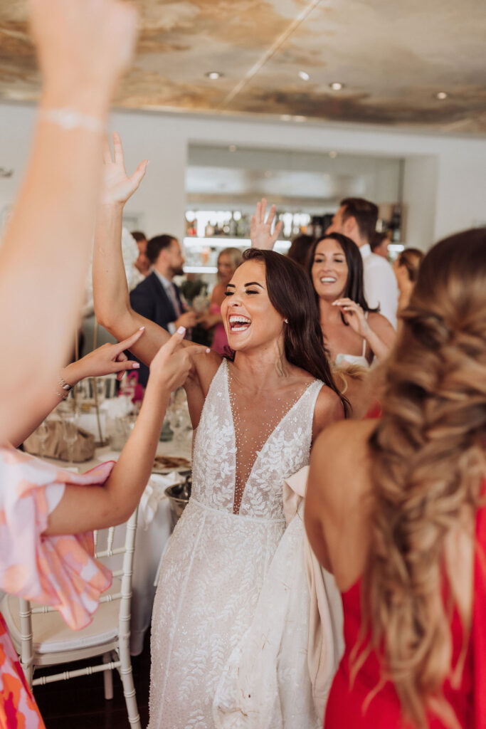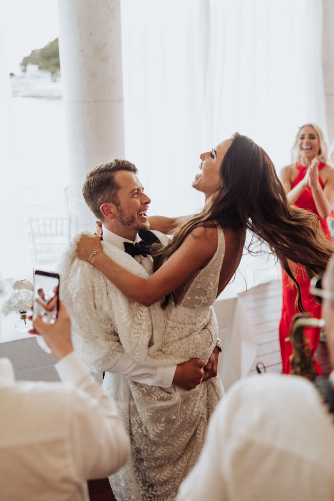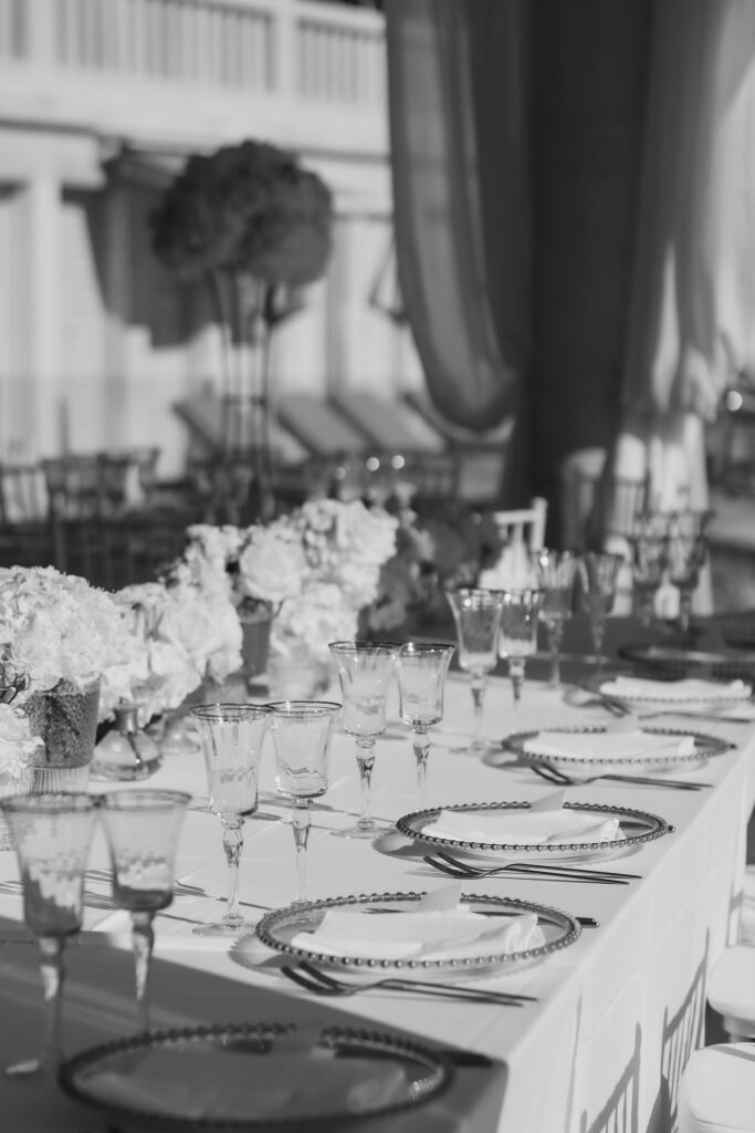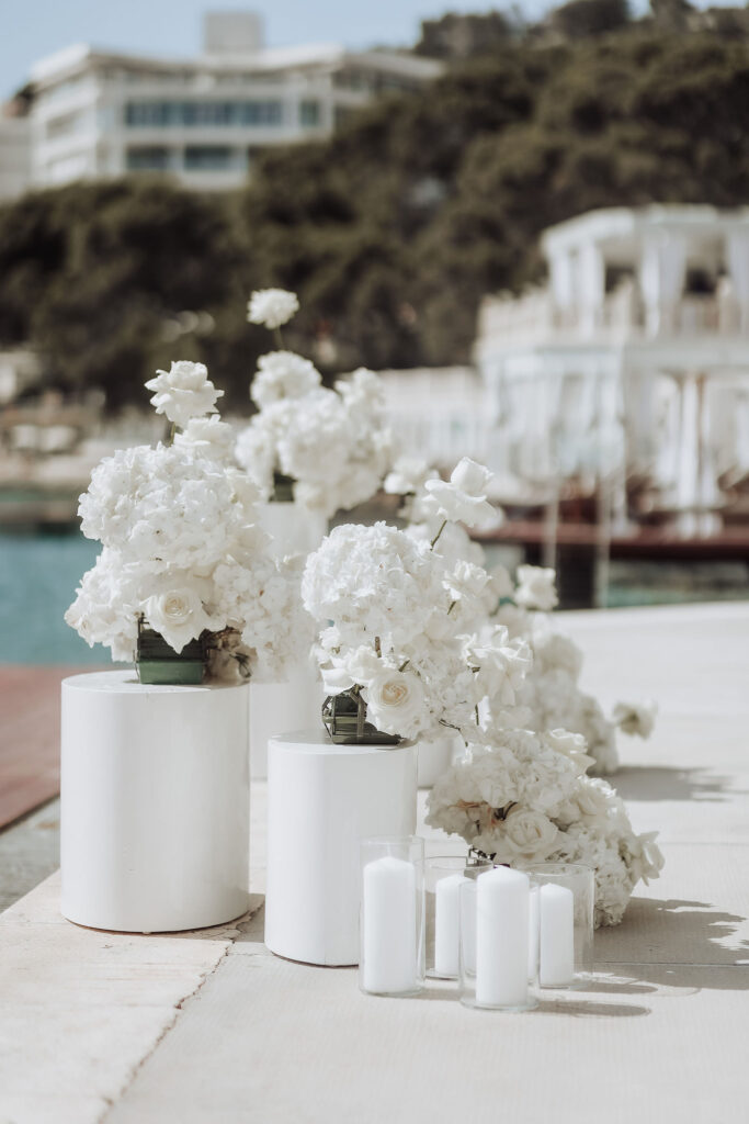 Since Olivia and Elliott desired a blend of traditional elegance and authenticity, we used white and neutral colors throughout. All tables featured sophisticated white linens with floral arrangements as centerpieces. As their event planner in Croatia, we went above and beyond to make their wedding unique and unforgettable.