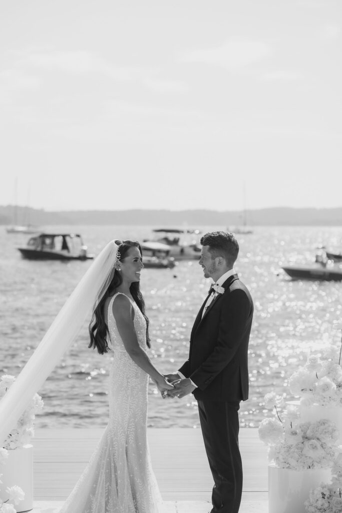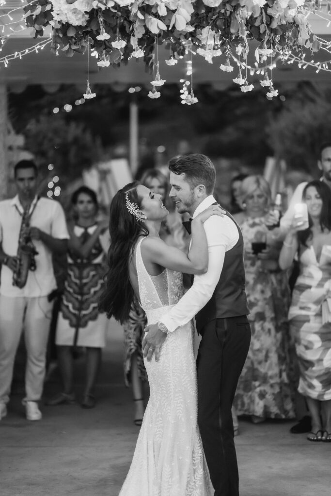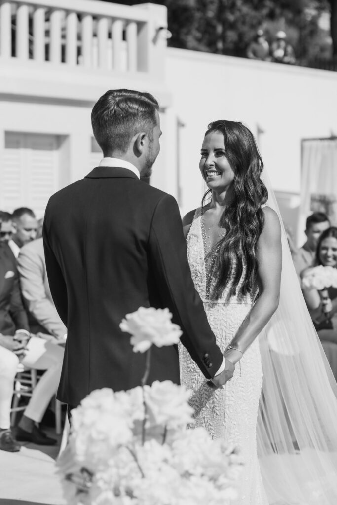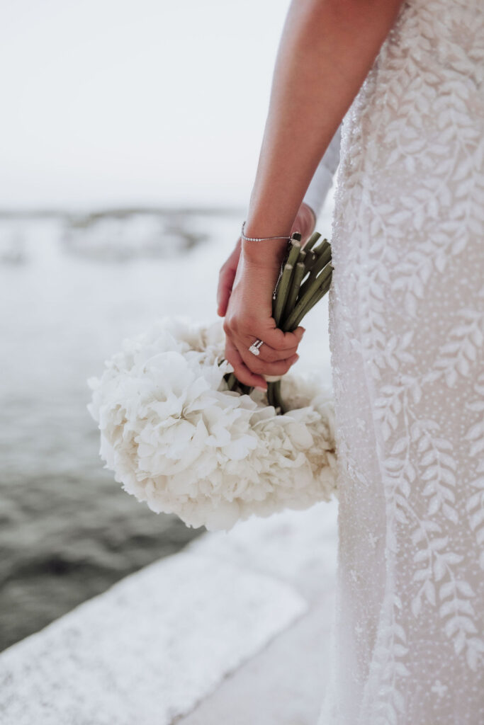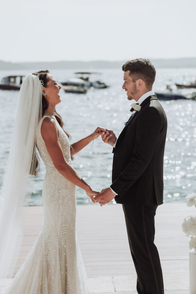 The couple chose Beach Club Hvar because it matched their vision of an opulent and timeless wedding. Olivia and Elliott exchanged their vows with a breathtaking view at their side. The azure tones of the sea created a stunning backdrop for such an emotional occasion. The combination of the sea and the white décor was simply perfect. Their focus was on simplicity and elegance, and they made the right choice with this venue.
