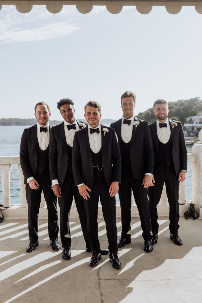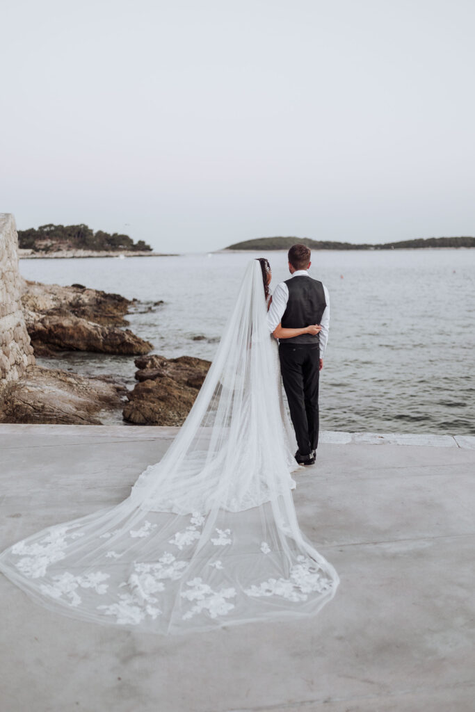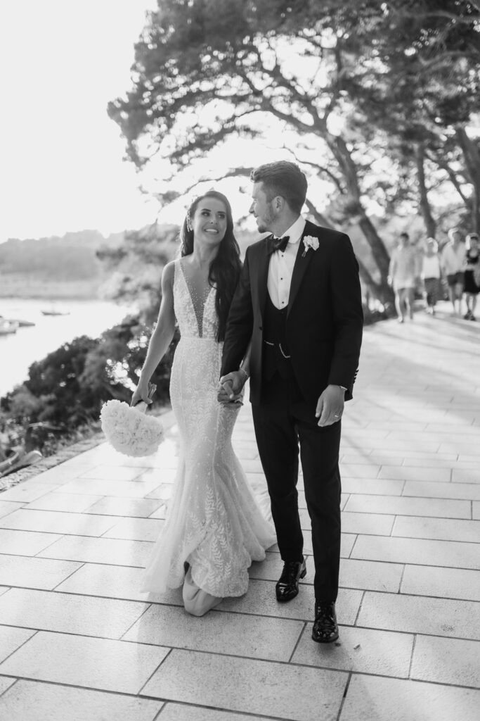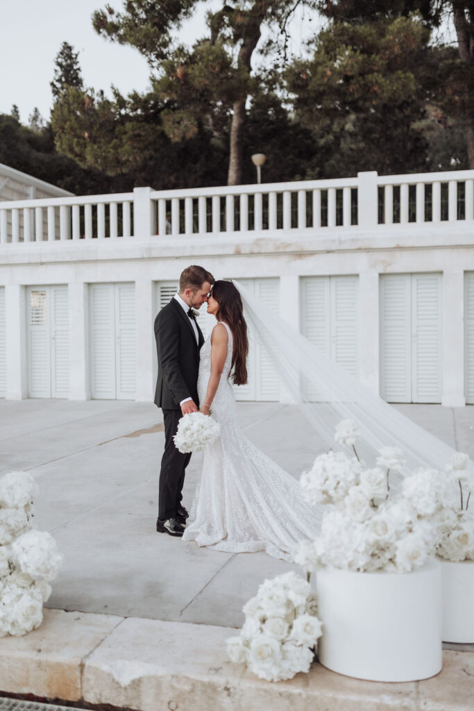 For the big day, Olivia wore a magnificent white gown with embroidered details and a long, flowing train. Undoubtedly, her dress gave her that effortless look every bride dreams of! Meanwhile, Elliott, on the other hand, wore a black tuxedo that perfectly matched the stylish and sophisticated ambiance of one of Croatia's best luxury venues.