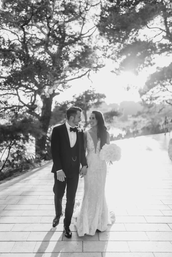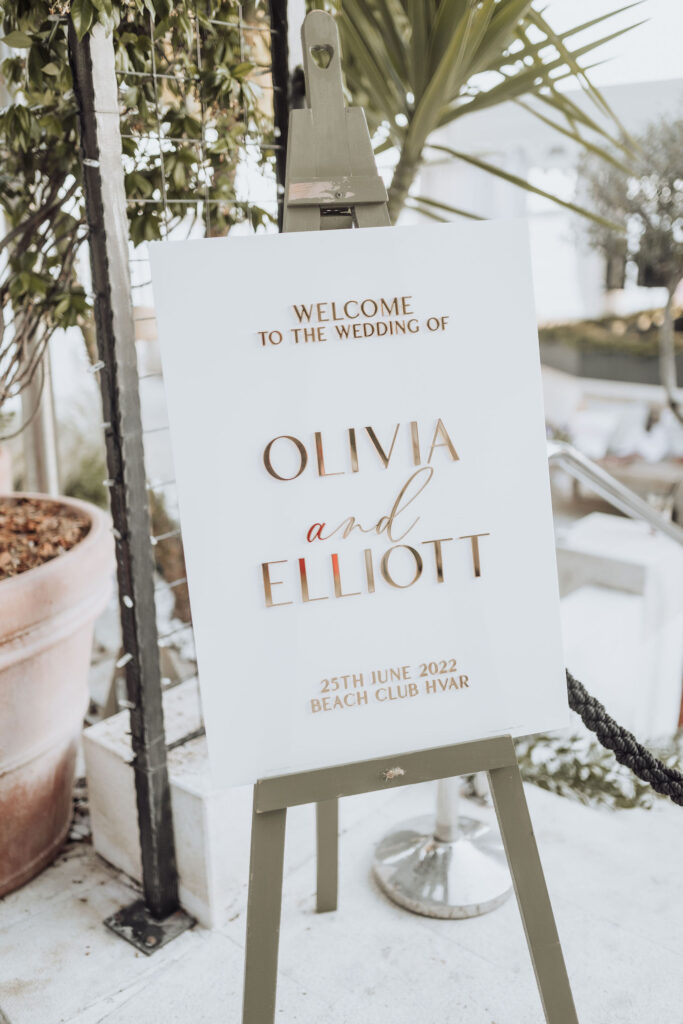 If you need inspiration for a sophisticated, timeless wedding, you've come to the right place. This event will give you all the ideas you need. As their event planner in Croatia, we can say that Olivia and Elliott took elegant traditional unions to the next level. Moreover, this gorgeous couple decided to have a glamorous nuptial at Beach Club Hvar, starting their love story in a refined manner.
