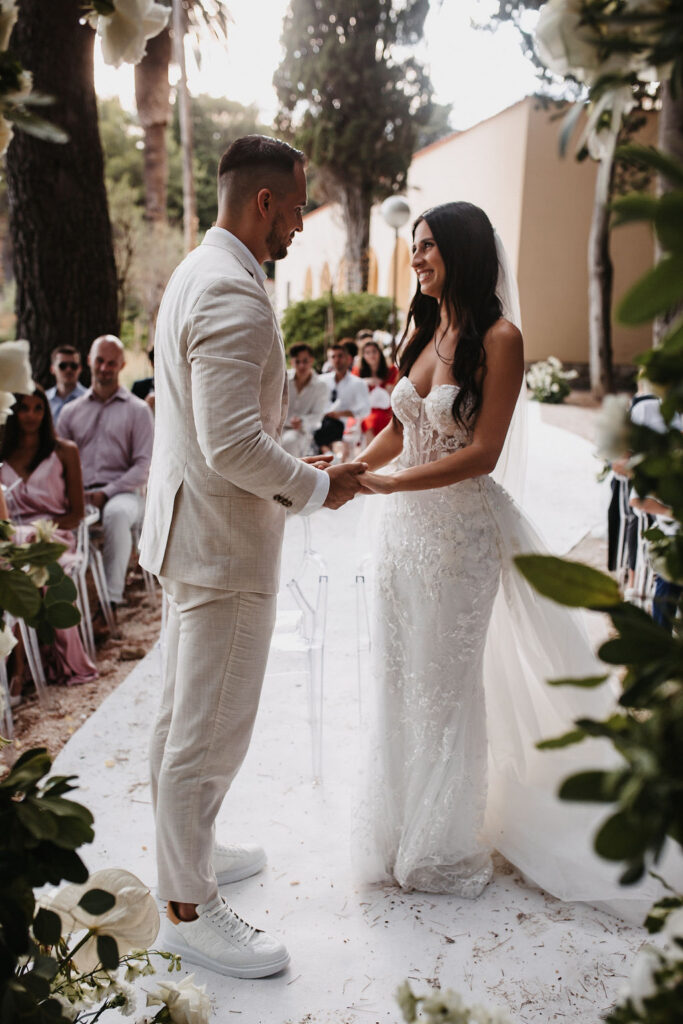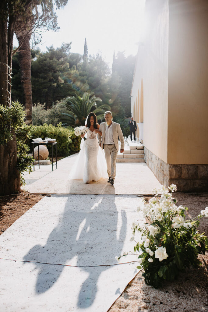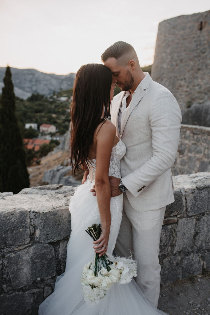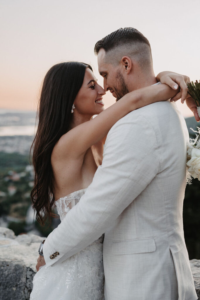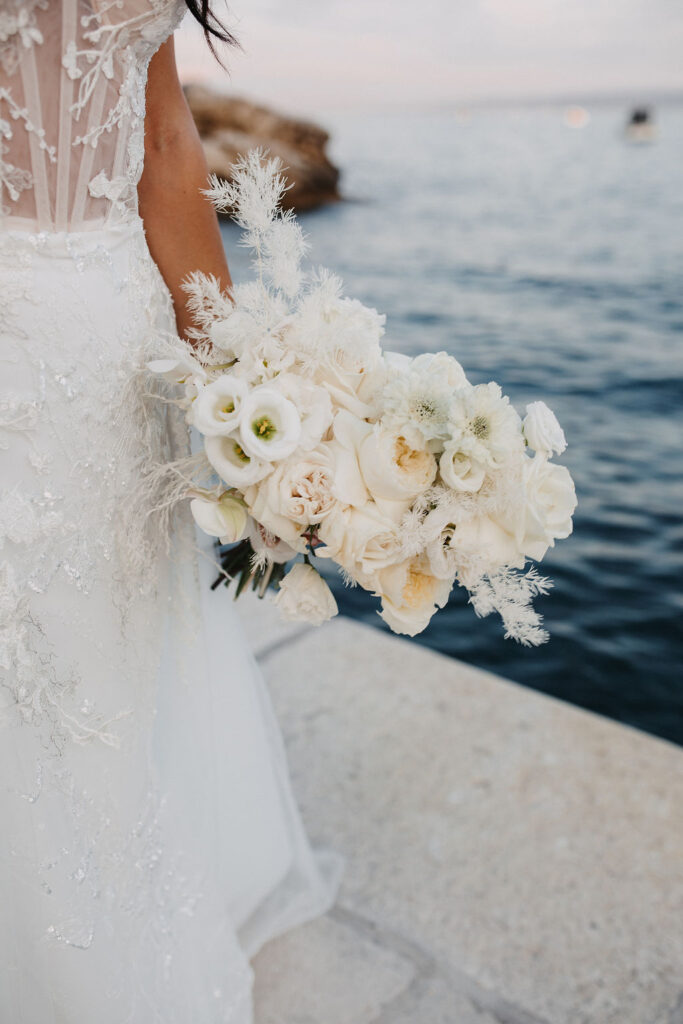However, what made this nuptial stand out from other Split weddings in Croatia was the amazing decor. The floral arrangements blended seamlessly with the natural surroundings, so the whole setting of the ceremony was romantic and dreamy. We can easily compare Romana and Luca’s celebration to one that you might see in a fairytale book or movie!