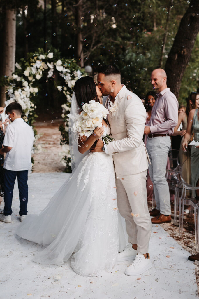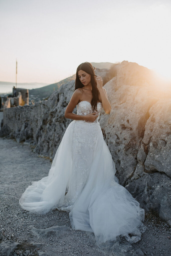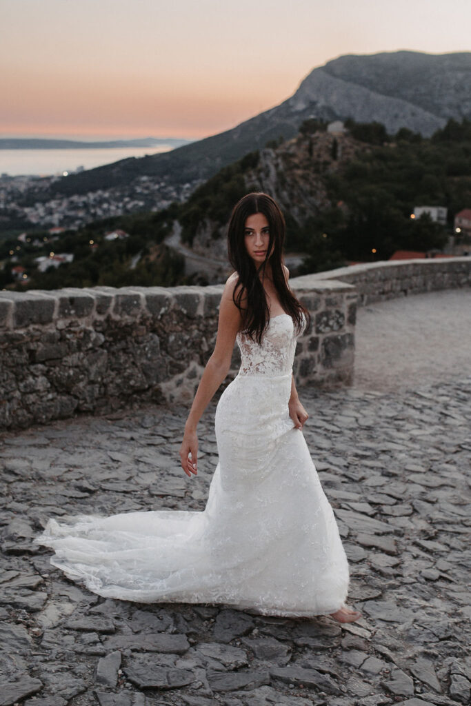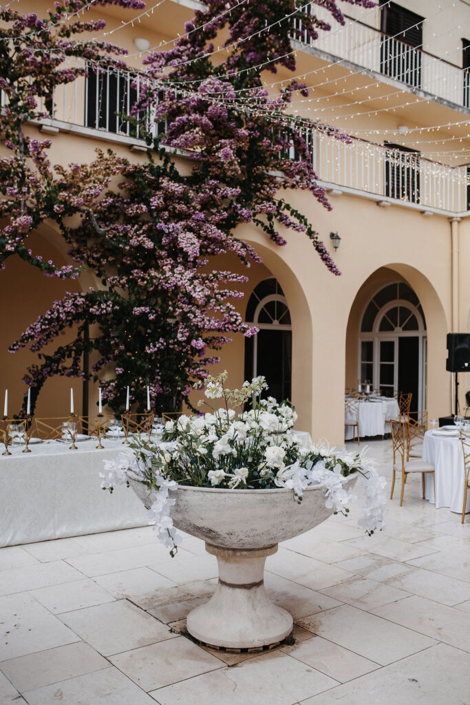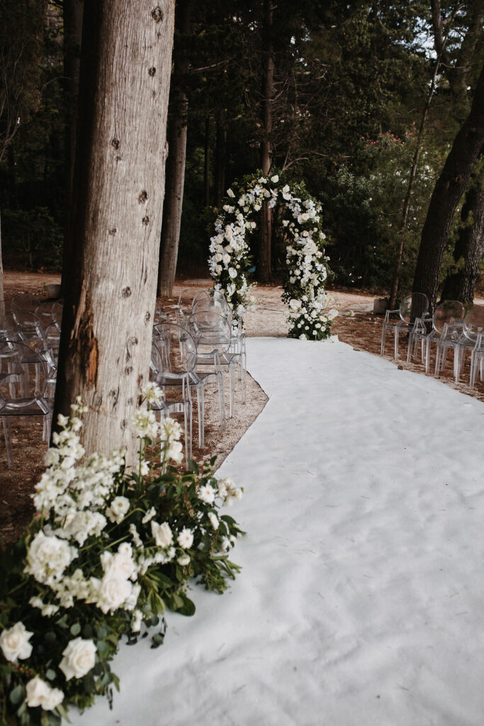 However, what made this nuptial stand out from other Split weddings in Croatia was the amazing decor. The floral arrangements blended seamlessly with the natural surroundings, so the whole setting of the ceremony was romantic and dreamy. We can easily compare Romana and Luca’s celebration to one that you might see in a fairytale book or movie!