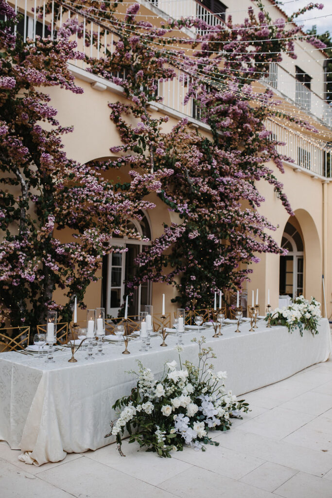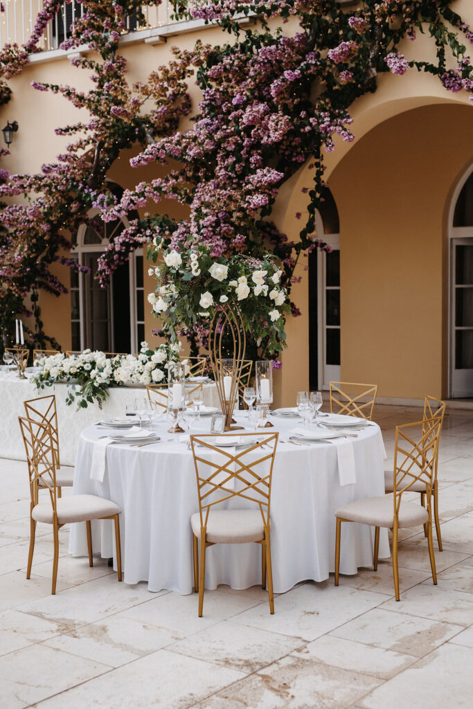 Such timeless decor was included in the reception as well. This event wouldn’t have been as fascinating if there hadn’t been a fresh green and white color palette. The ambiance of Villa Dalmacija’s garden added to the dreamy decor with its scenic views, blooming flowers, and central fountain.