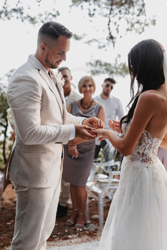 Their ceremony was just breathtaking because the surroundings of Villa Dalmacija were fascinating. They got to say their “I do’s” in the middle of a forest while the sea extended in front of their eyes. As Croatia wedding planners, we don’t often see such astonishing views and so many emotional moments – all in one place.