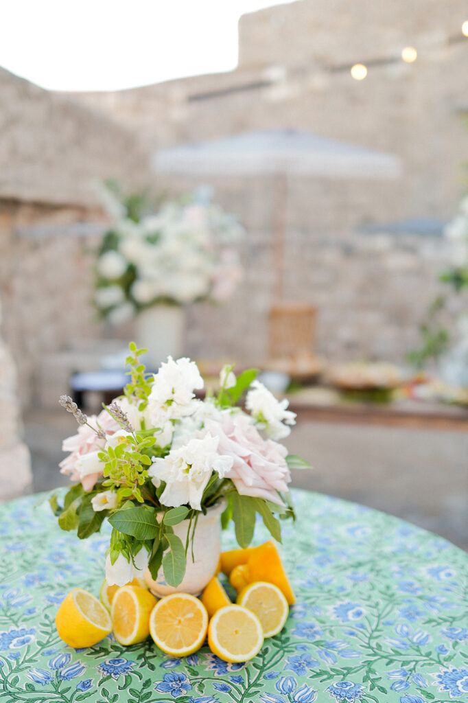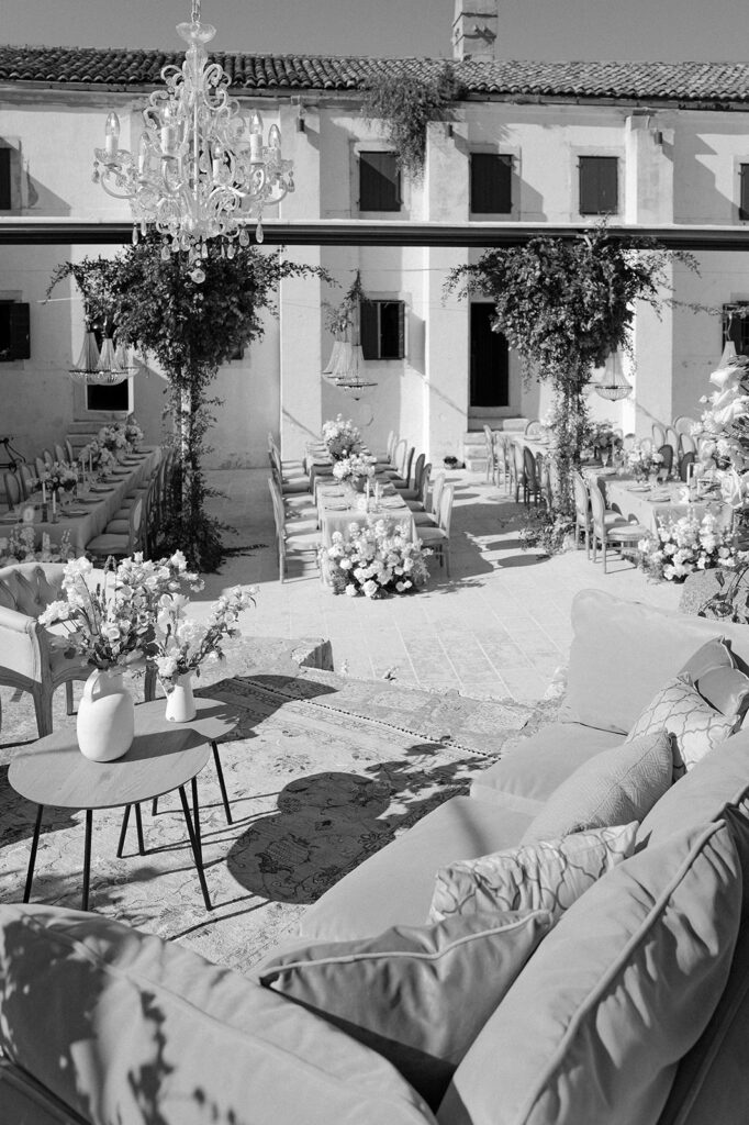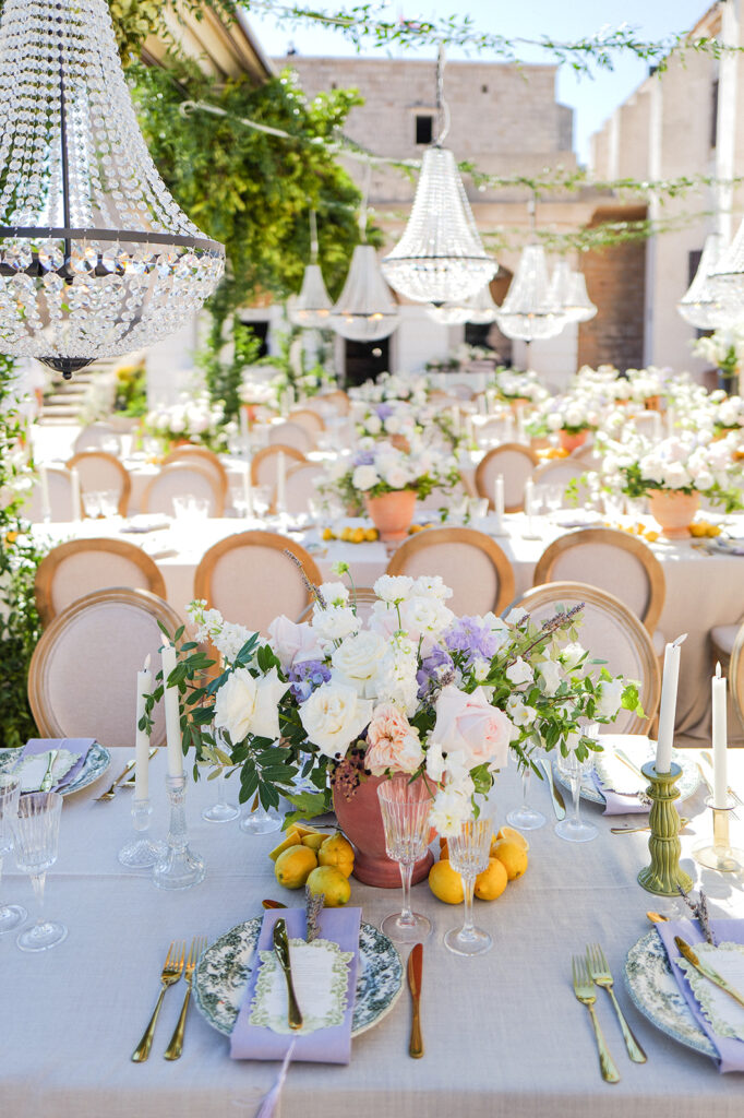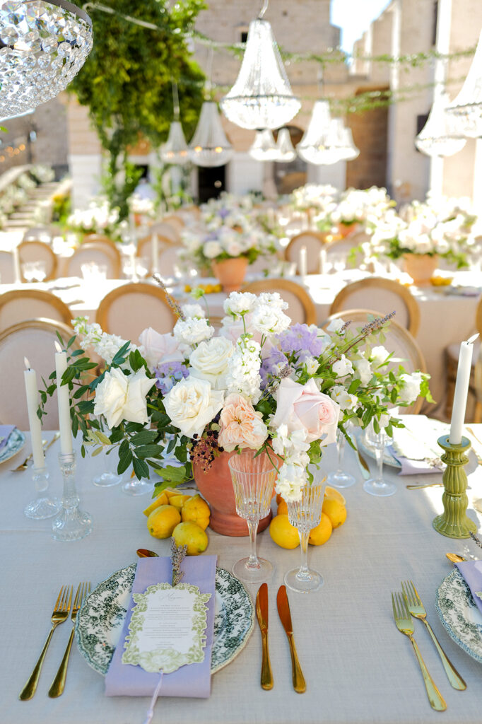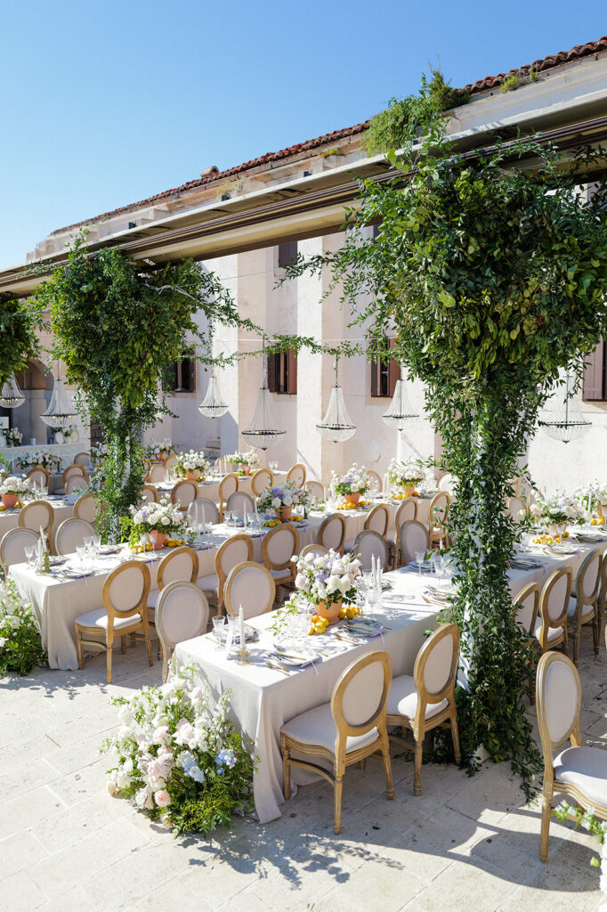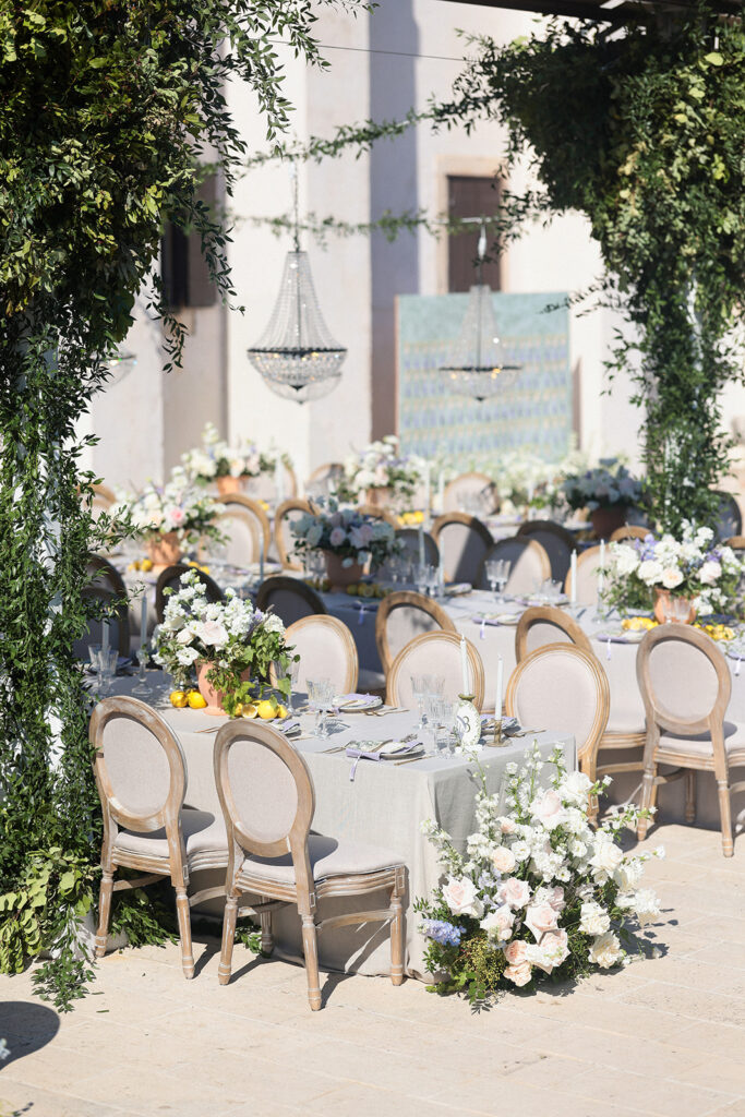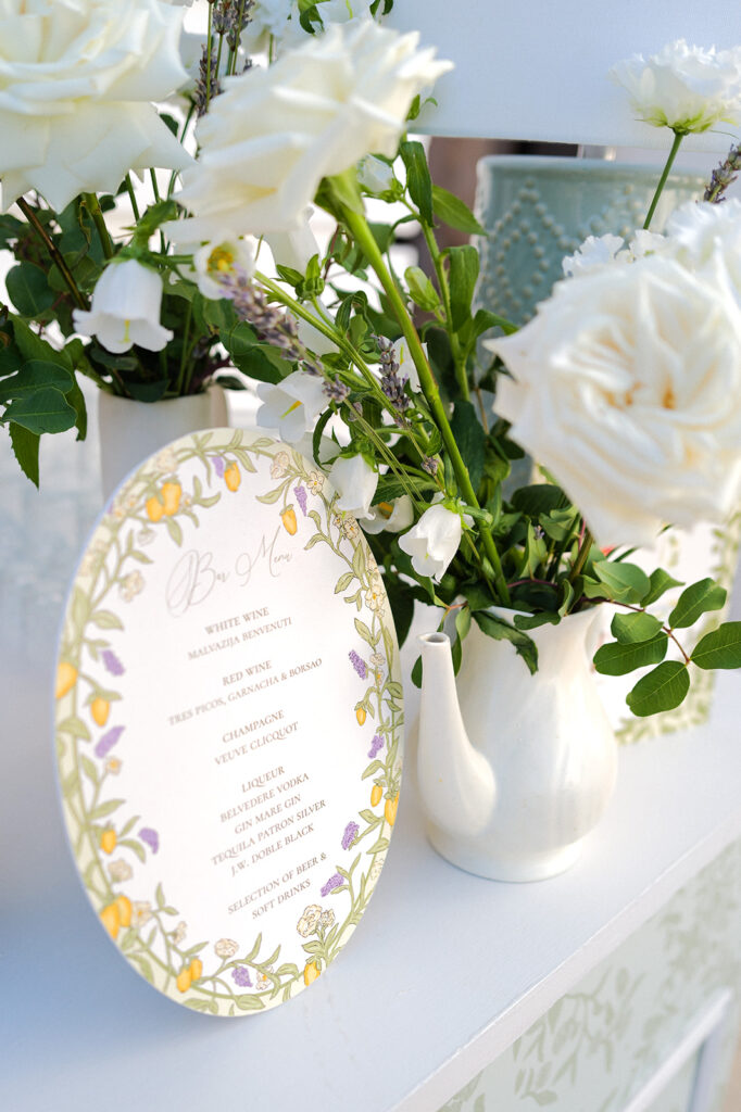 Upon arriving at the majestic Spanish Fortress in Hvar, the couple and their guests were immediately captivated by its breathtaking views of the glittering port below. Showroom Design, known for its artistry, transformed the venue into a luxurious setting. By combining lush florals, elegant chandeliers, and refined tablescapes, they created an ambiance that reflected both the historic charm of Croatia and timeless sophistication.