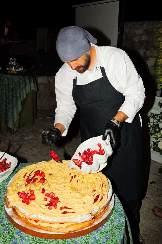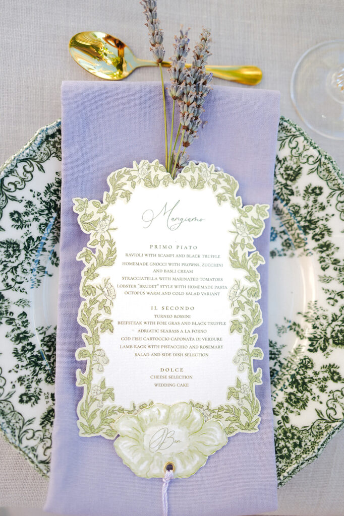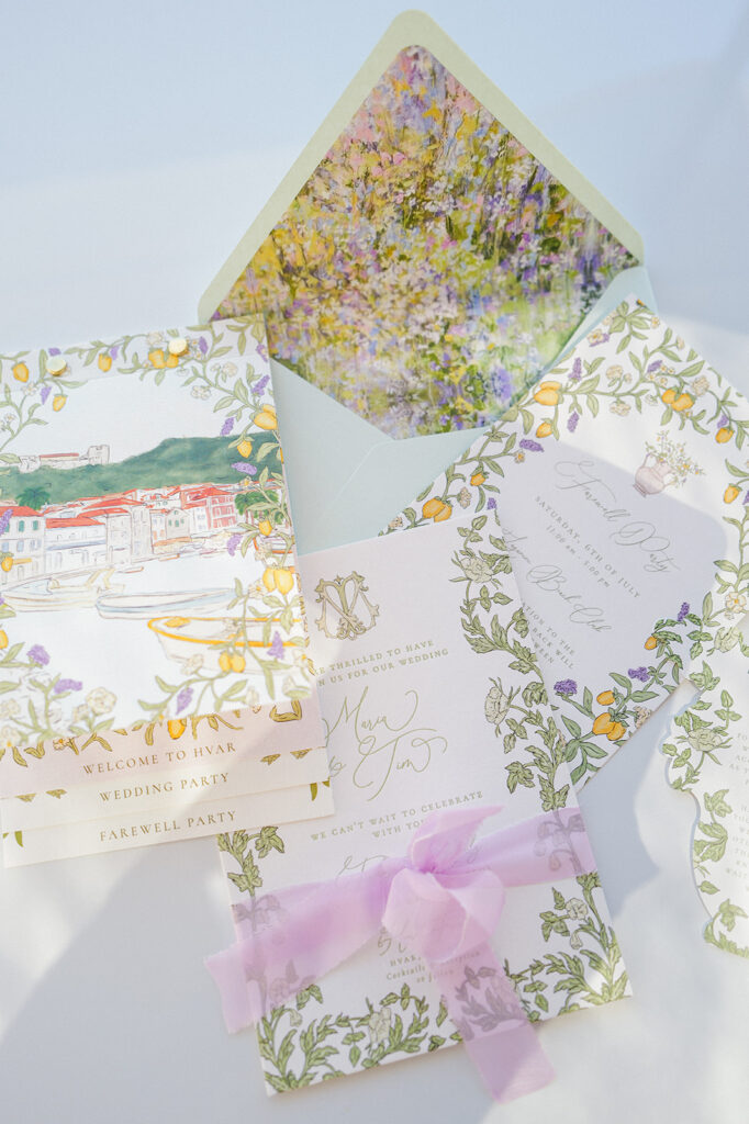 To begin their wedding weekend, the couple embraced a romantic twist. Instead of preparing separately, they got ready together on their private boat. As they sailed across the Adriatic, the tranquil views only heightened their anticipation for the festivities ahead. This shared moment set the tone for an intimate and adventurous celebration.