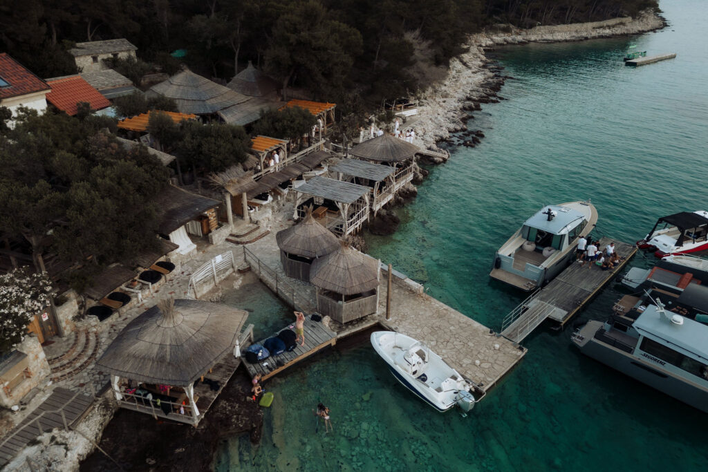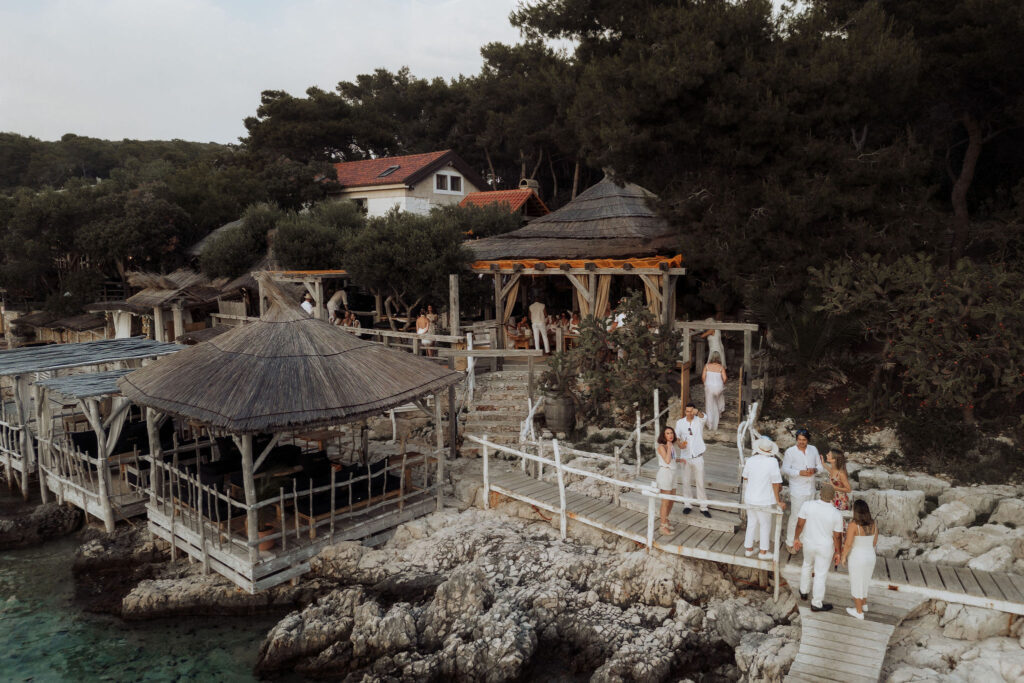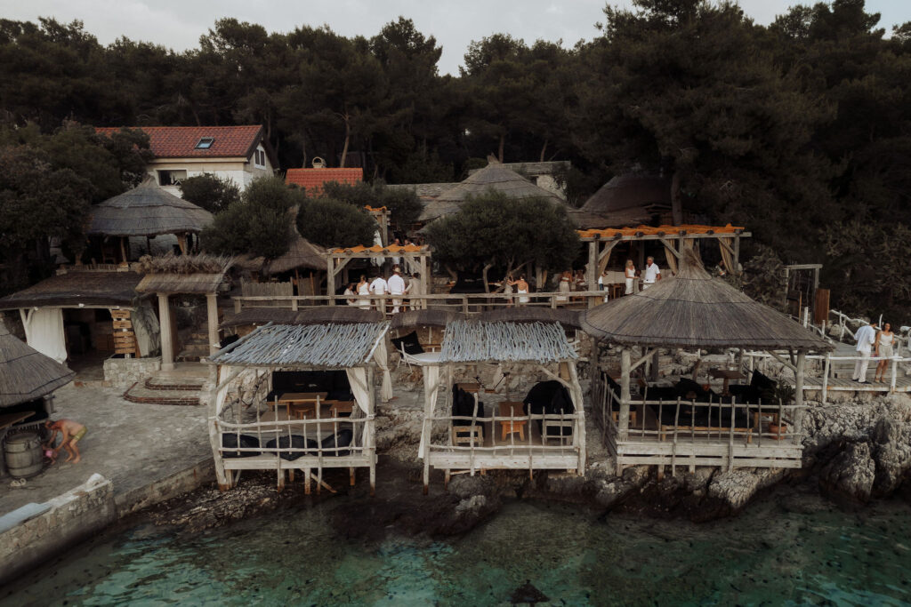 This wedding venue in Hvar sits on the largest of the Pakleni Islands; St Klement. It is in close proximity to Hvar Town, around 10-15 minutes drive by boat, making it an ideal wedding venue for an exclusive island experience. It ranks as one of the top-rated destinations, attracting tourists and holidaymakers from all over the world with its water charm and pebble beaches. The scenery offers intimate wedding settings in Hvar on the majestic terraces overlooking the blue waters of the sea. For maximum comfort, optimal no.of guests in the restaurant is up to 86. Groups up to 50 people have possibilty of partial exclusivity while groups of more than 50 people can choose full exclusivity option. Depending on date/month, there is a minimum spend amount required to be spent in case of hiring this wedding venue in Hvar for your event.
